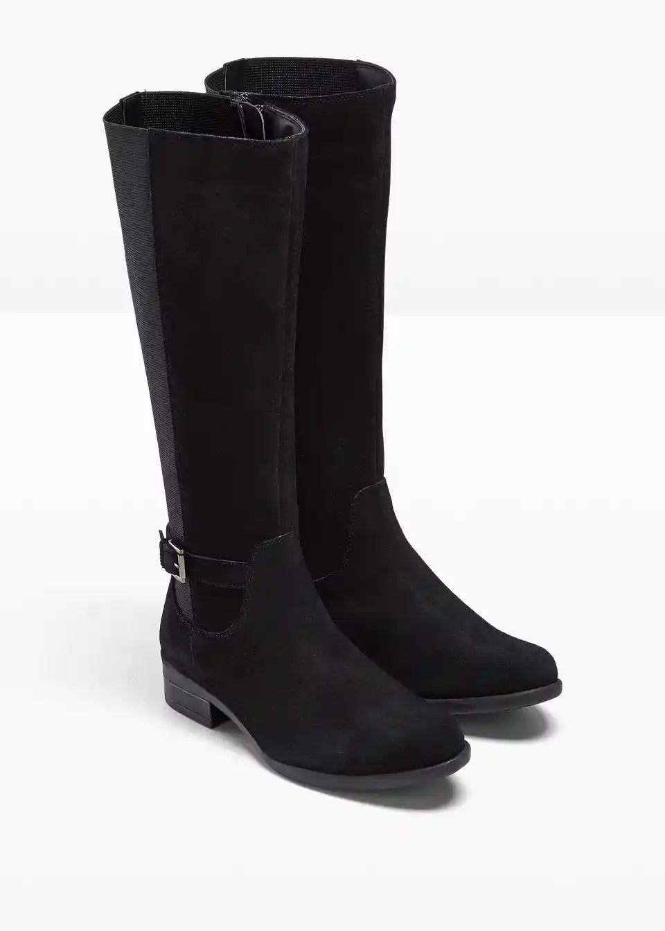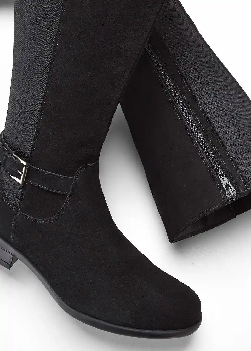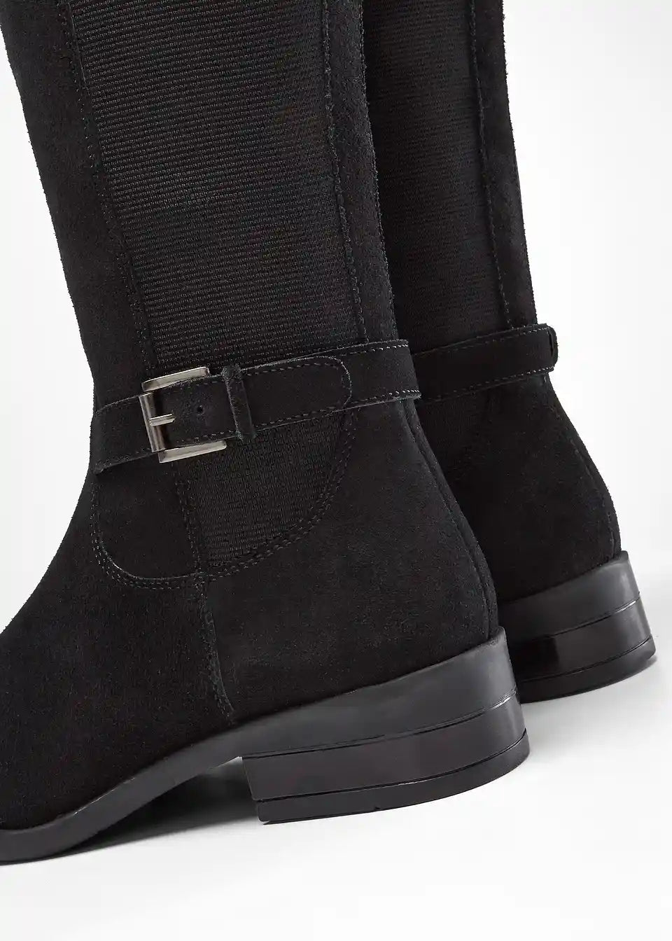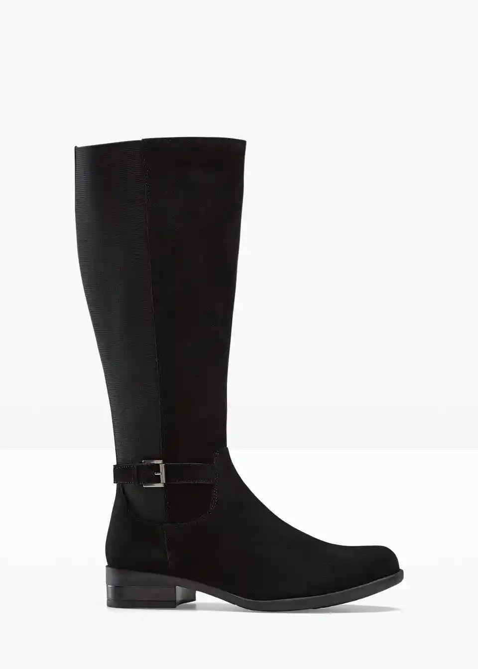 Časovno neodvisni škornji s široko skafo iz usnja z okrasno zaponko