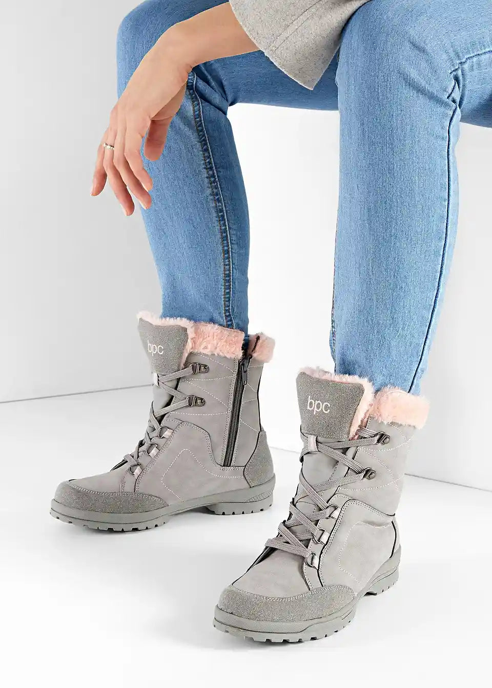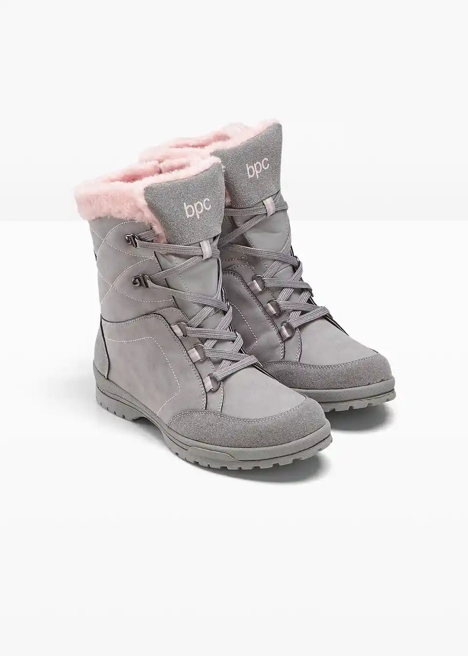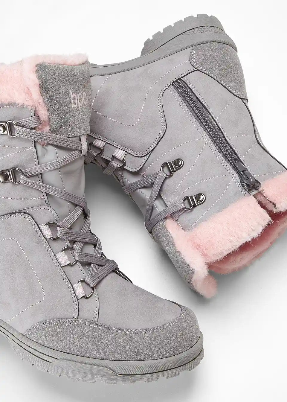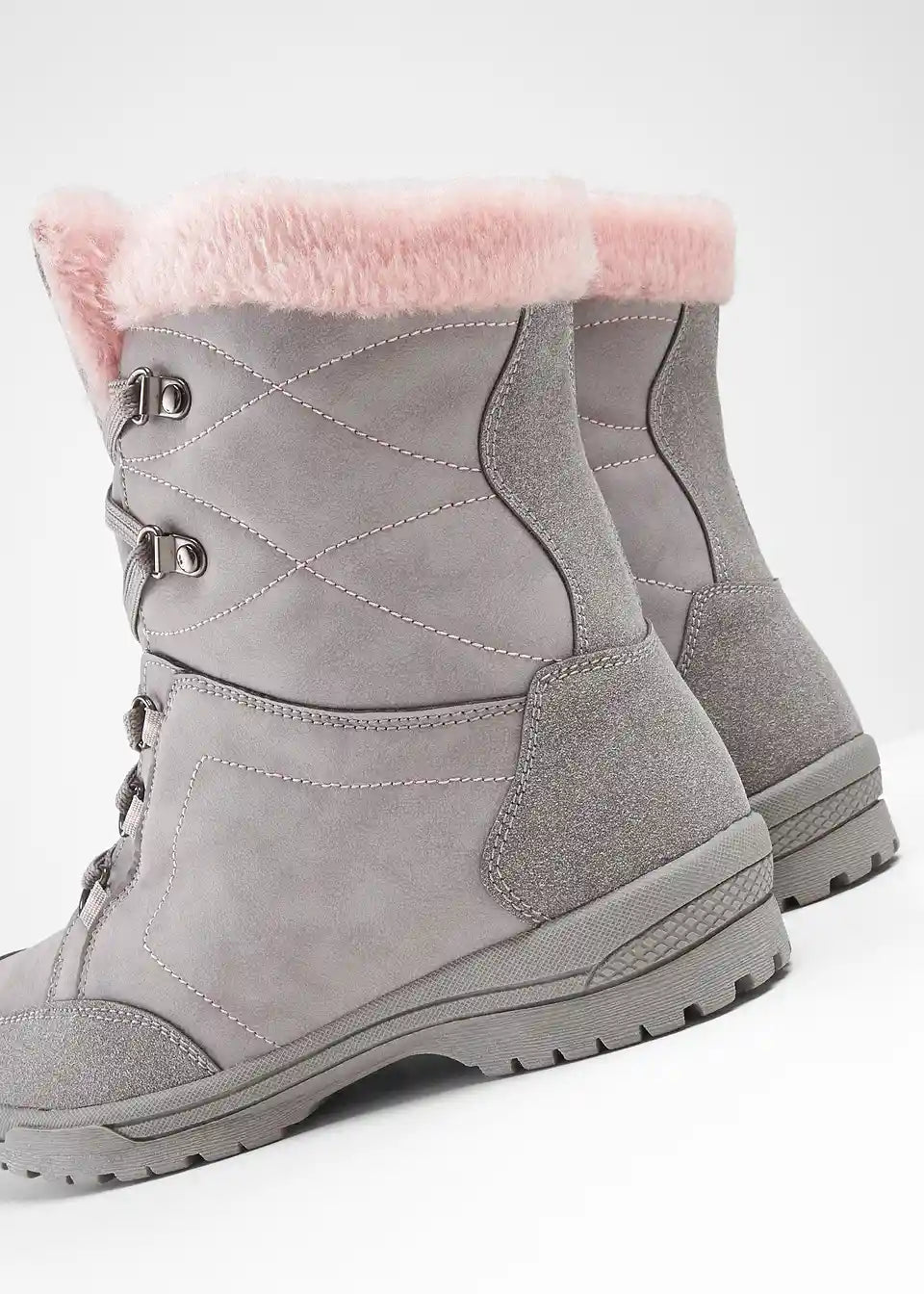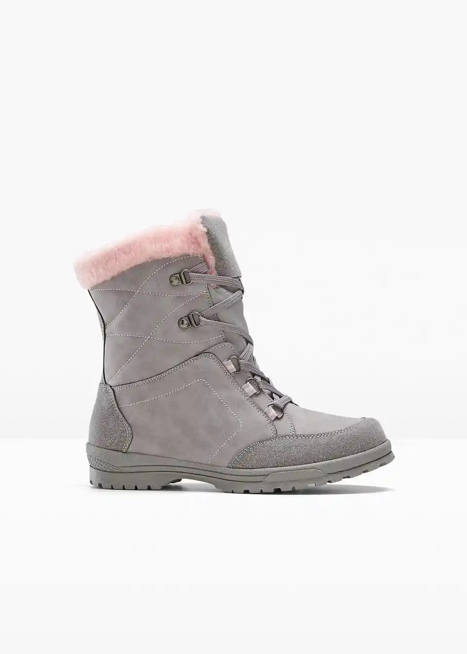 Škornji z vezalkami z profiliranim podplatom in plišasto podlogo