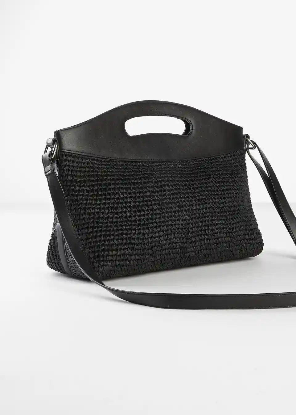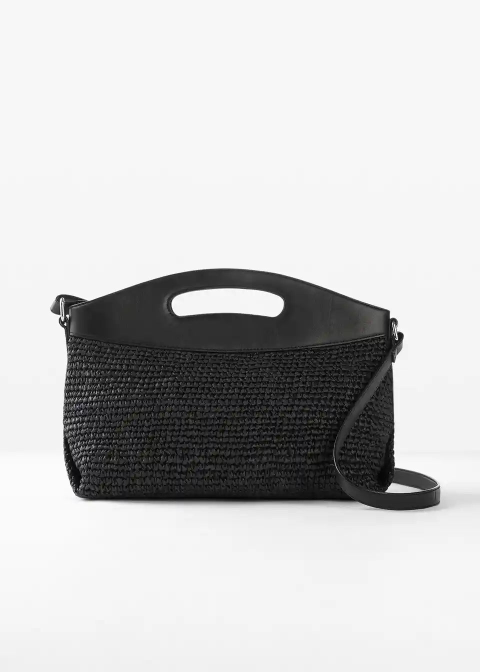 Torbica z naramnico iz slame z usnjenim ročajem