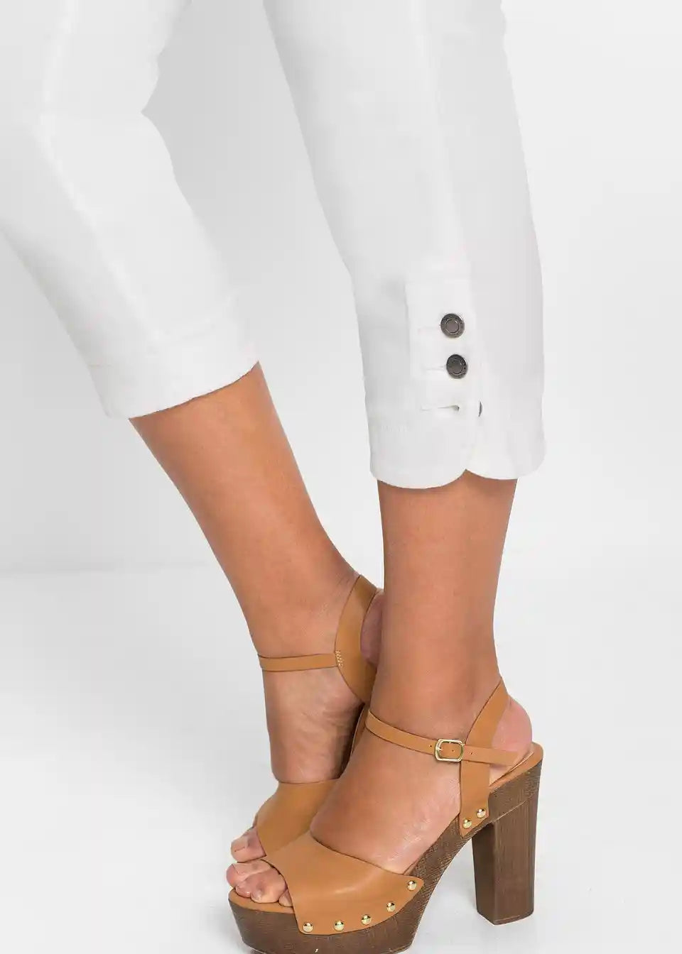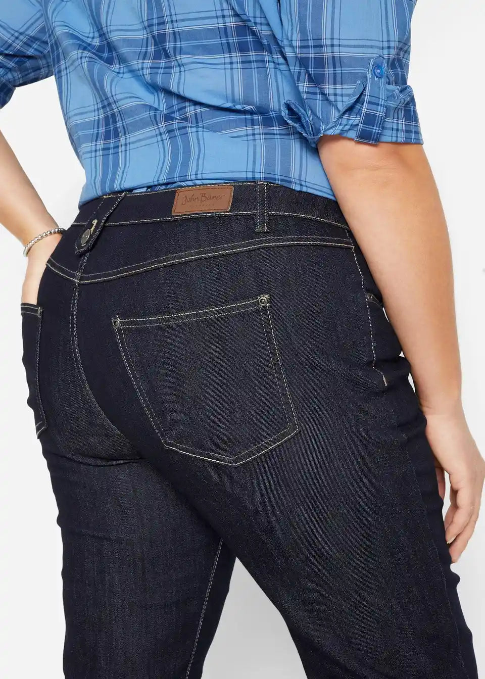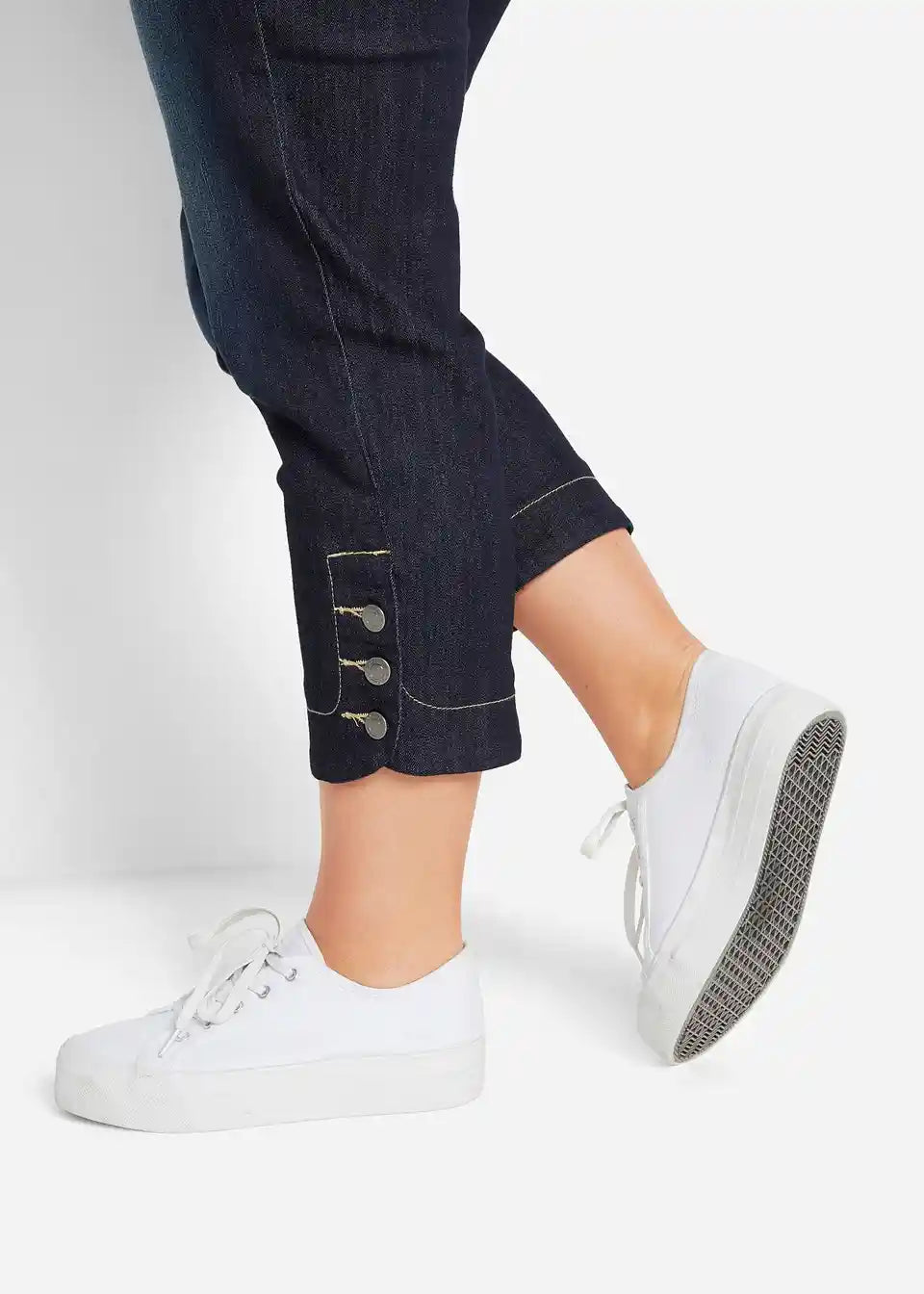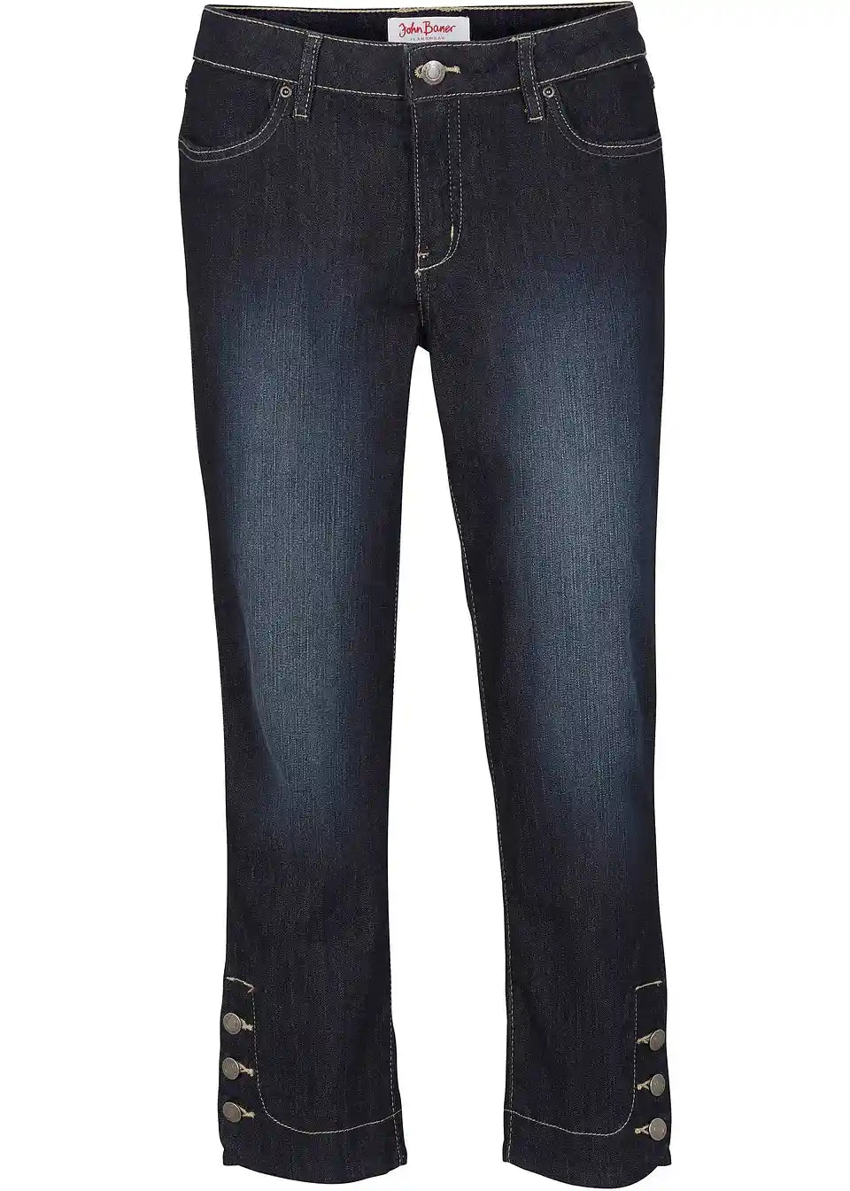 V teh udobnih raztegljivih kavbojkah dolžine 3/4 bodo trendovske dame videti odlično. Slim Fit kavbojke iz aktualne kolekcije John Baner so krojene v 4-žepnem videzu in se zapenjajo z gumbom in zadrgo. Prefinjeni z gumbi okrašeni stranski razporki in zelo oprijet kroj poudarjajo modni slog raztegljivih kavbojk SLIM z gumbi.