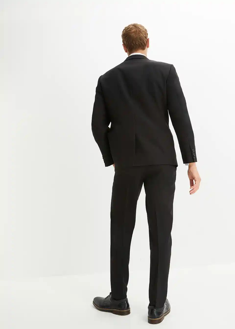 Moška obleka v ozkem kroju: suknjič, hlače, srajca in kravata