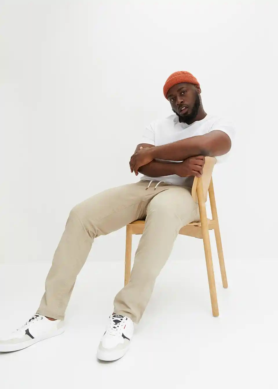 Ozke stretch hlače brez zapenjanja v ravnem kroju