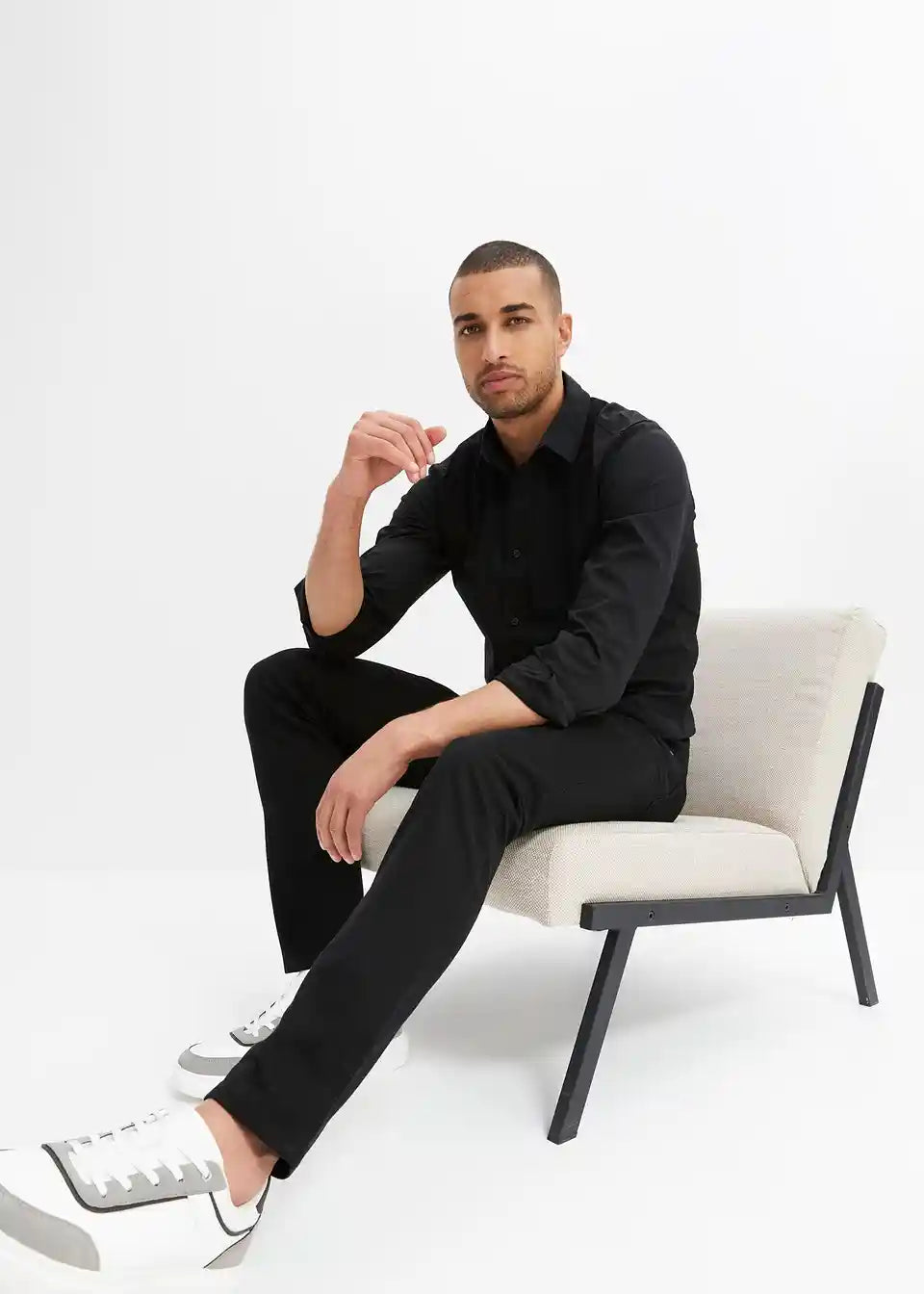 Moderne stretch-jeans hlače z ravnimi hlačnicami, pralne v pralnem stroju.