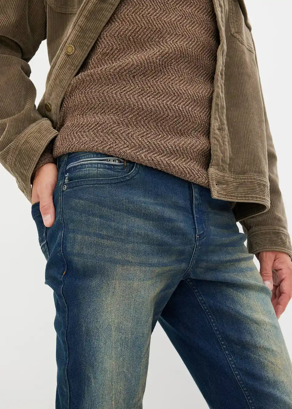 Športne raztegljive kavbojke v kroju Slim-Fit. Z izdelanimi detajli na žepih in efektom obrabe.