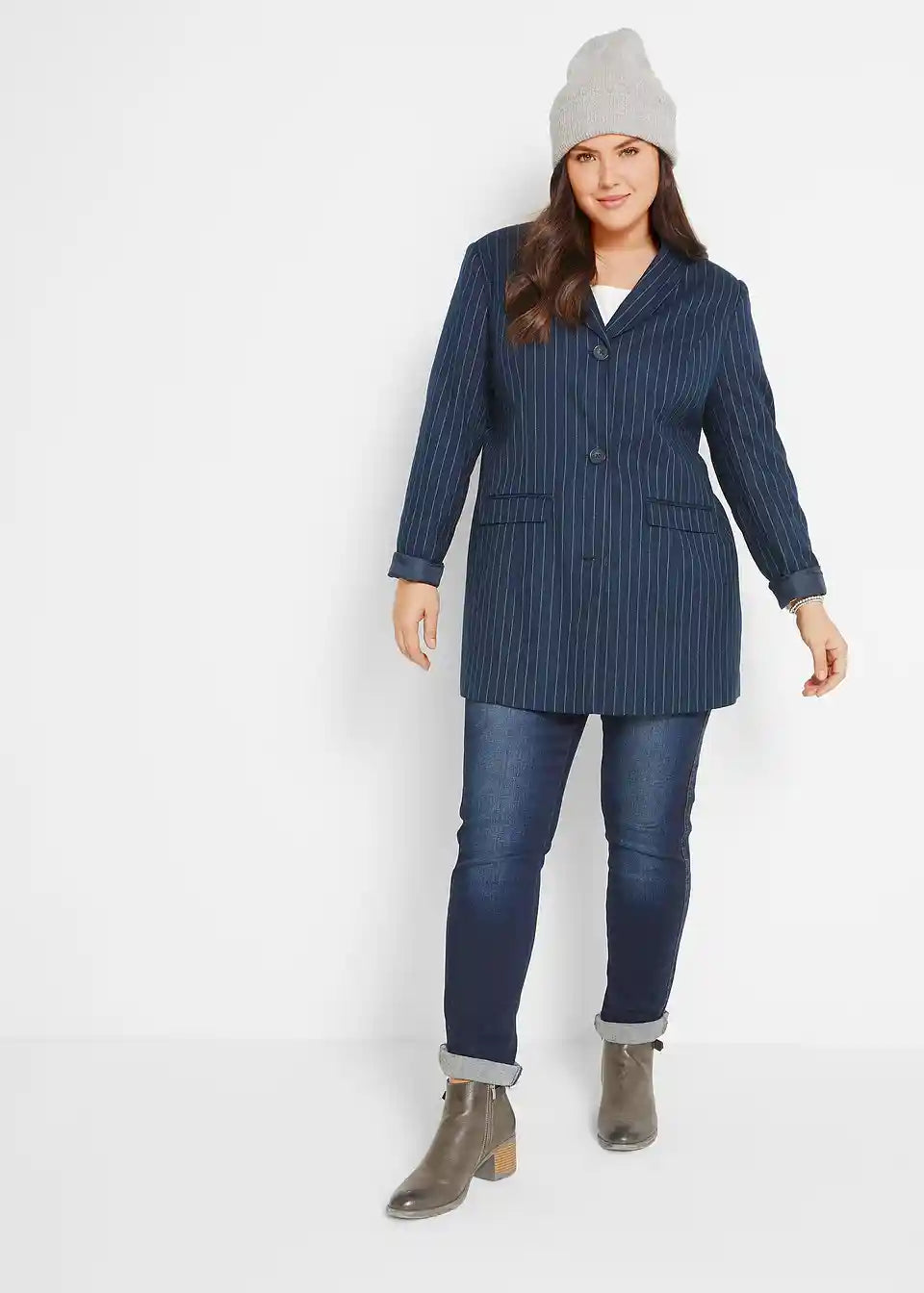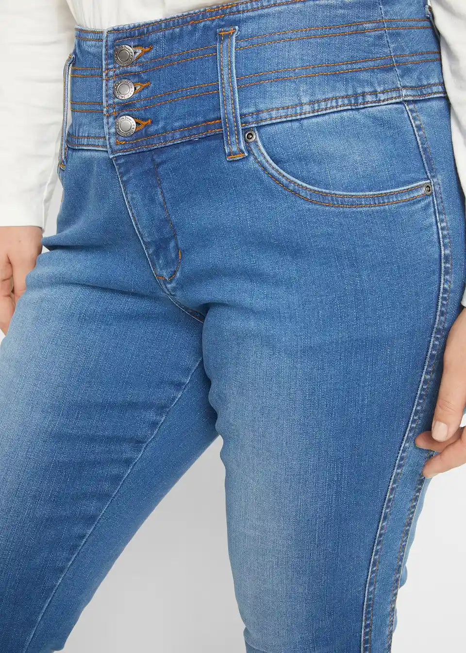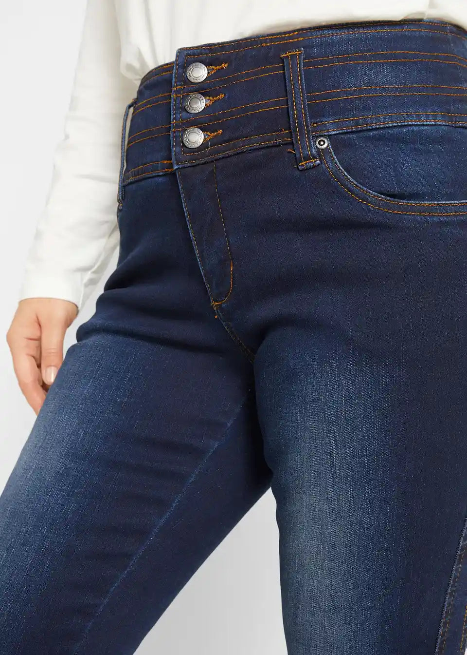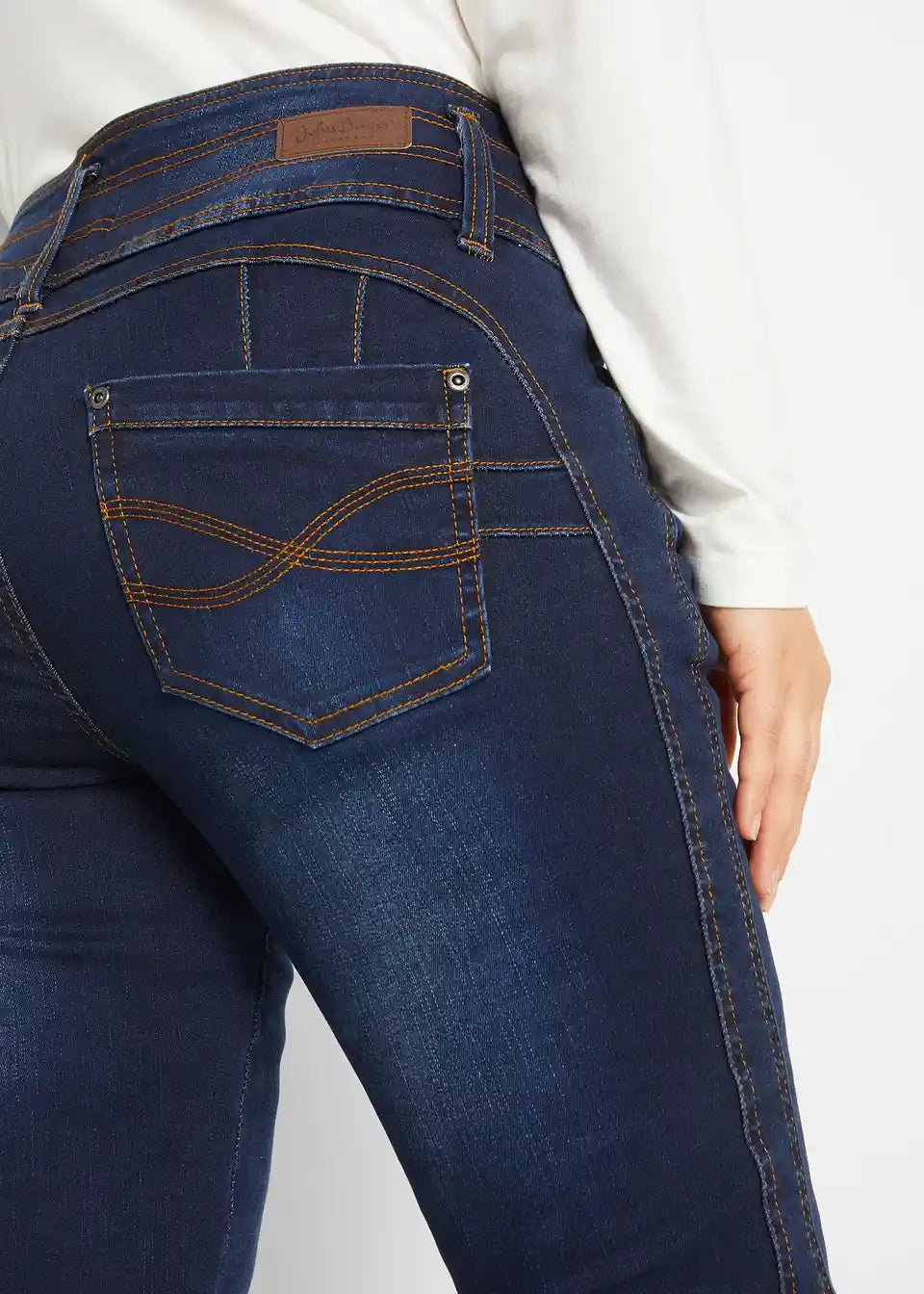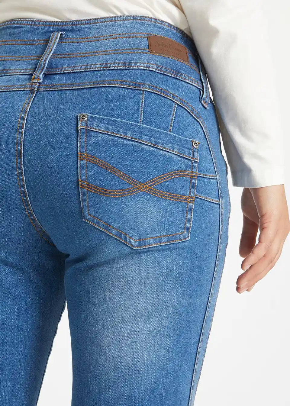 Te kavbojke v Slim Fit kroju Johna Banerja optimalno poudarijo žensko silhueto. To lahko pripišemo njihovemu Shaping Stretch materialu ter dovršeni zasnovi kroja: širok pas poskrbi za lepši izgled trebuha, premaknjeni šivi vizualno podaljšajo noge, delitveni šivi na zadnji strani pa rahlo dvignejo zadnjico. Sproščene shaping stretch kavbojke "Trebuh-Noge-Zadnjica", Slim, se zapirajo s tremi gumbi in zadrgo.