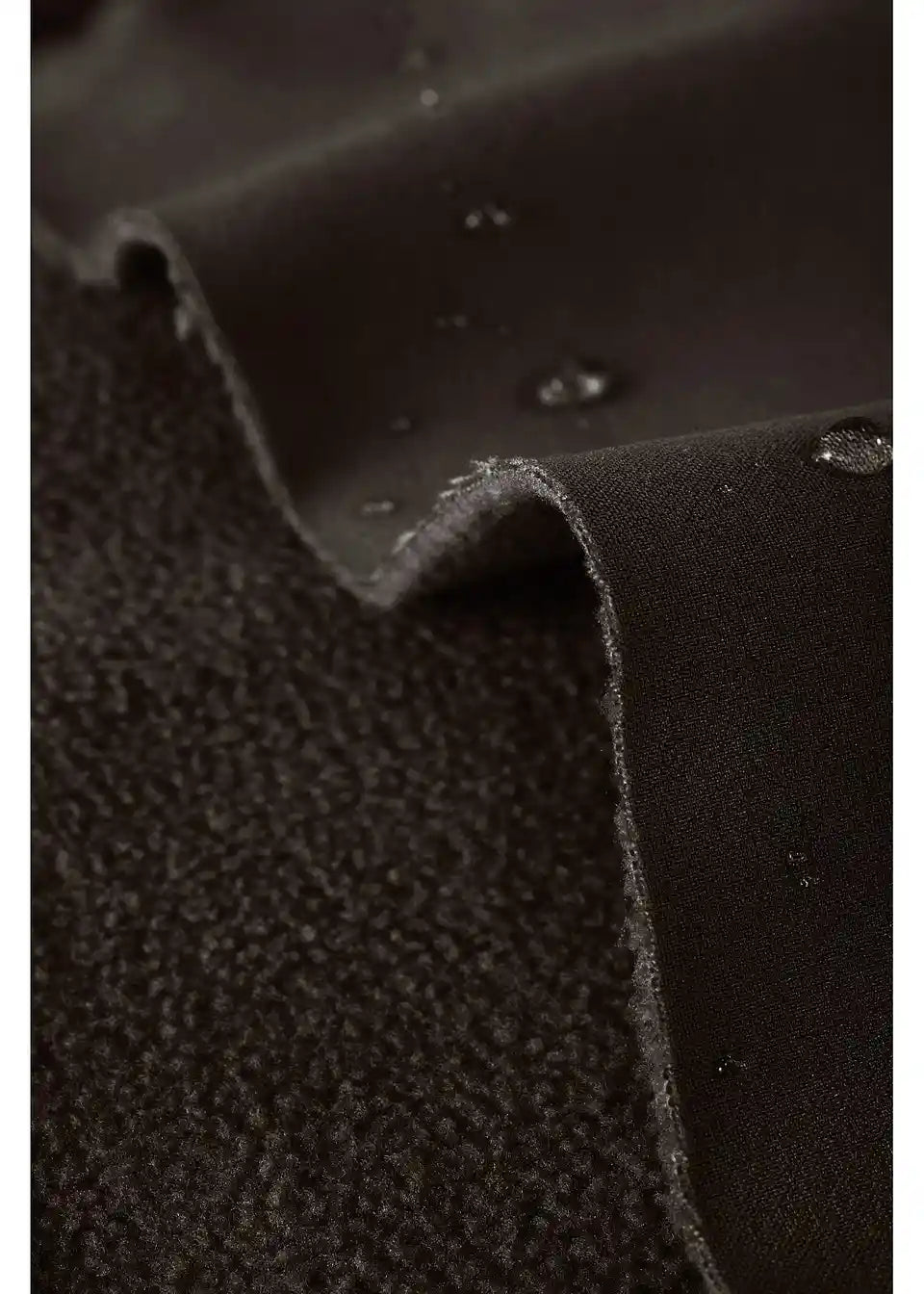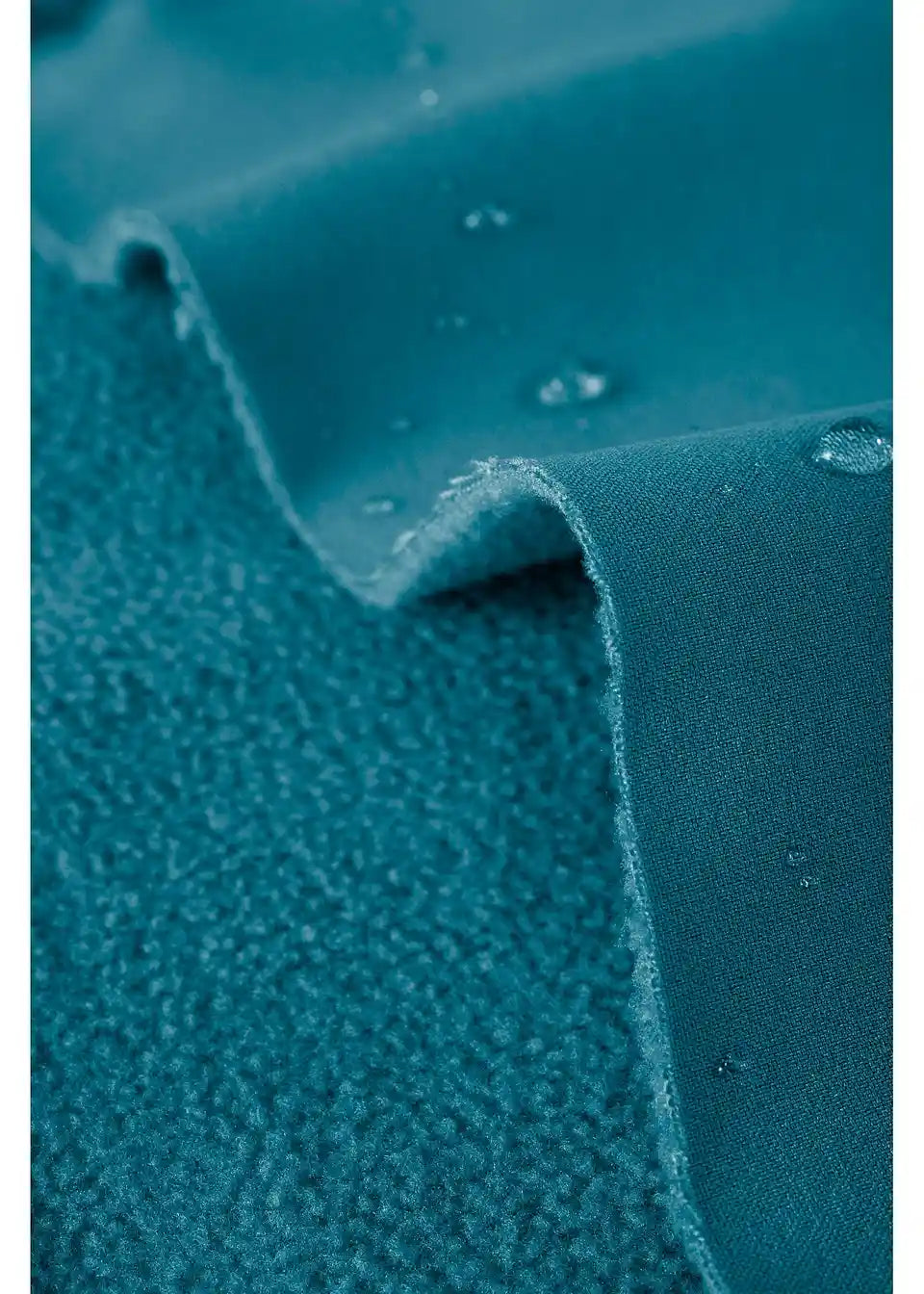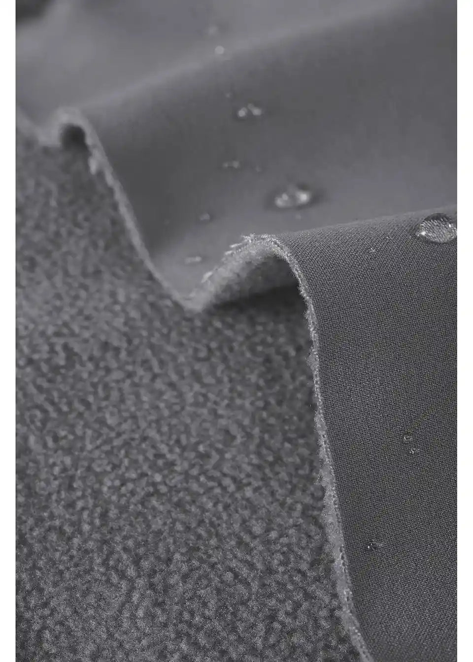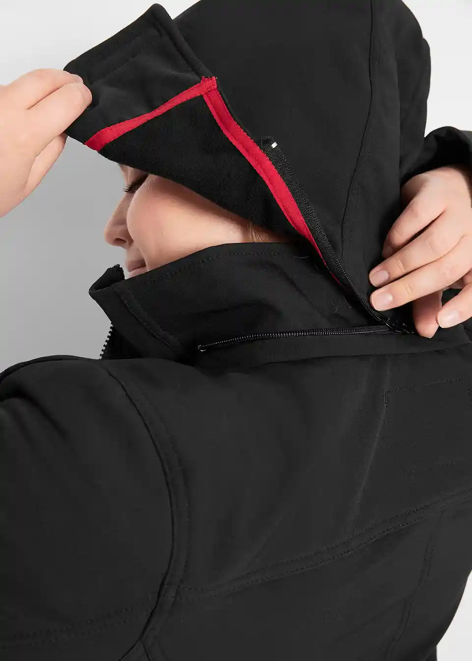 Vodoodbojen prehodni plašč iz softshell-a z odstranljivo kapuco in elastičnim pasom na hrbtu, z žepi z zadrgo, oprijet kroj