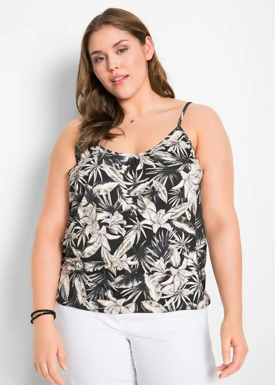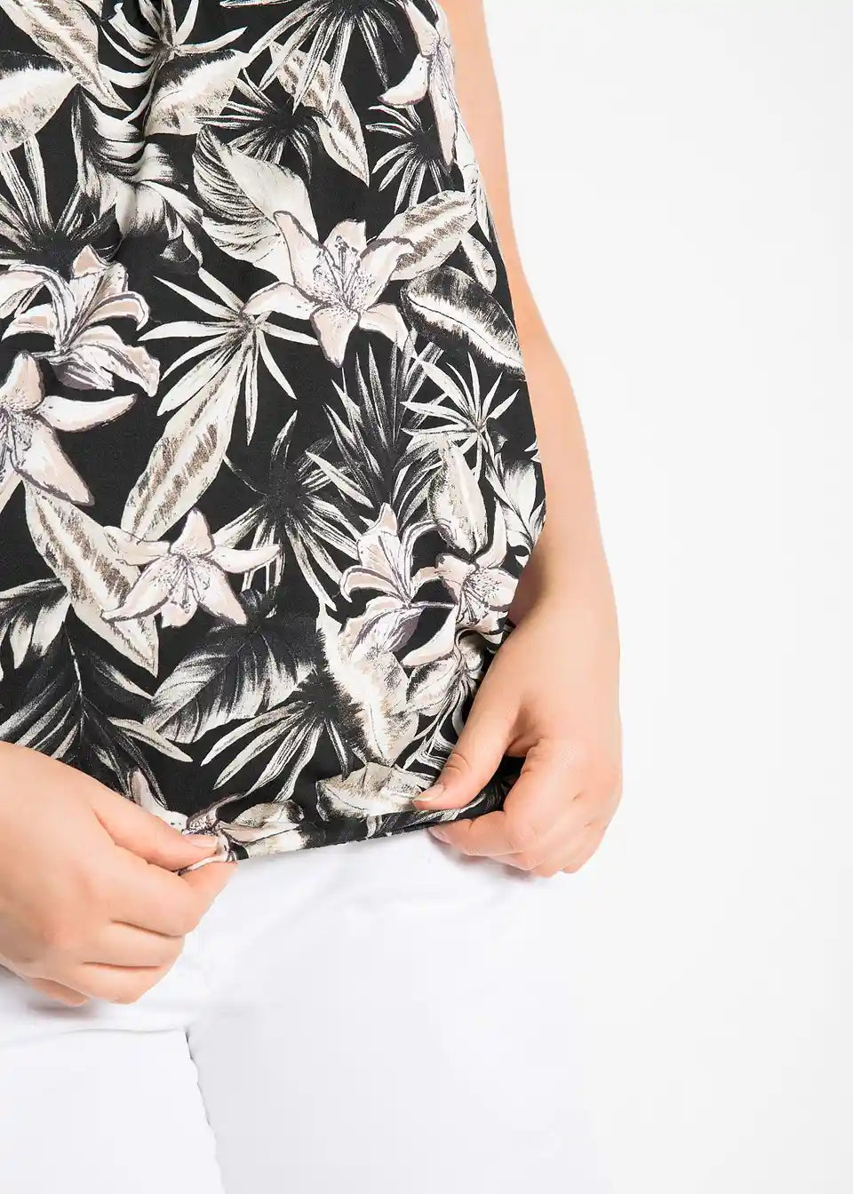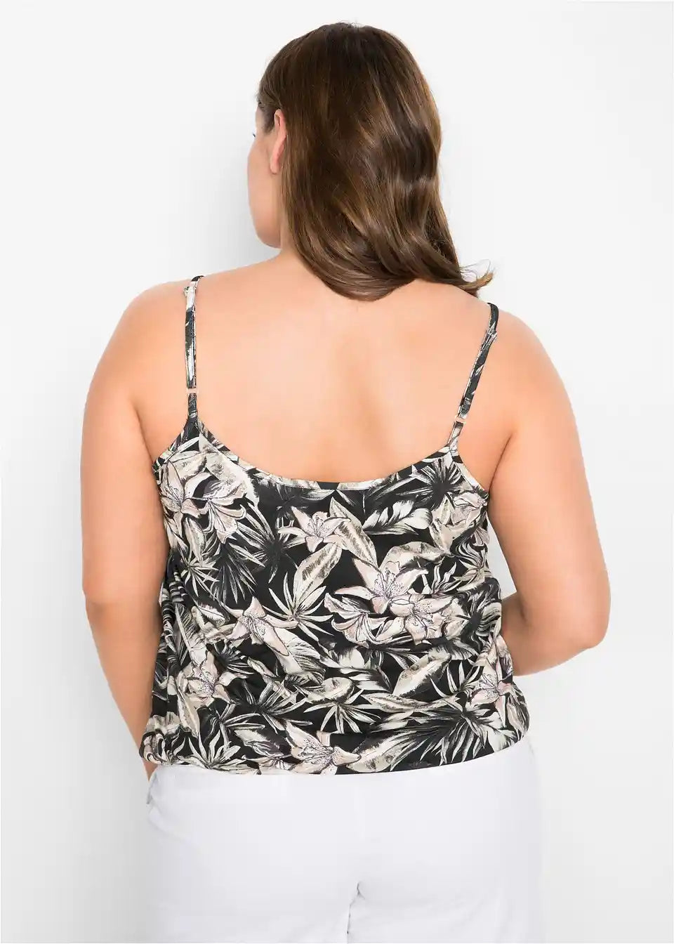 Ohlapen majica top iz viskoze s cvetličnim potiskom in ozkimi naramnicami