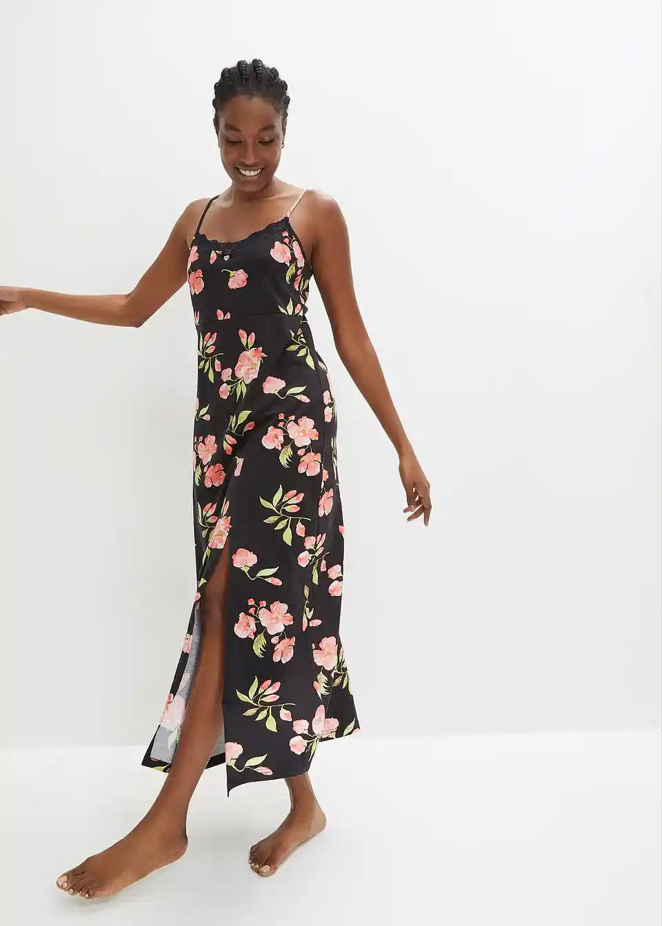 Spalna srajca s tankimi naramnicami in čipko