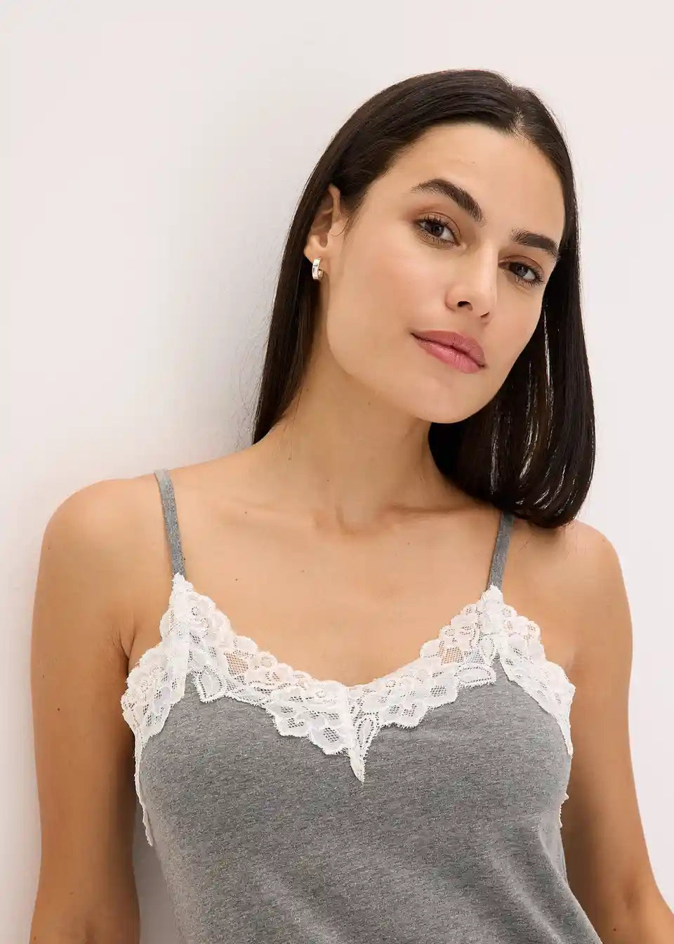 Material:zgornji material: 50% bombaž, 45% poliester, 5% elastan, čipka: 94% poliamid, 6% elastan