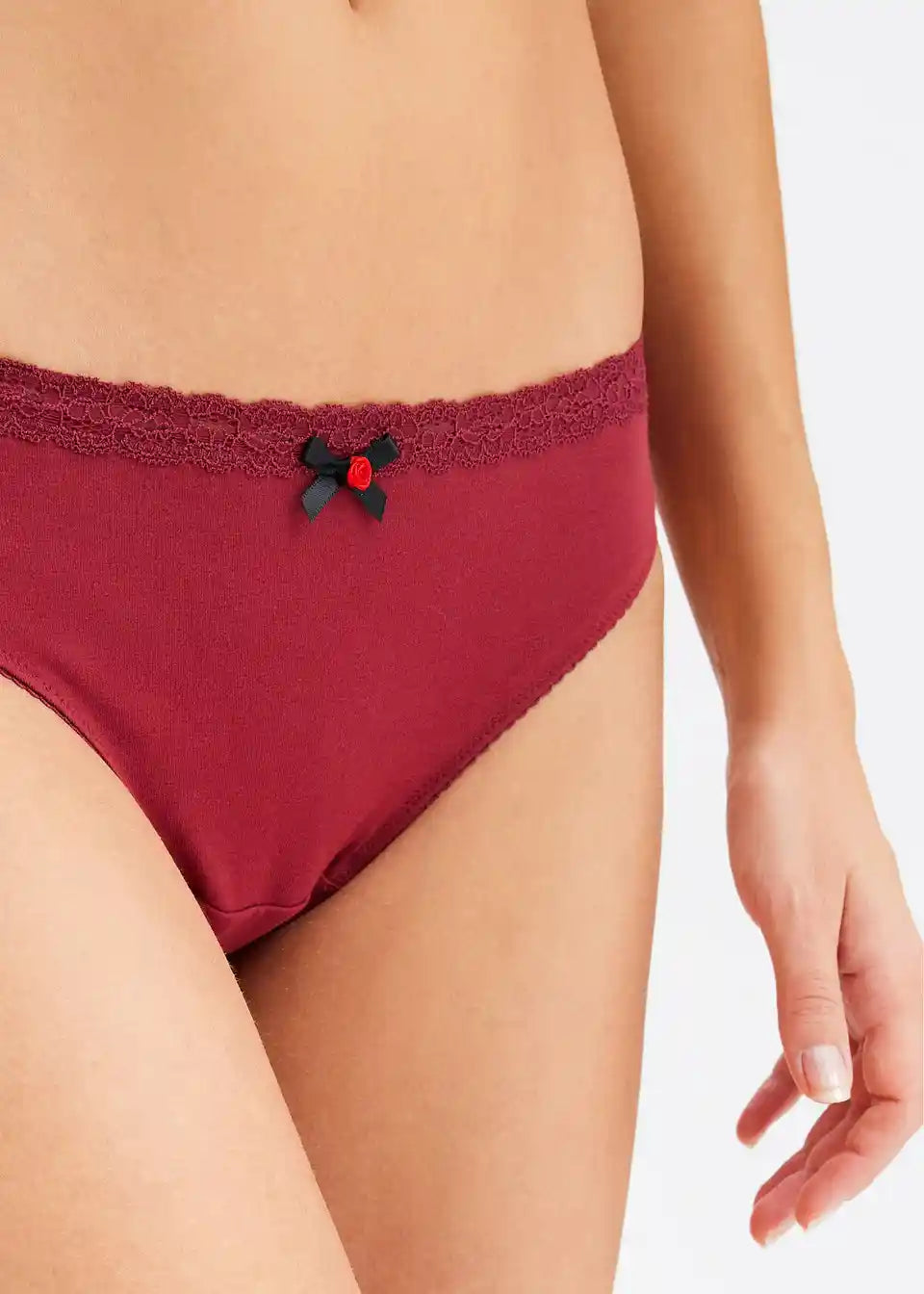 Material:zgornji material: 95% bombaž (ekološki), 5% elastan, čipka: 90% poliamid, 10% elastan
