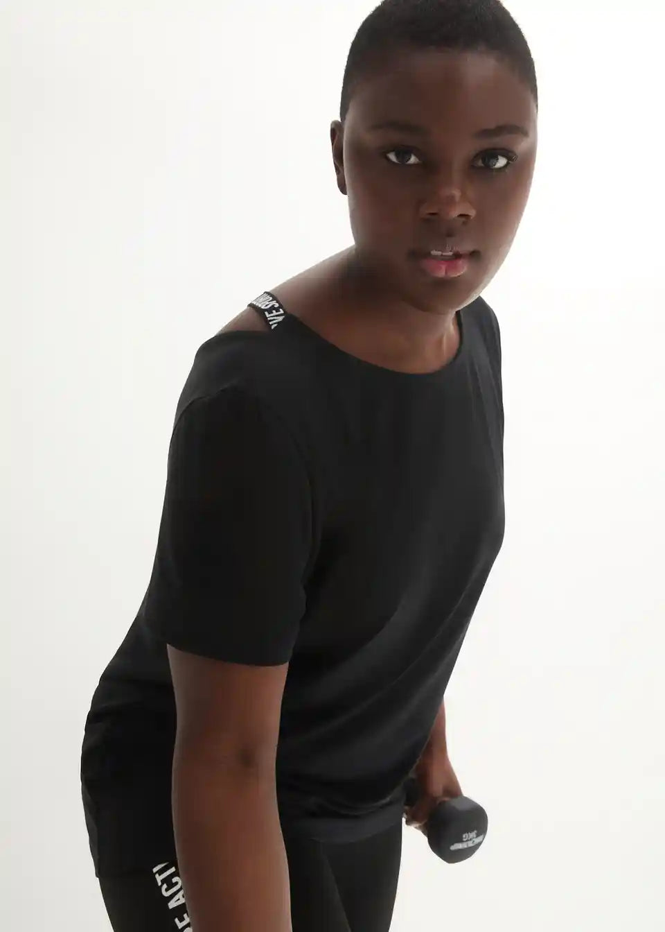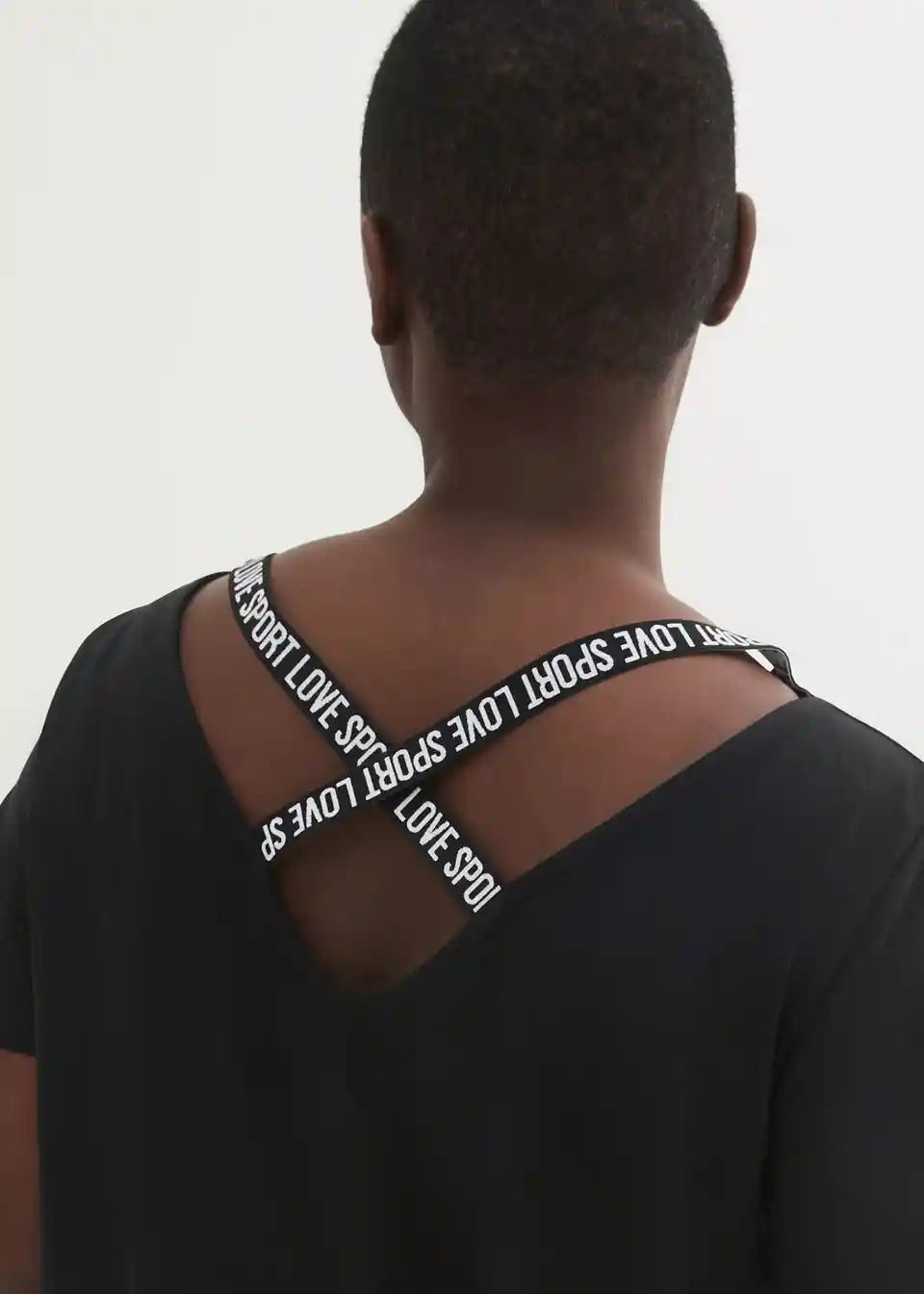 Športna dolga majica s širokim izrezom na hrbtu in z natisnjenim logotipom
