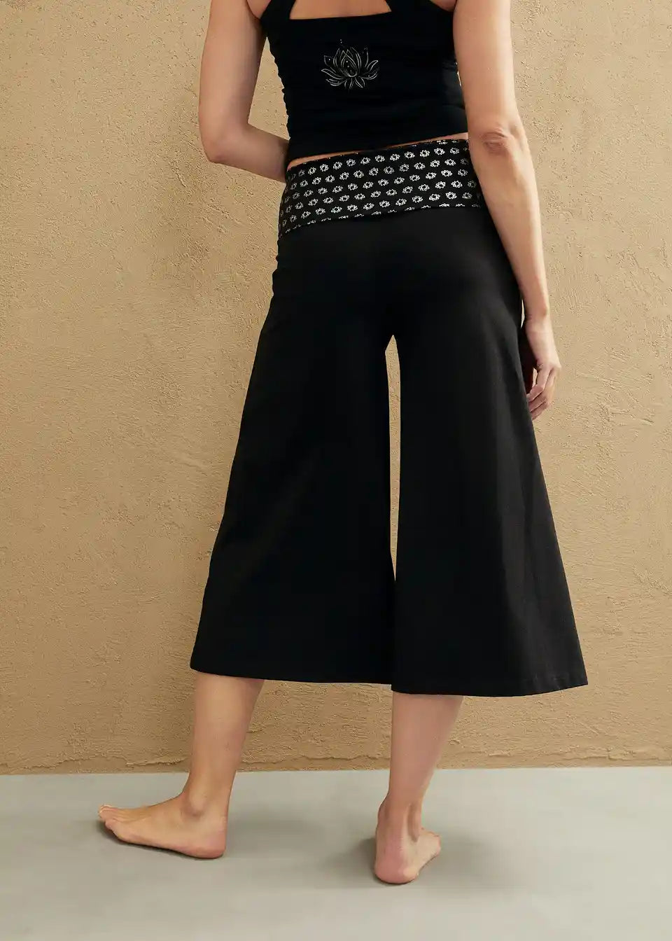 Joga bombažne culottes hlače z vzorčastim udobnim pasom, dolžina do meč