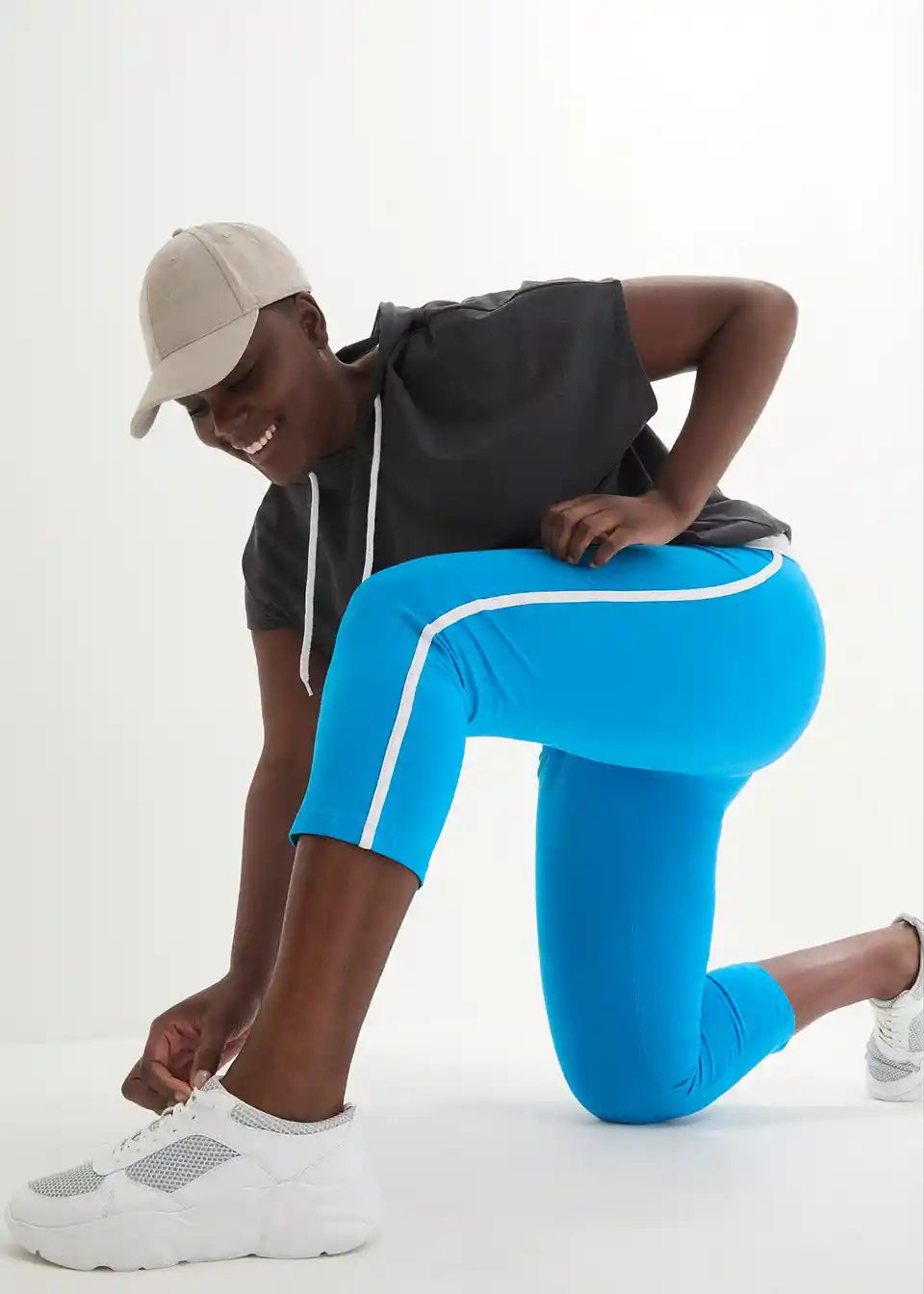 Udobne športne legice iz bombažno-raztegljivega materiala s stranskimi črtami
