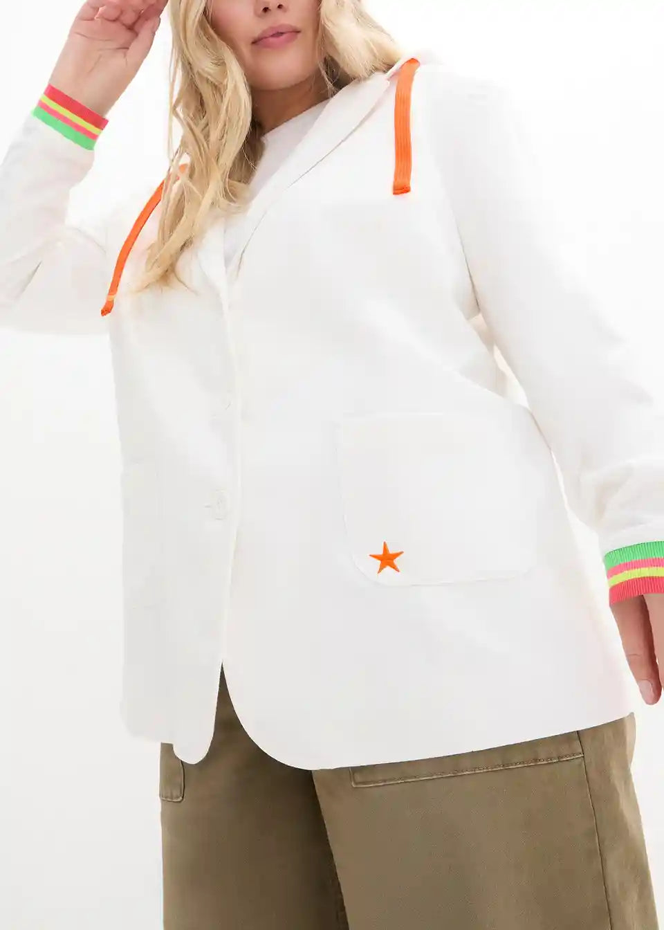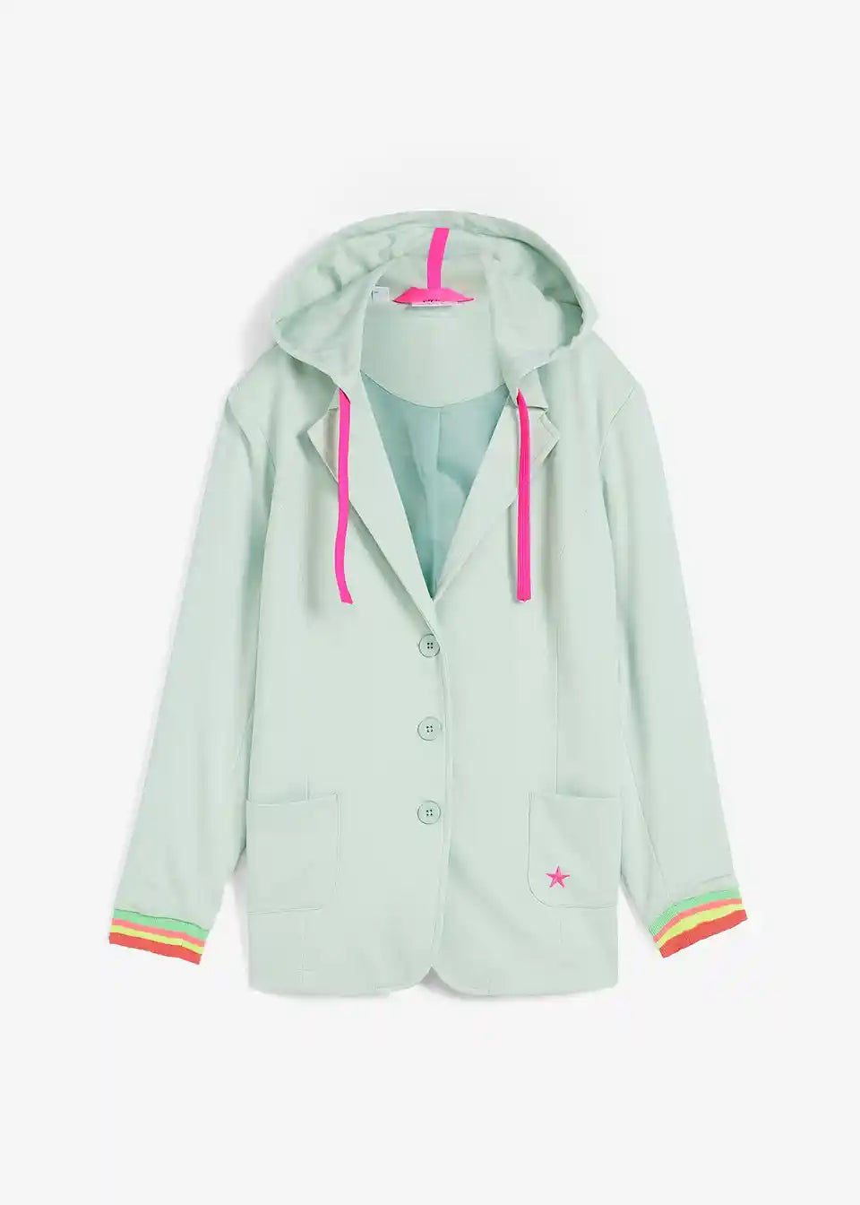 moden blazer iz trdnega jerseya z neonskimi detajli, podložen