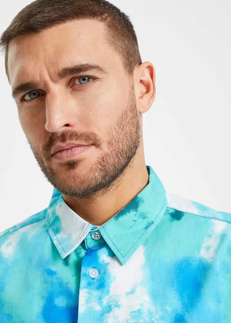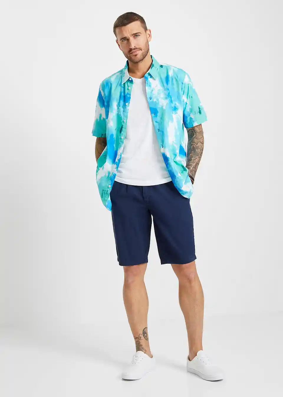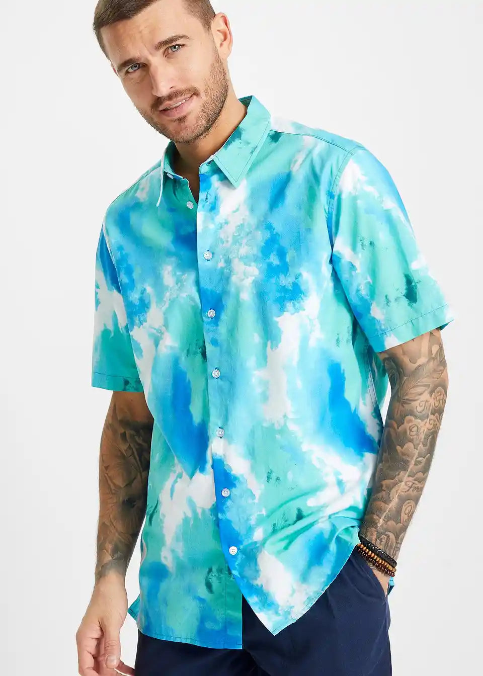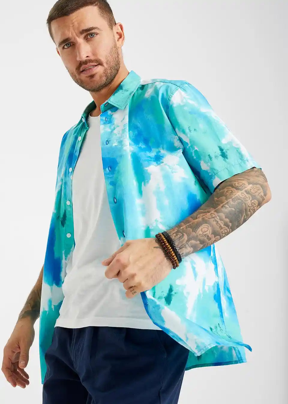 Pomladna srajca s kratkimi rokavi in stilskim vzorcem