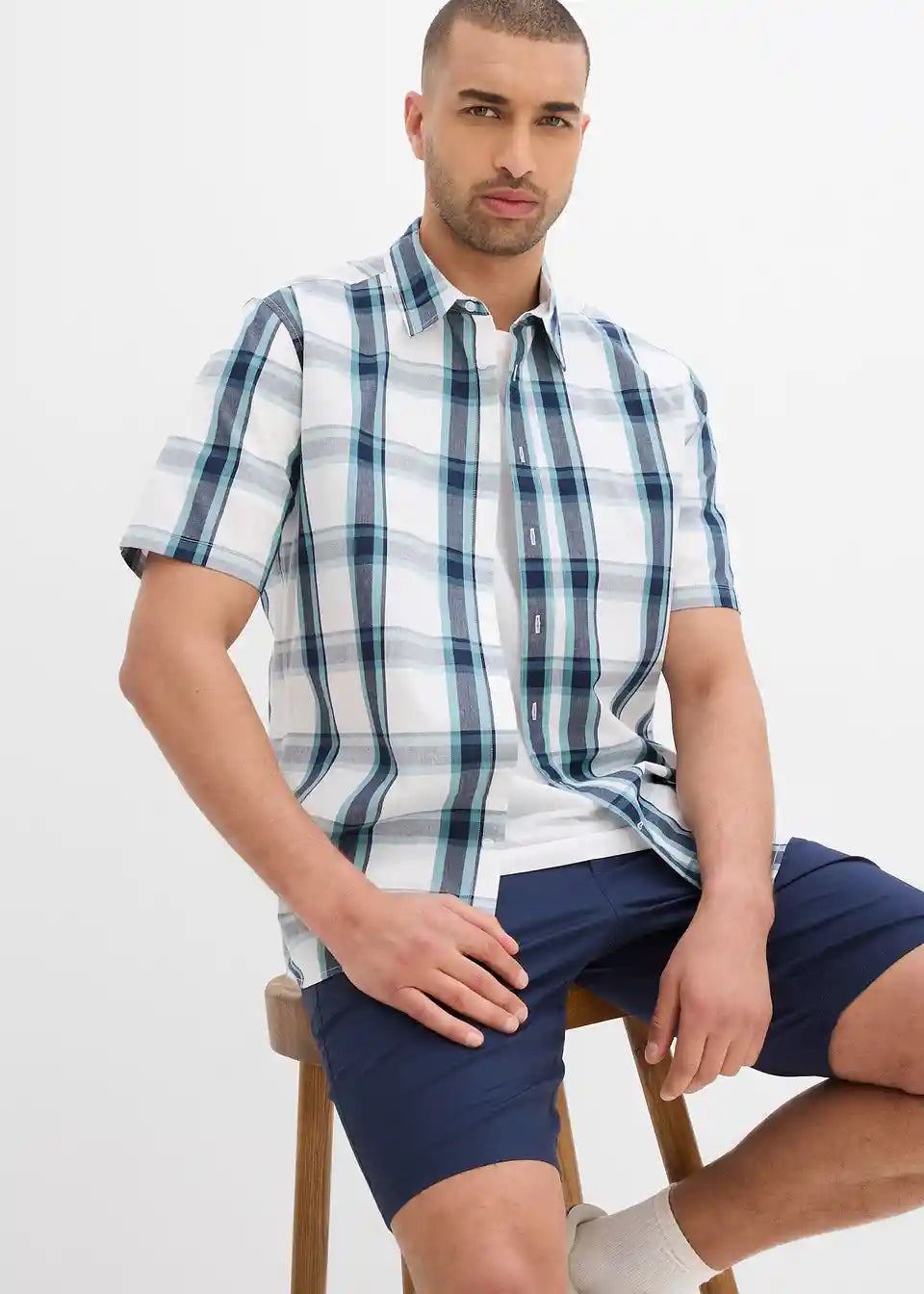 Moška srajca s kratkimi rokavi z zaobljenim robom iz prijaznega bombaža za kožo