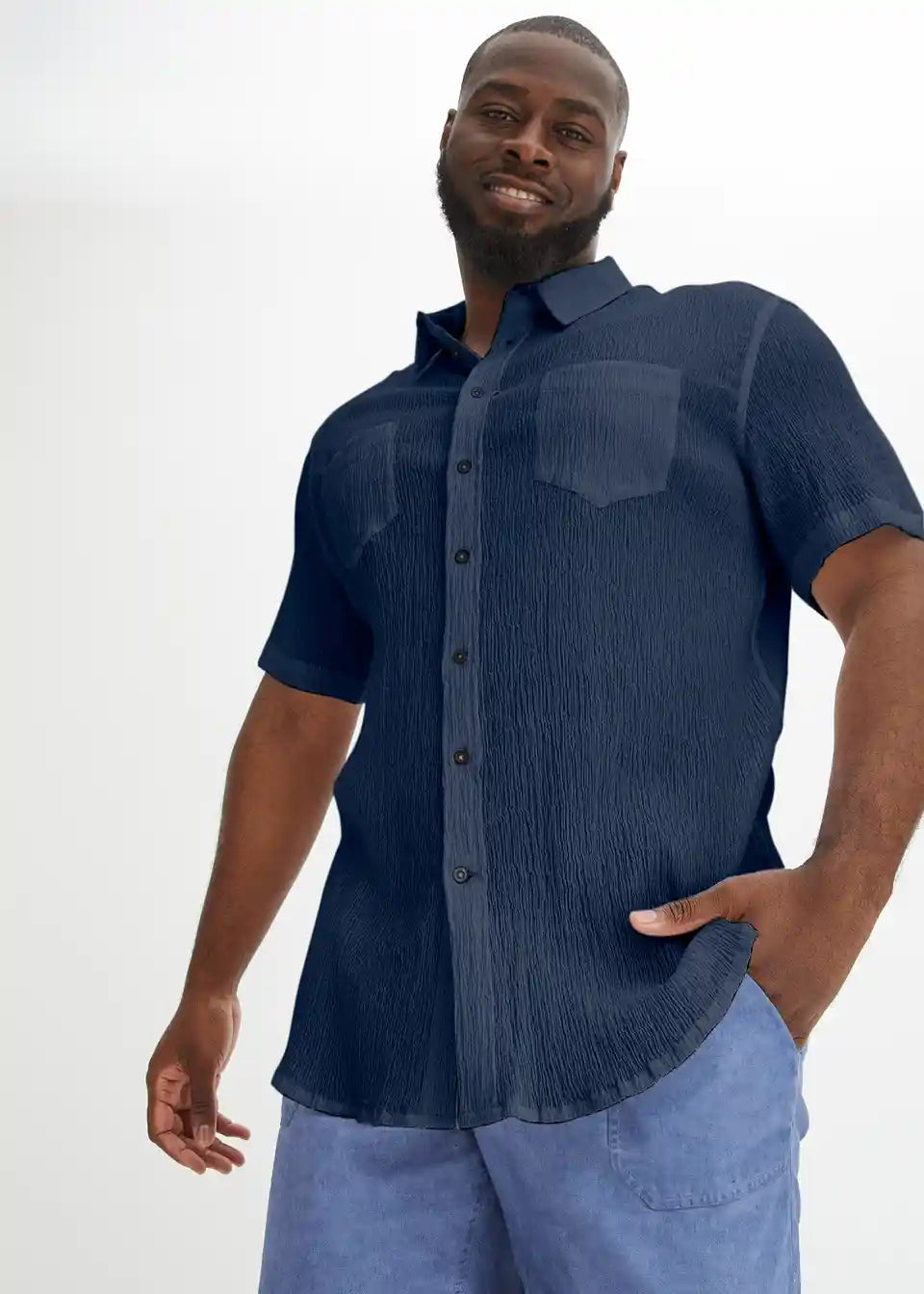 Srajca s kratkimi rokavi v zmečkanem videzu iz čistega bombaža