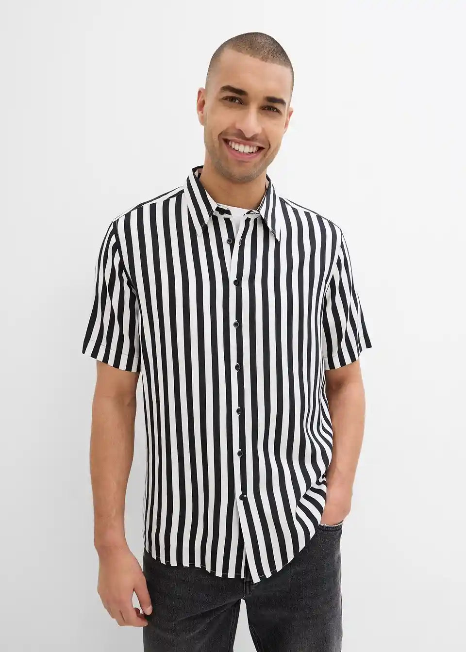 Moderna srajca s kratkimi rokavi v regularnem kroju s črtastim vzorcem