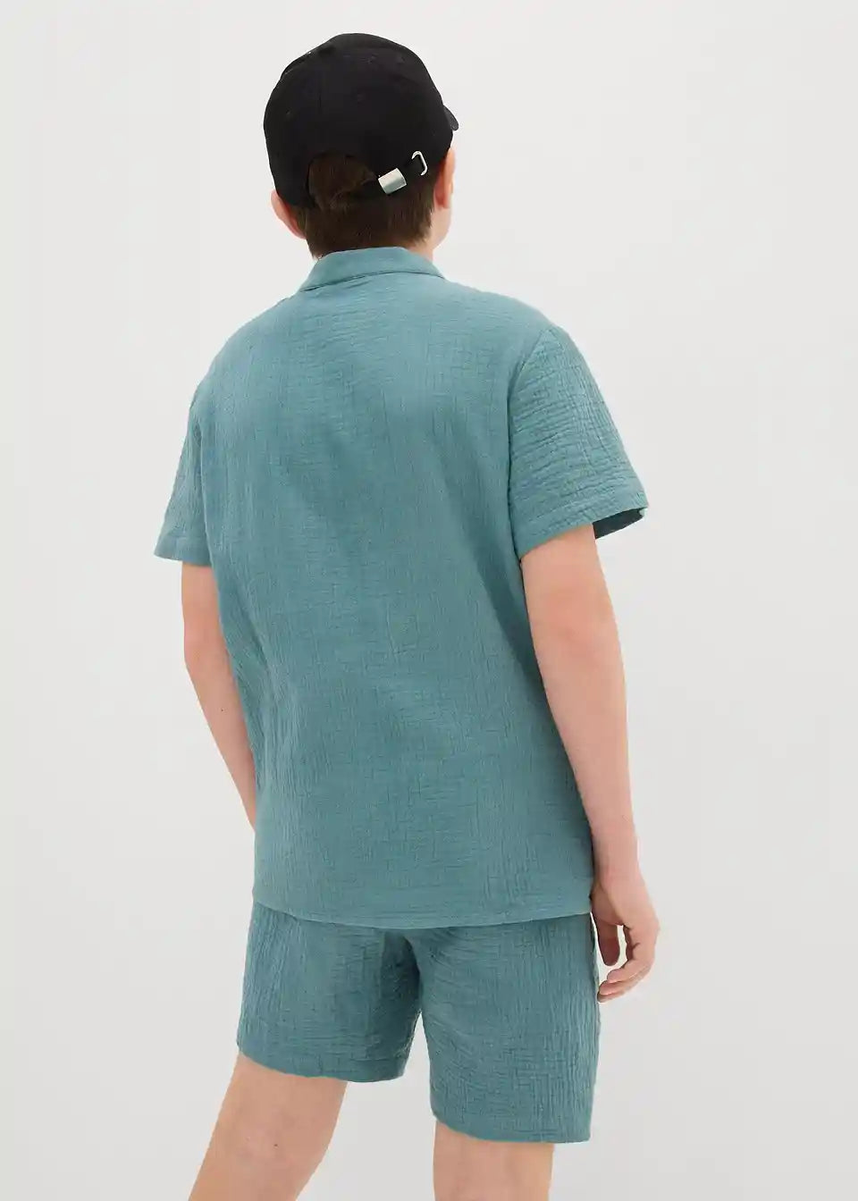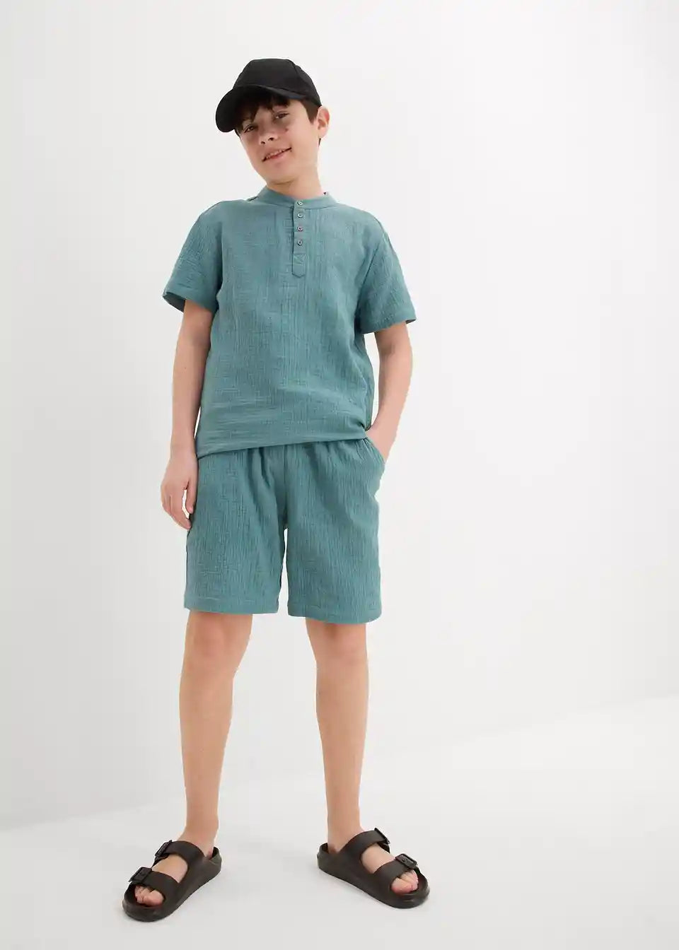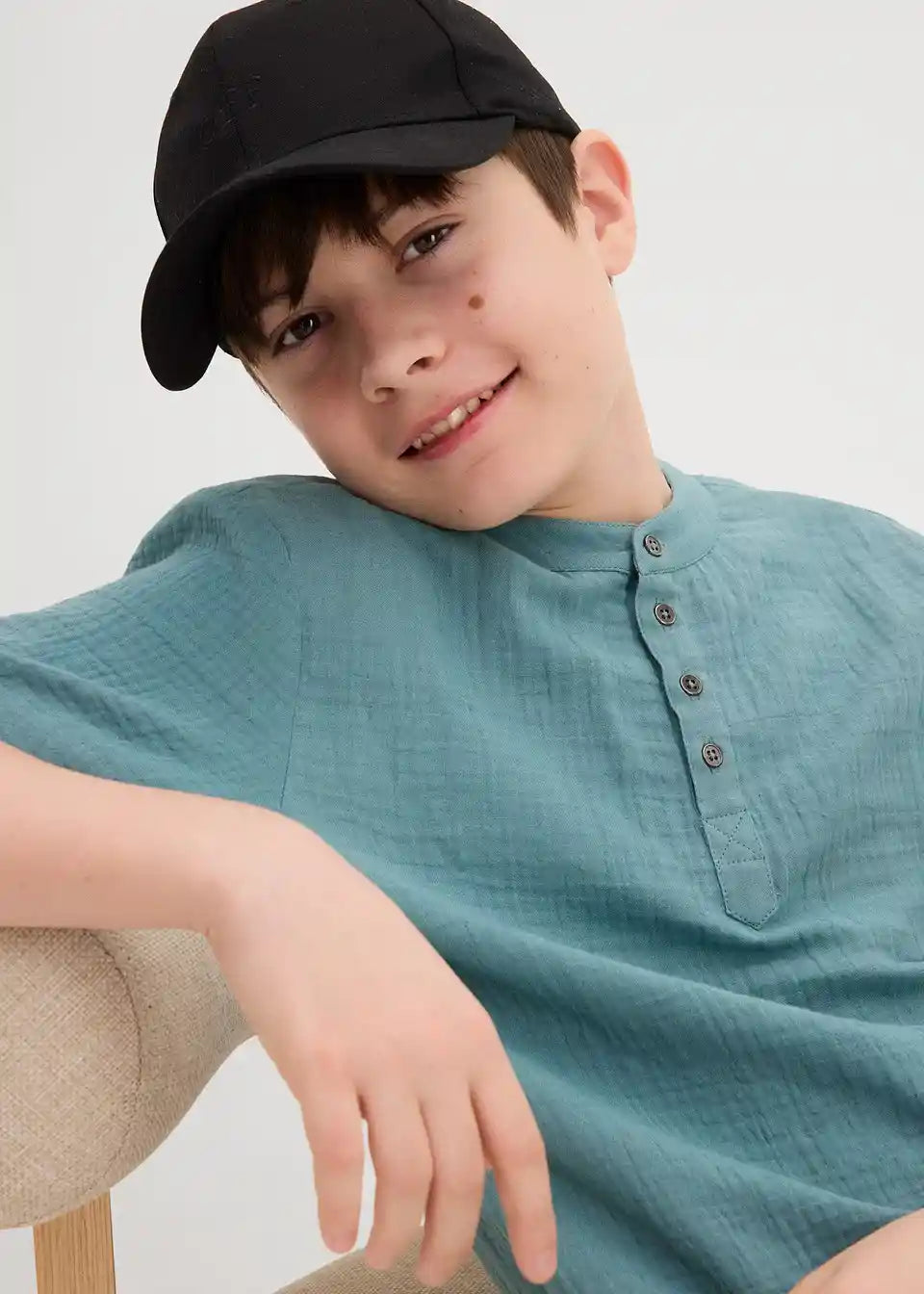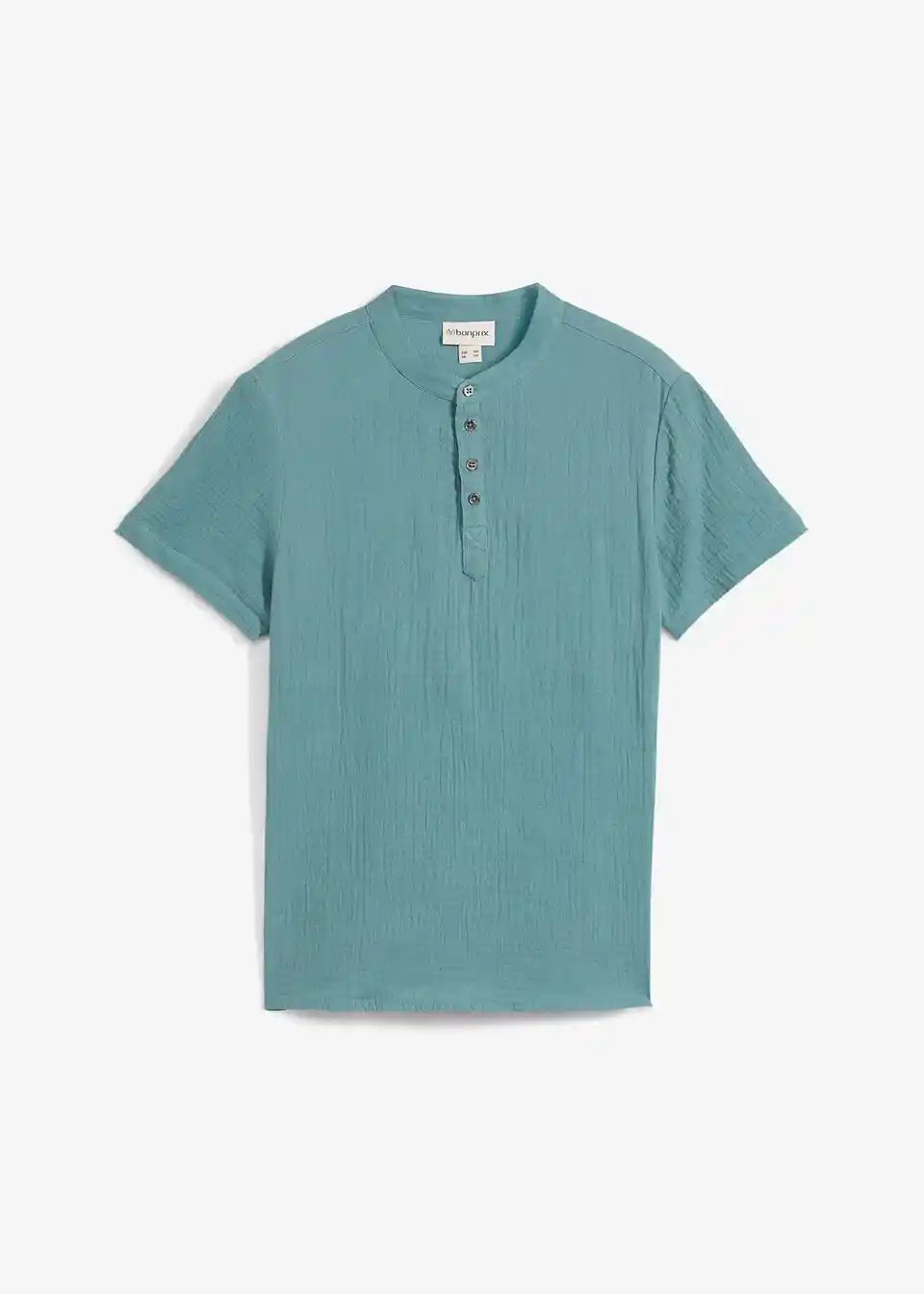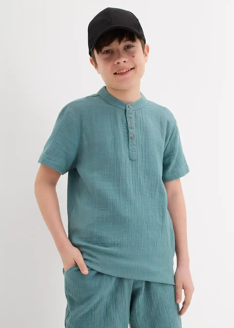 Srajca s kratkimi rokavi in pokončnim ovratnikom iz mehkega muslina