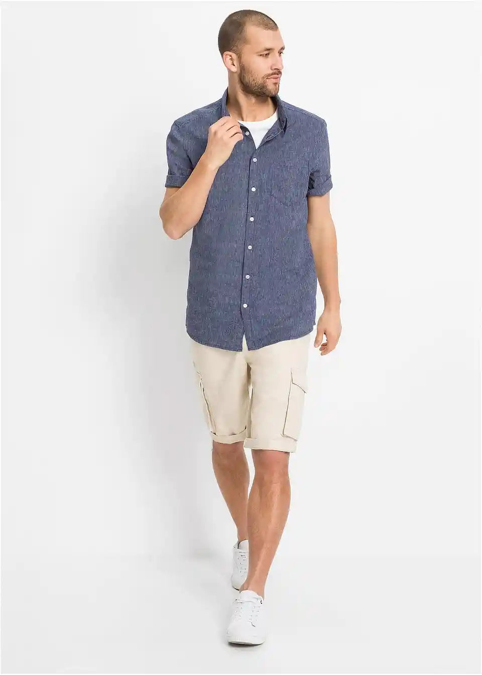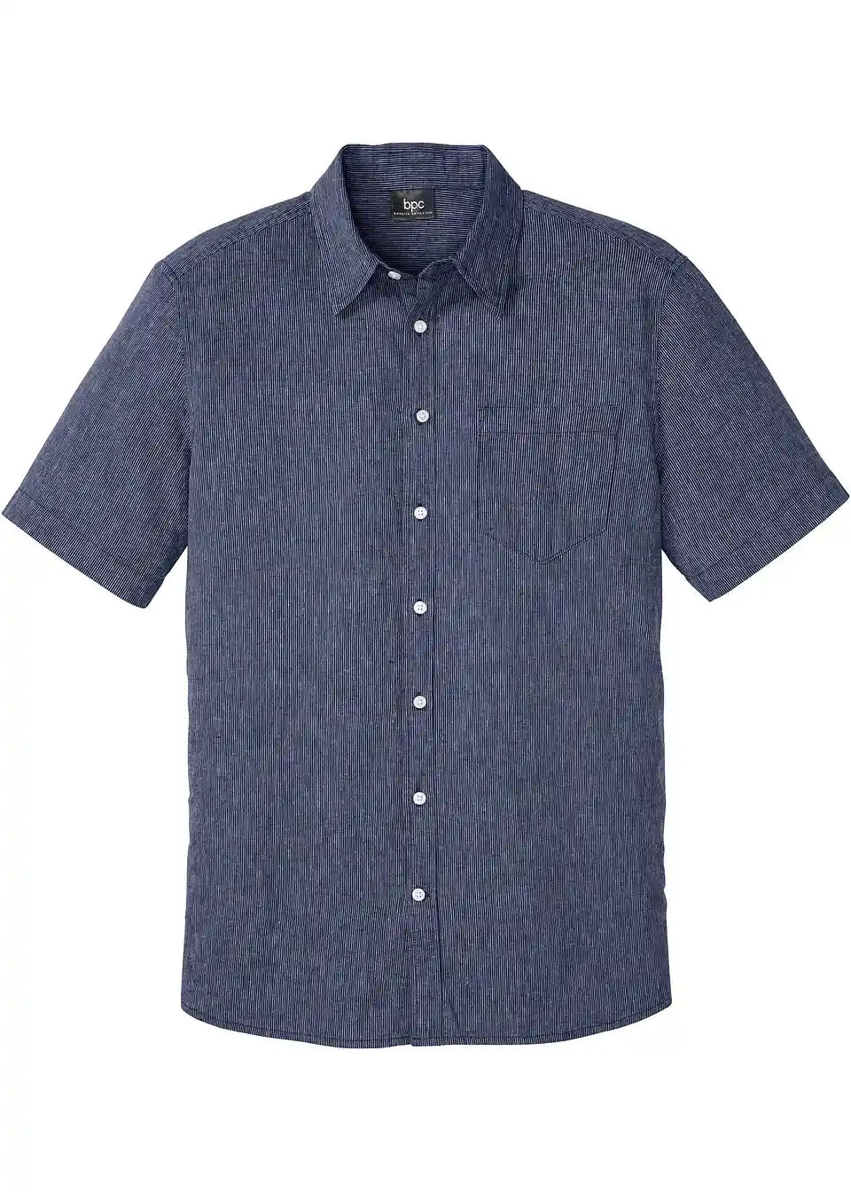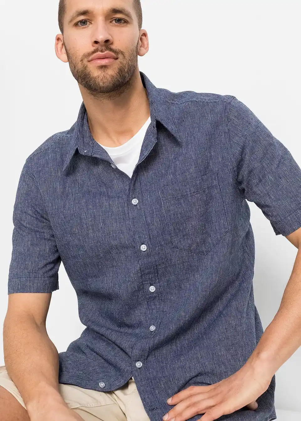 Lanena mešanica - srajca s kratkimi rokavi z žepom na prsih