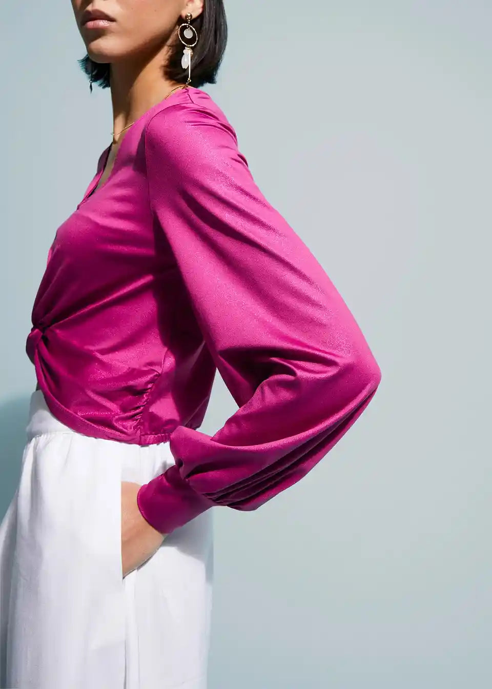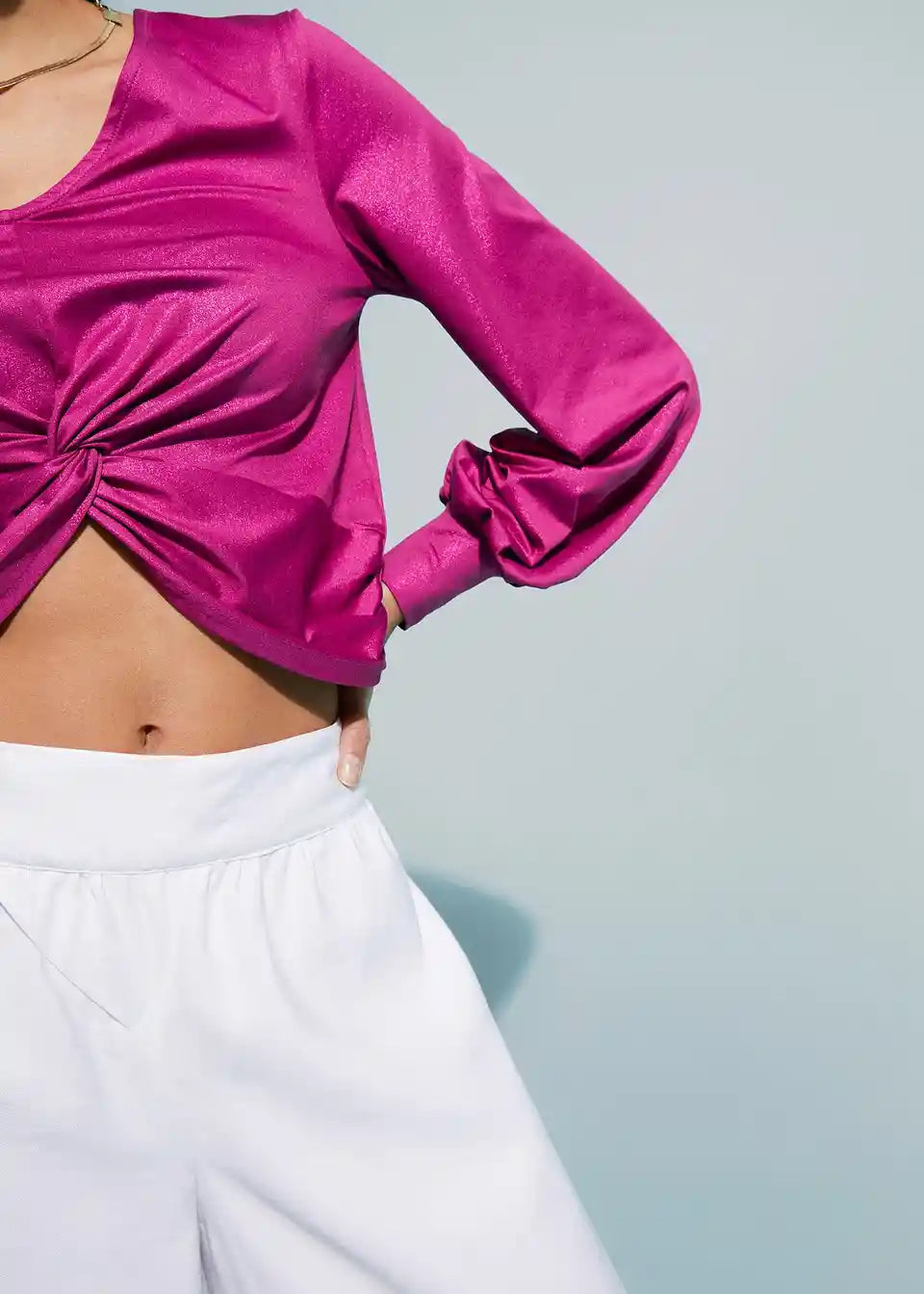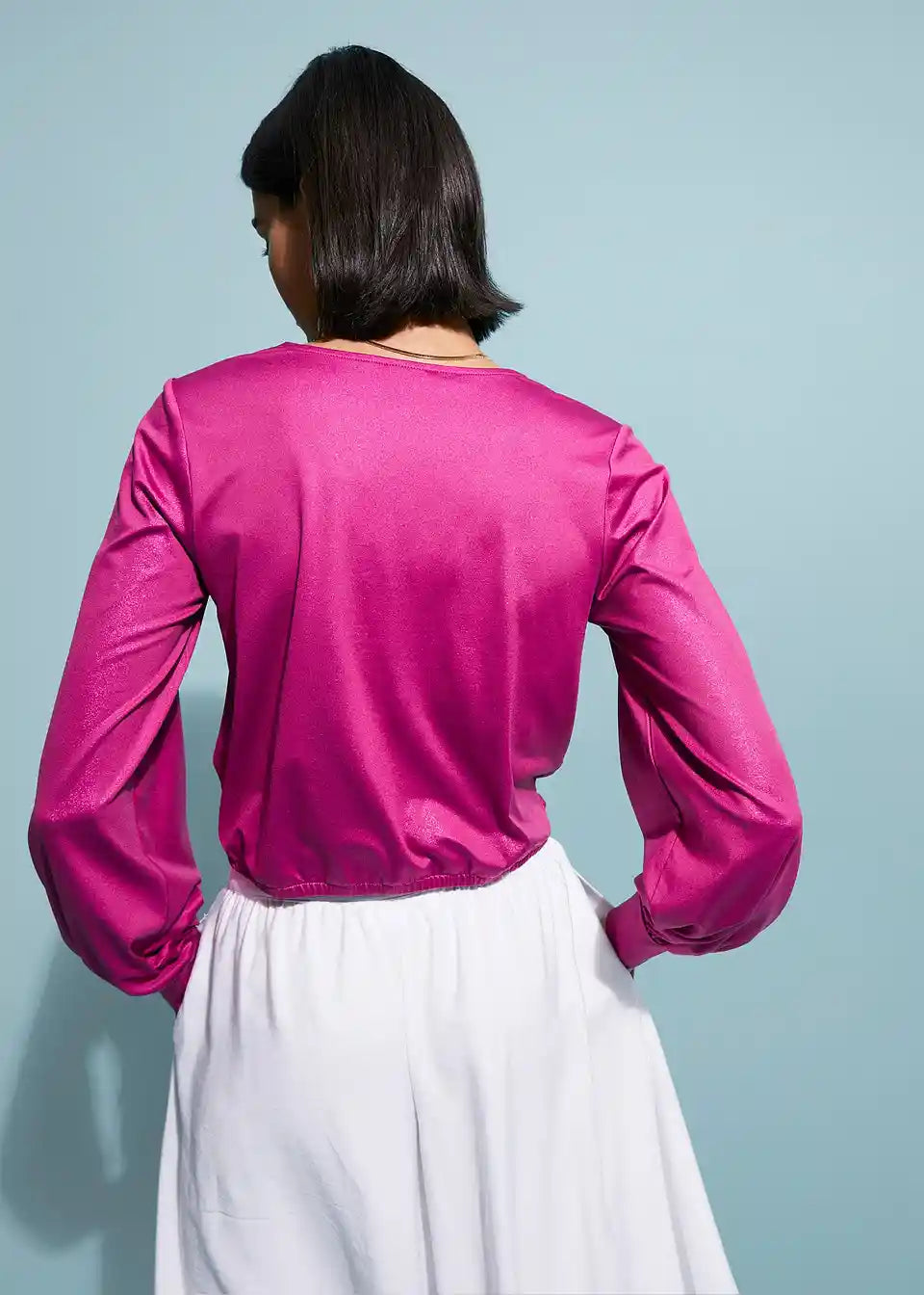Opazna kratka srajčna bluza z biskupskimi rokavi