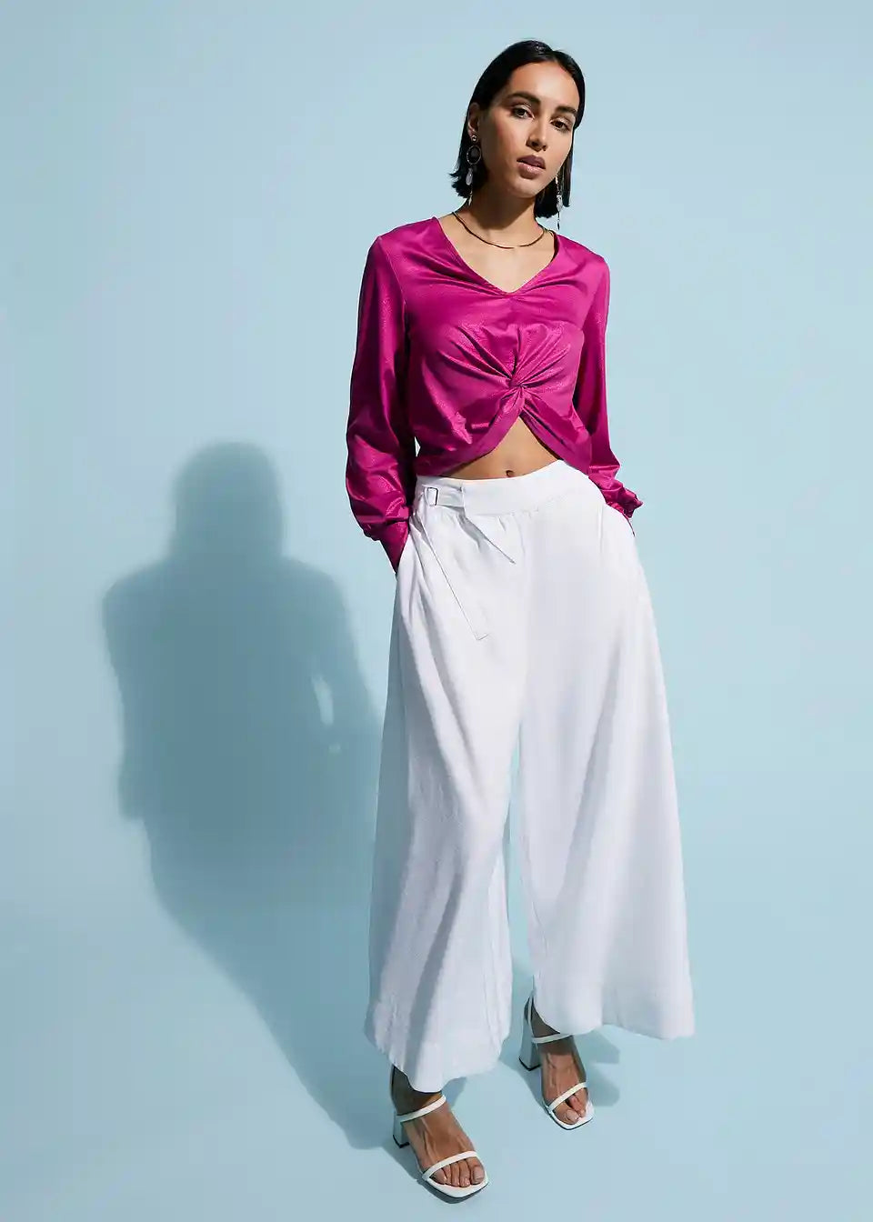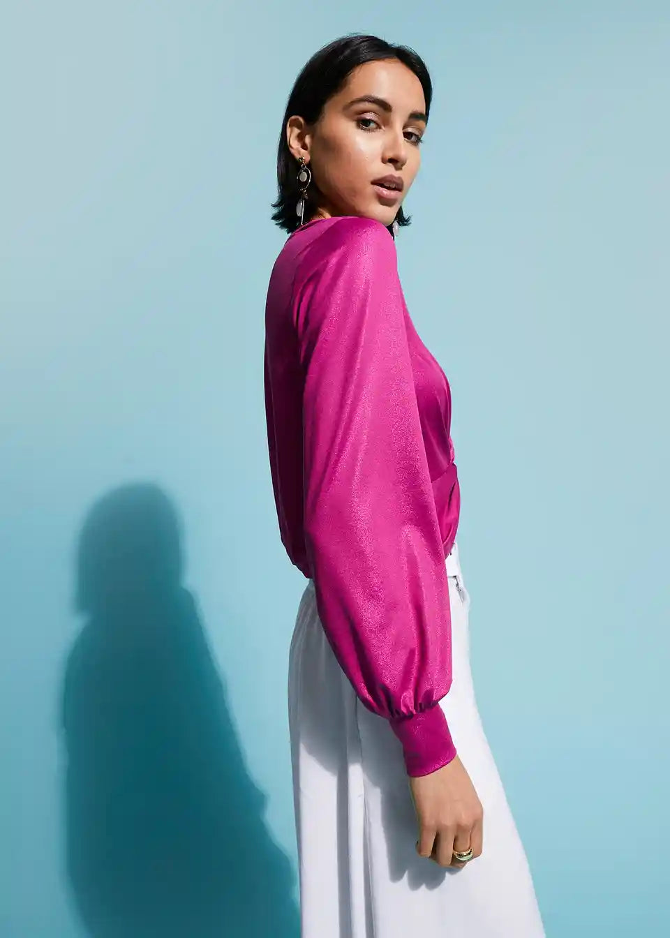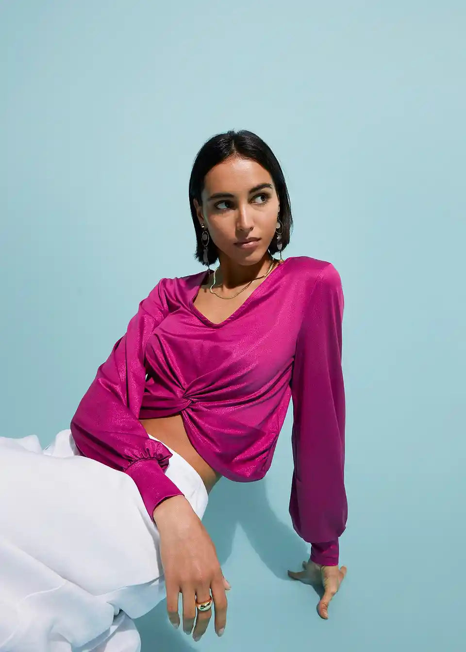 Opazna kratka srajčna bluza z biskupskimi rokavi
