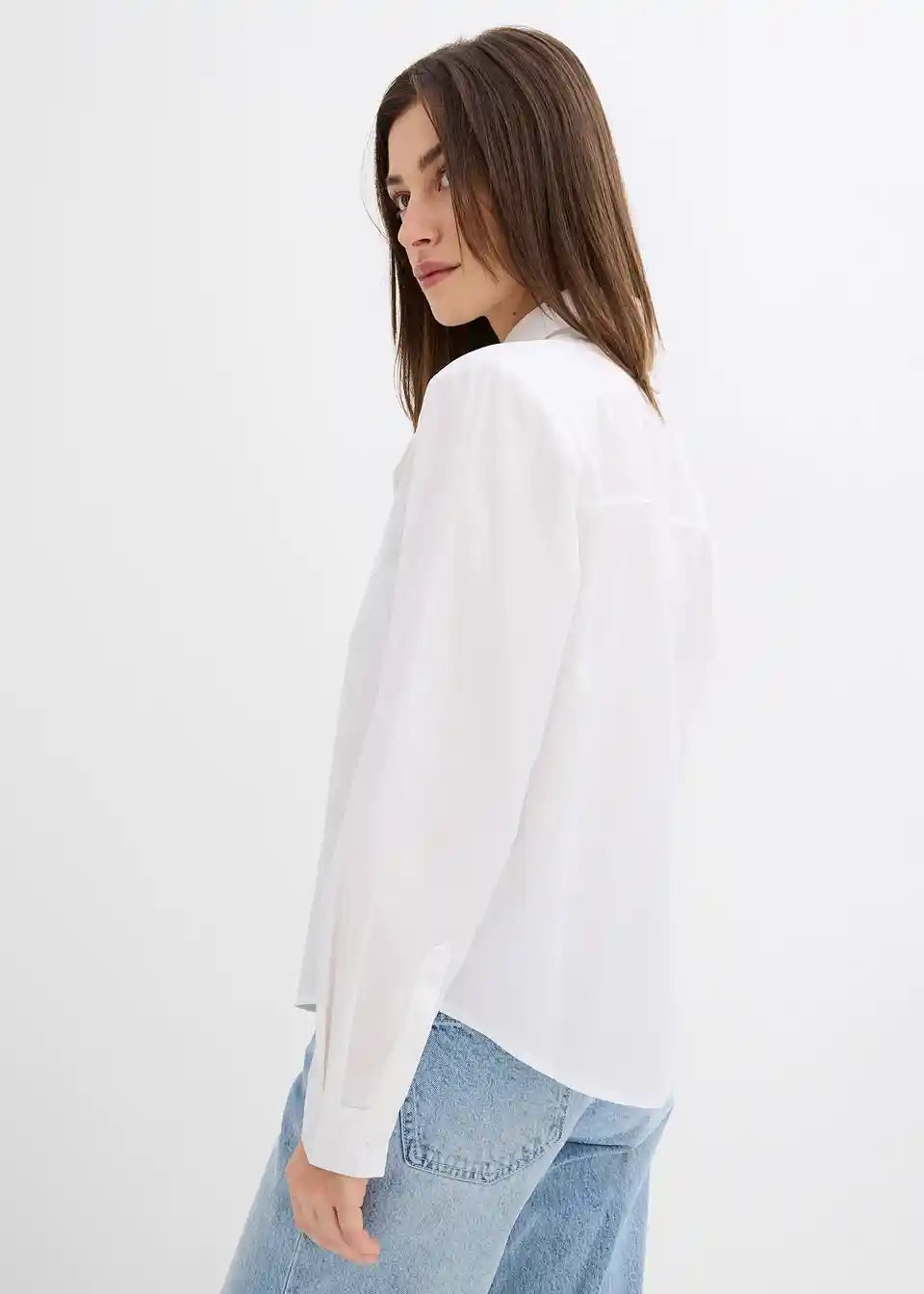 Ležerna srajčna bluza z dolgimi rokavi, ramenskimi blazinicami in dvema prsima žepoma spredaj