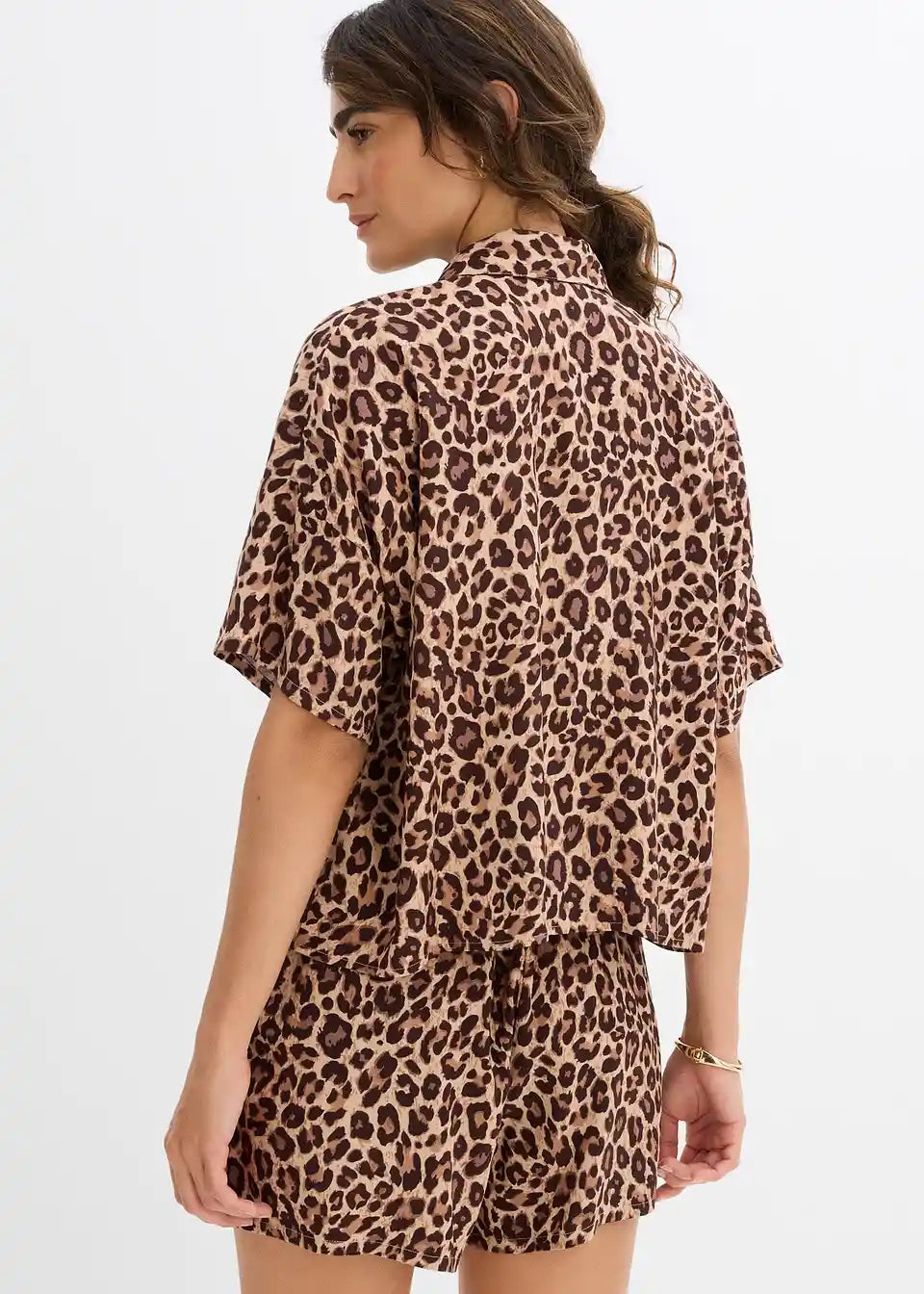 Kratka srajčna bluza z živalskim potiskom iz viskoze