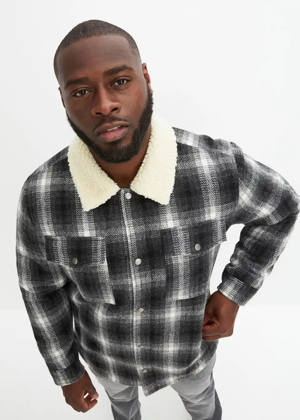 Srajčna jakna z ovratnikom iz umetnega ovčjega krzna