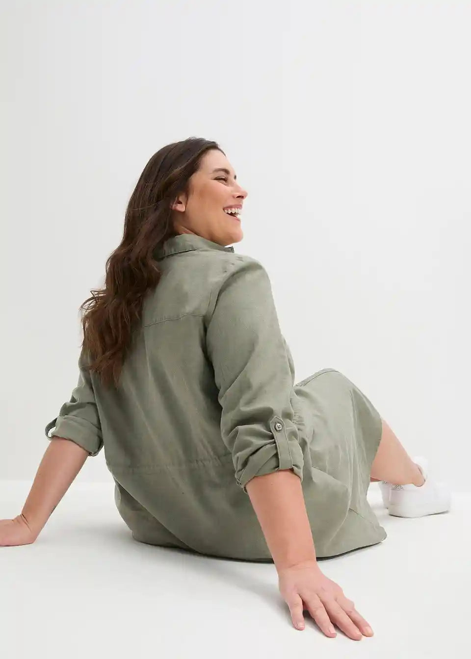 Modna obleka z žepi in elastičnim pasom, dolžina do kolen