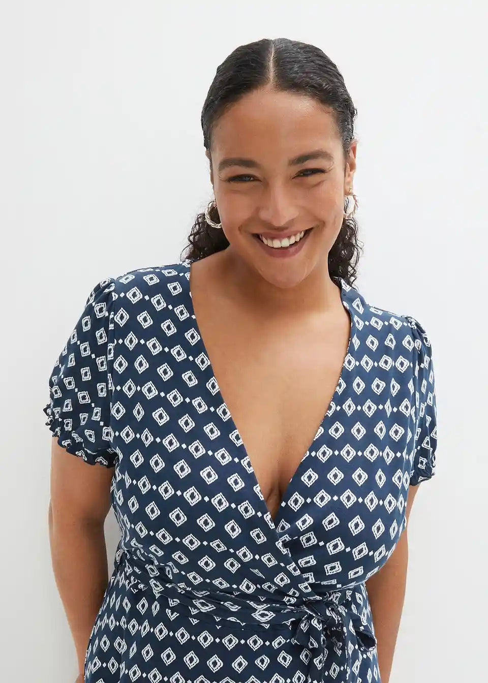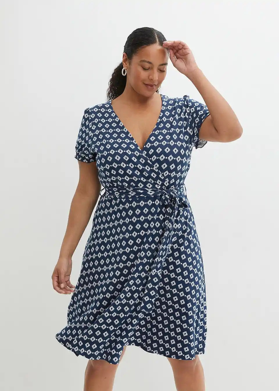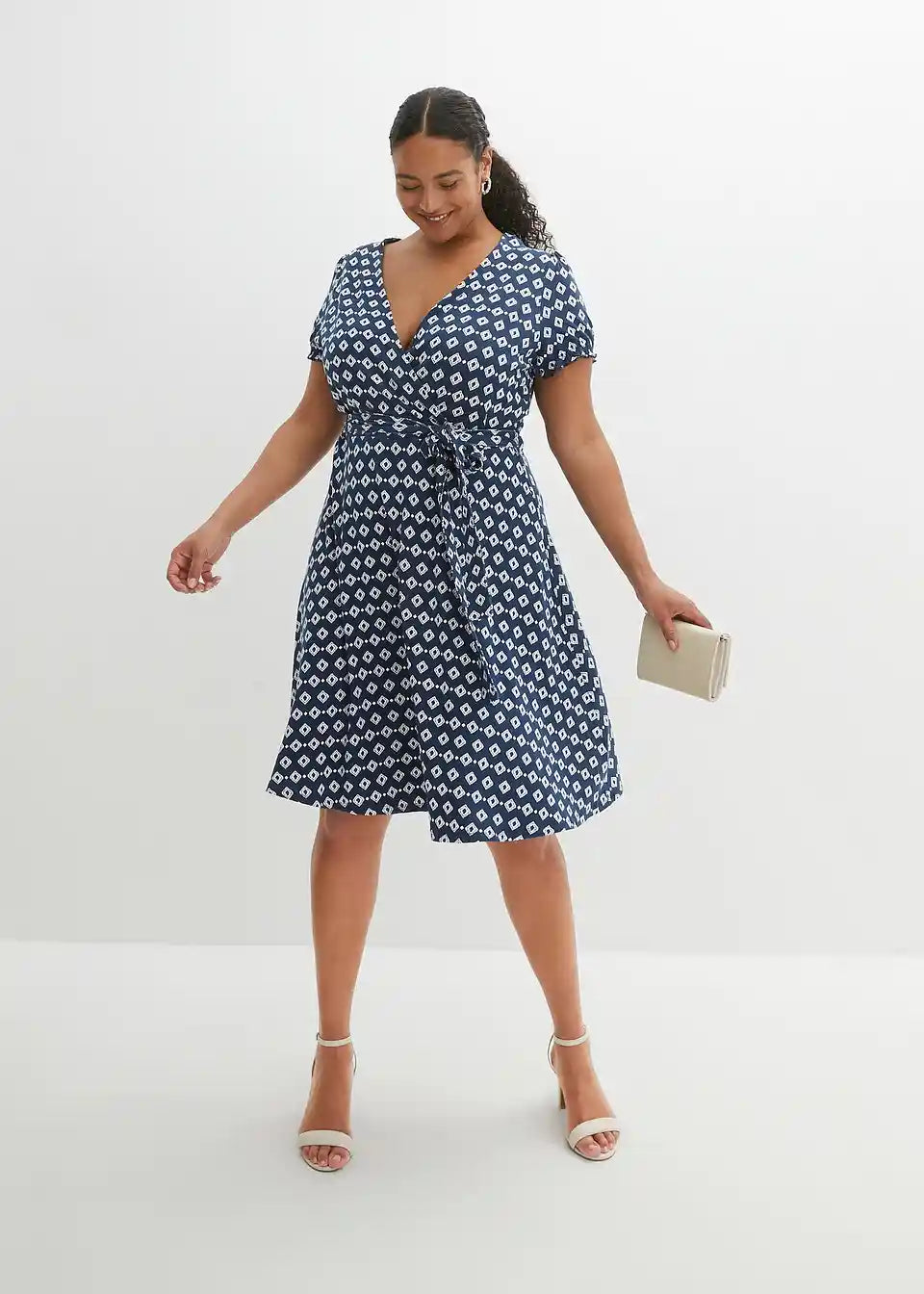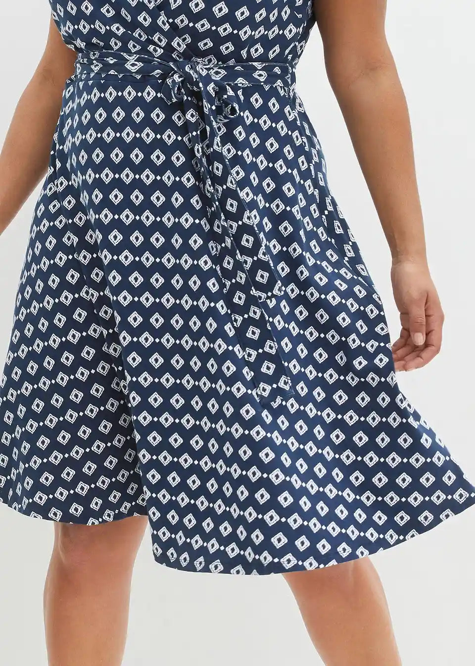 Prilegajoča se obleka z vsestranskim potiskom in zavezujočim pasom