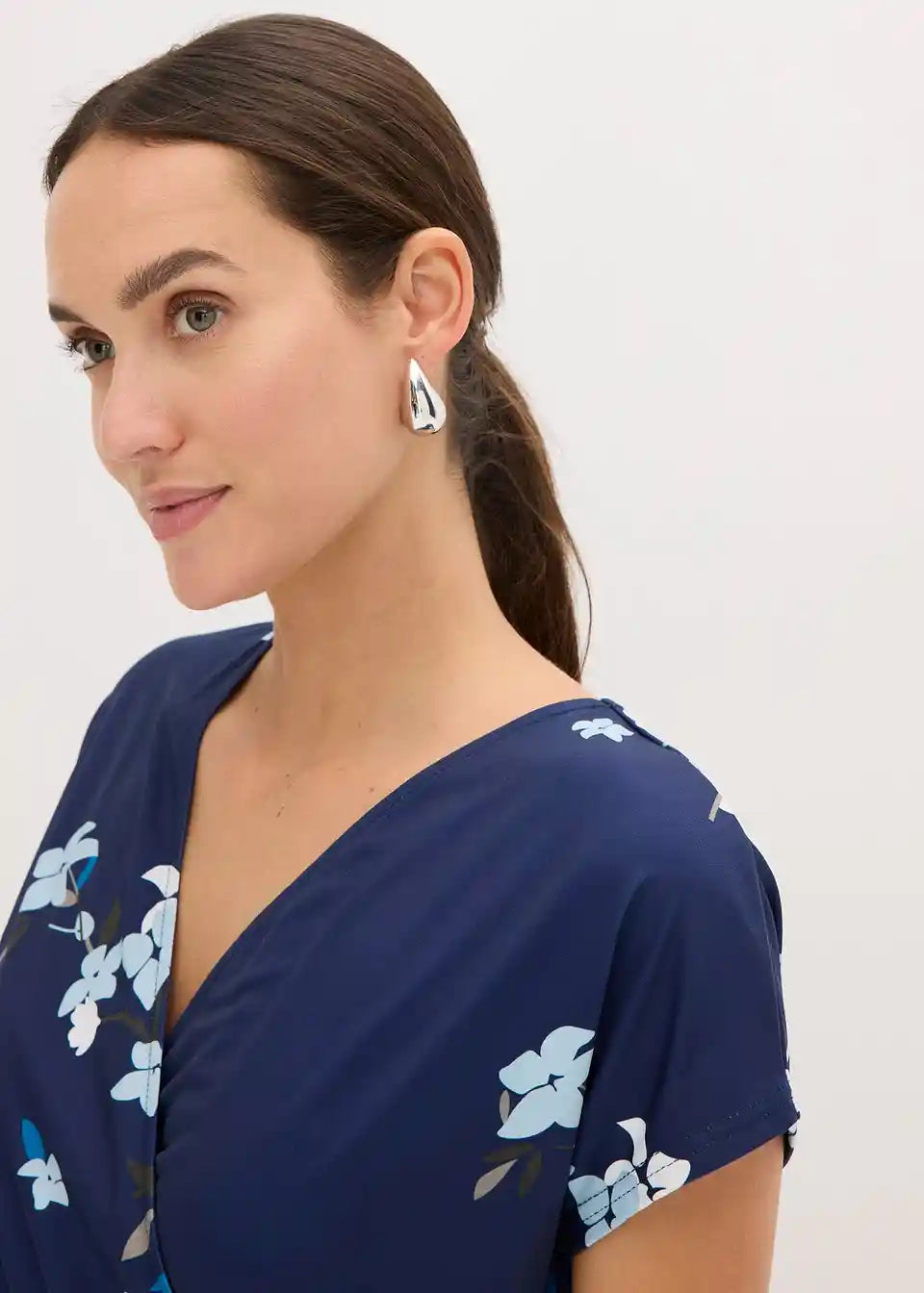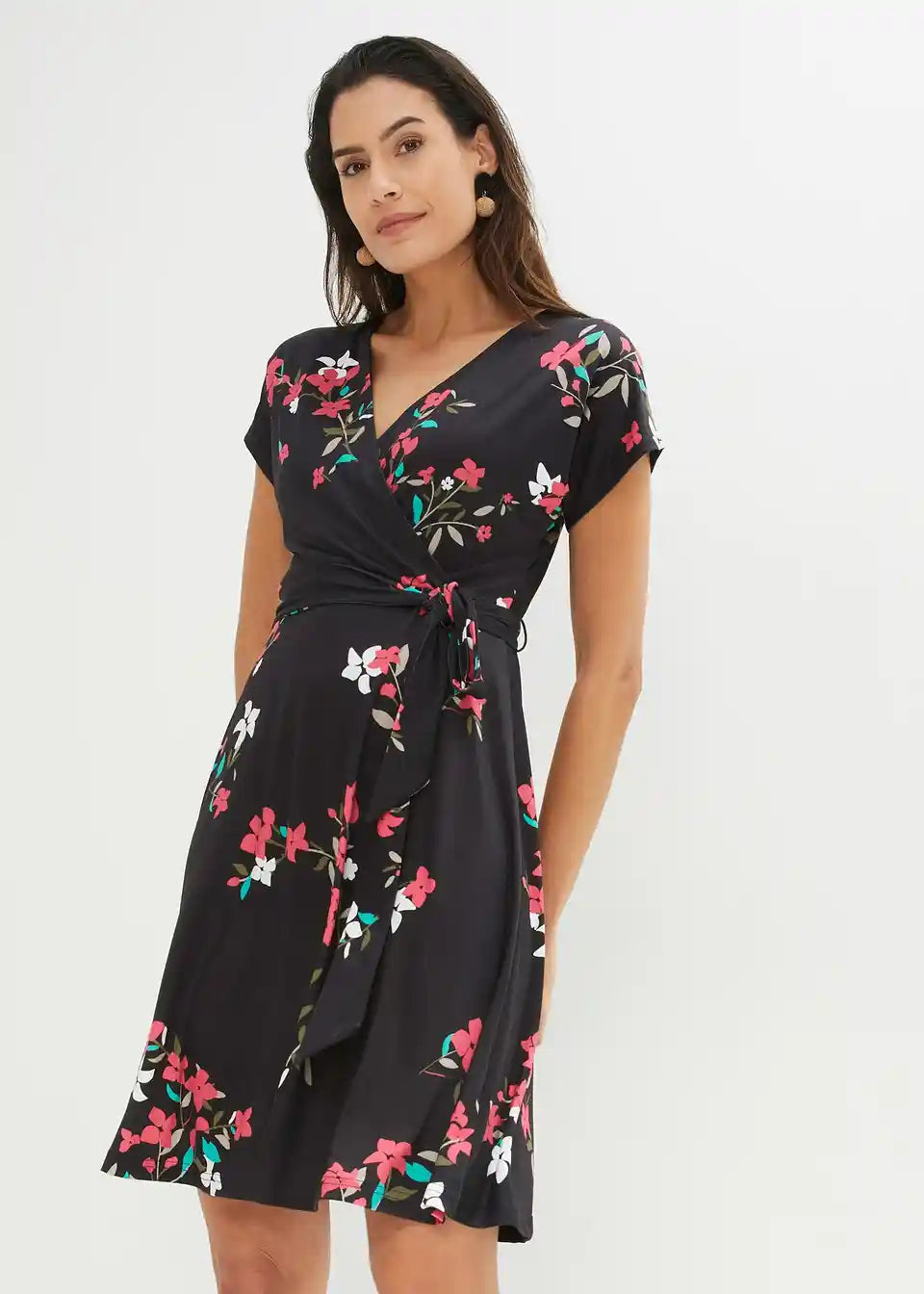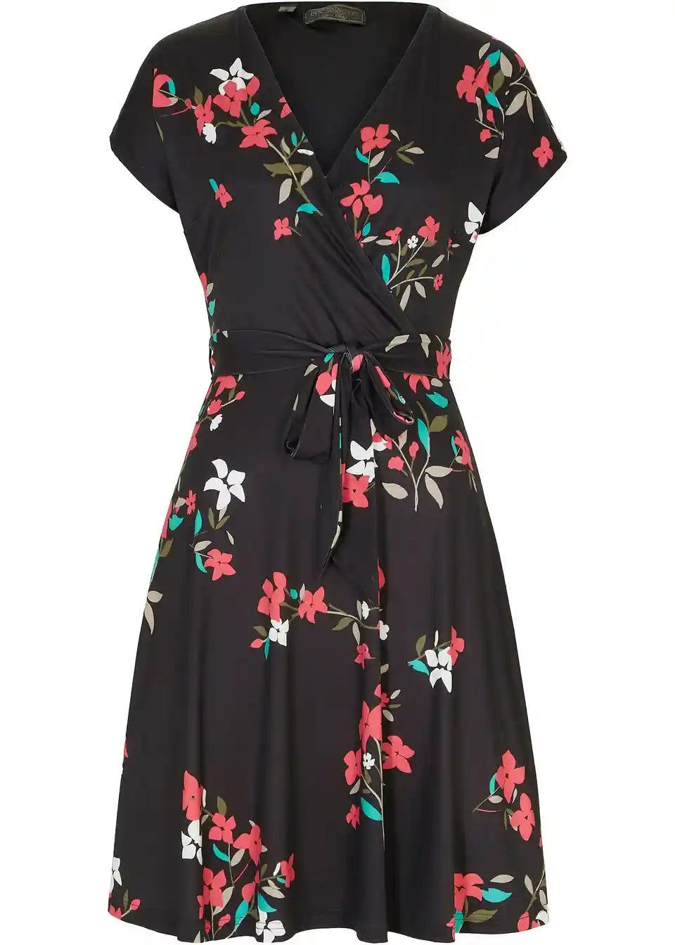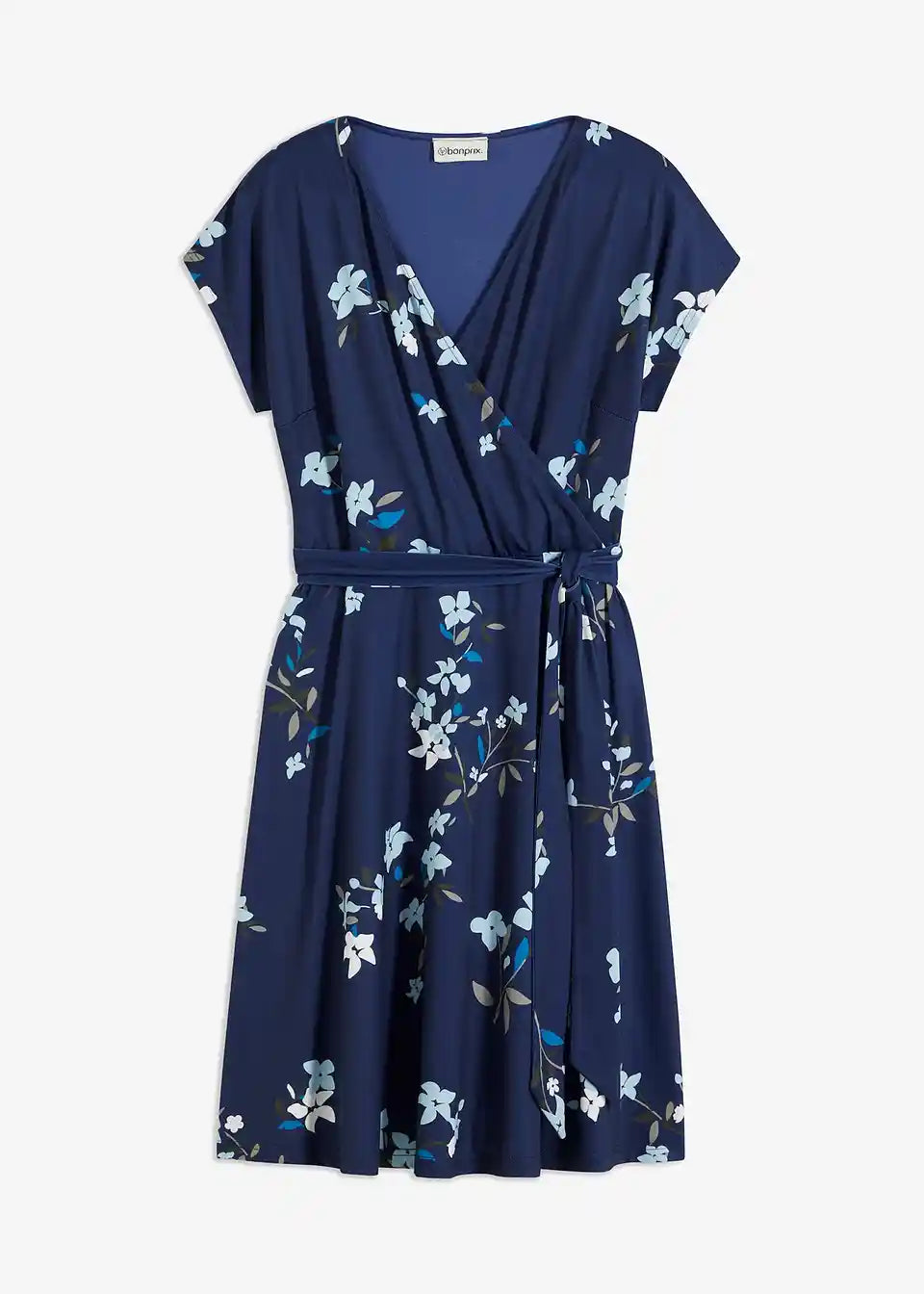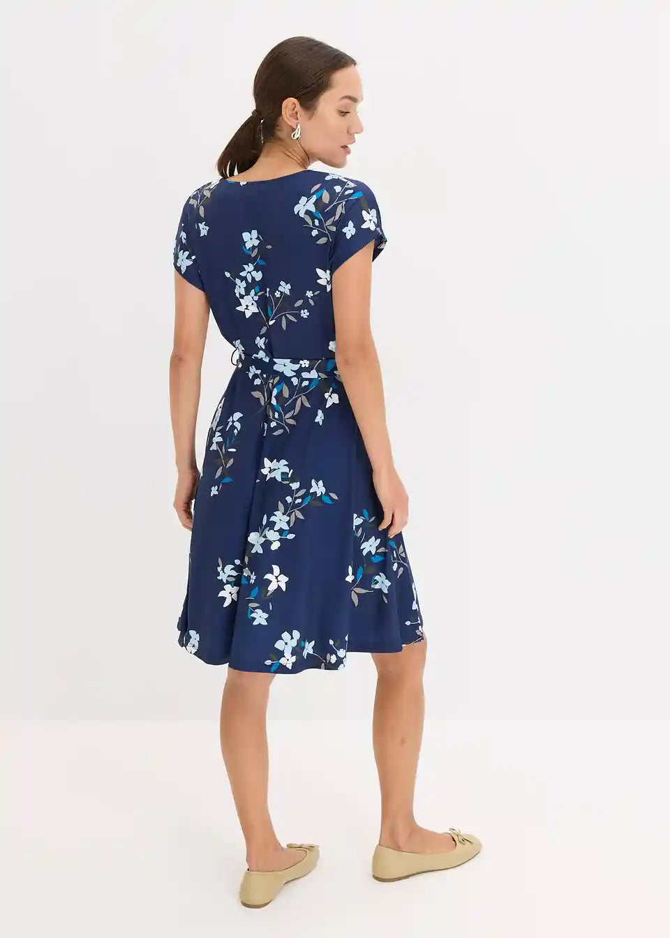 Obleka, ki poudari postavo, s potiskom po celotni površini in pasom za zavezovanje