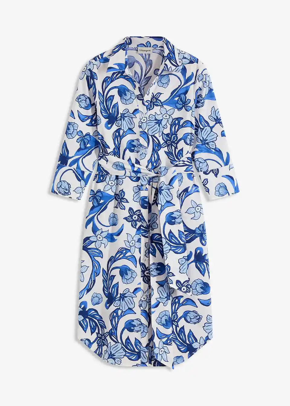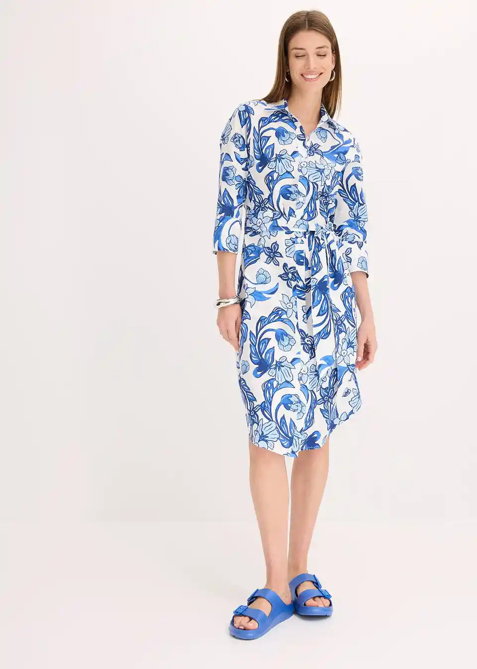 Maksimalna obleka z rožastim potiskom in trakcem za vezanje