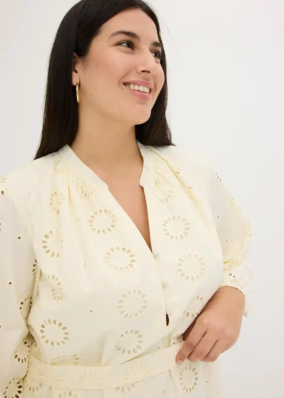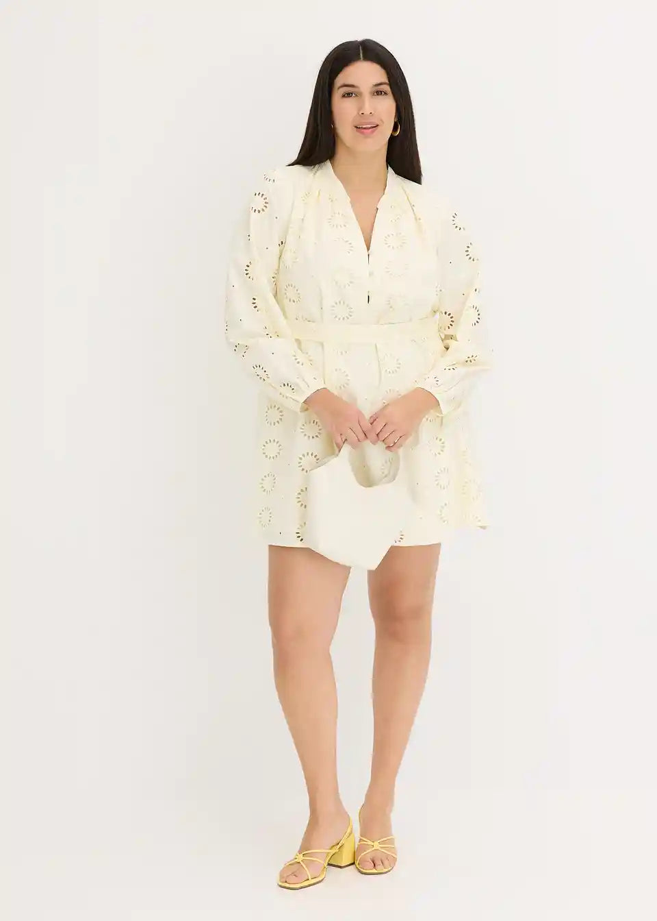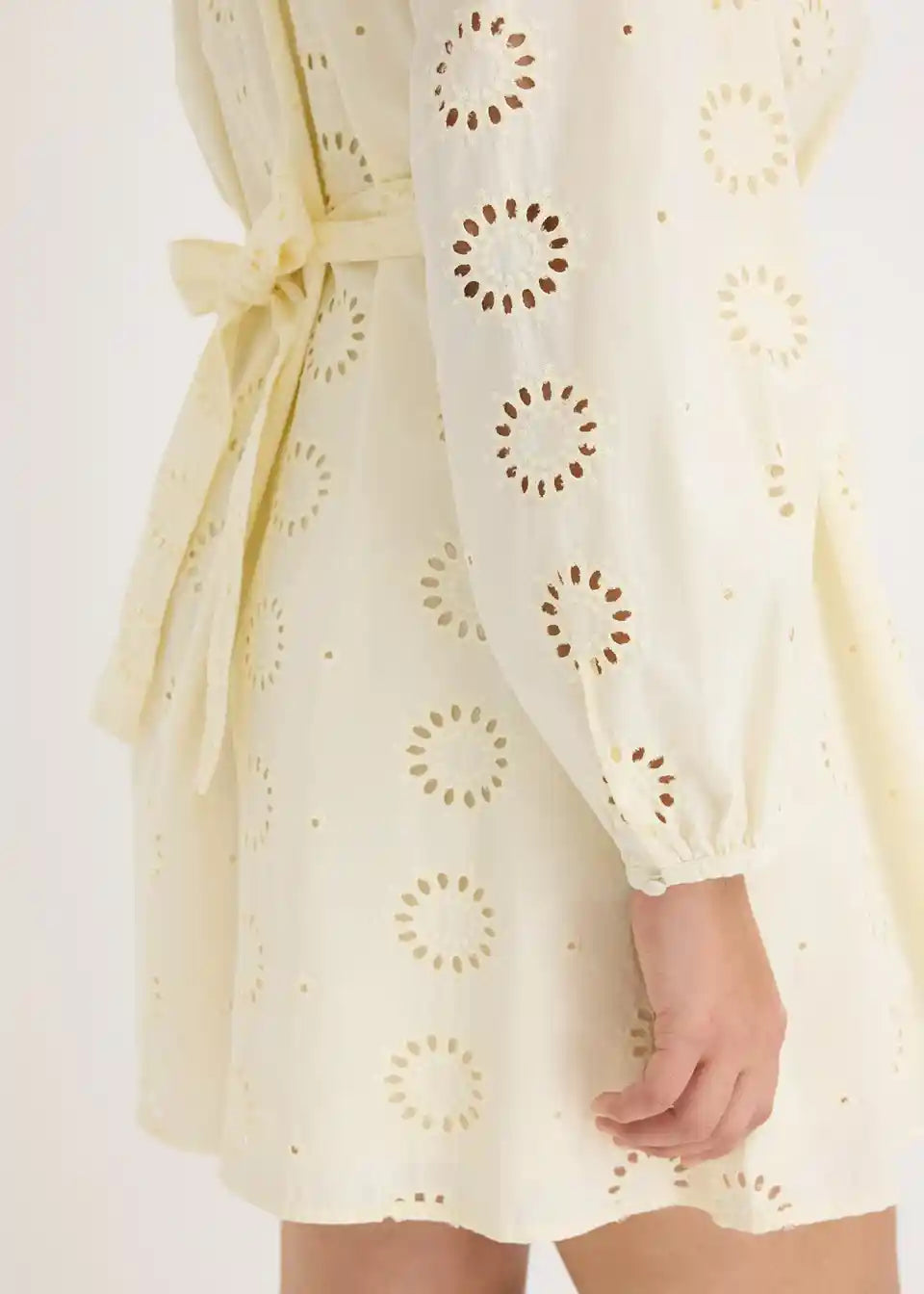 Obleka z všito vezenino po celotni površini in zavezovalnim pasom