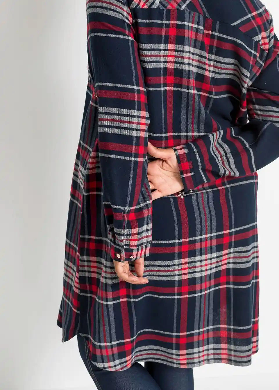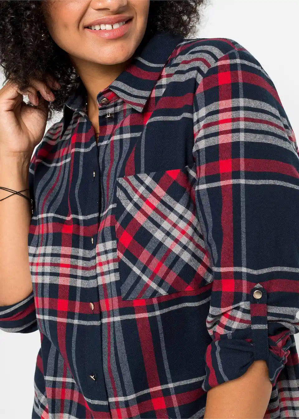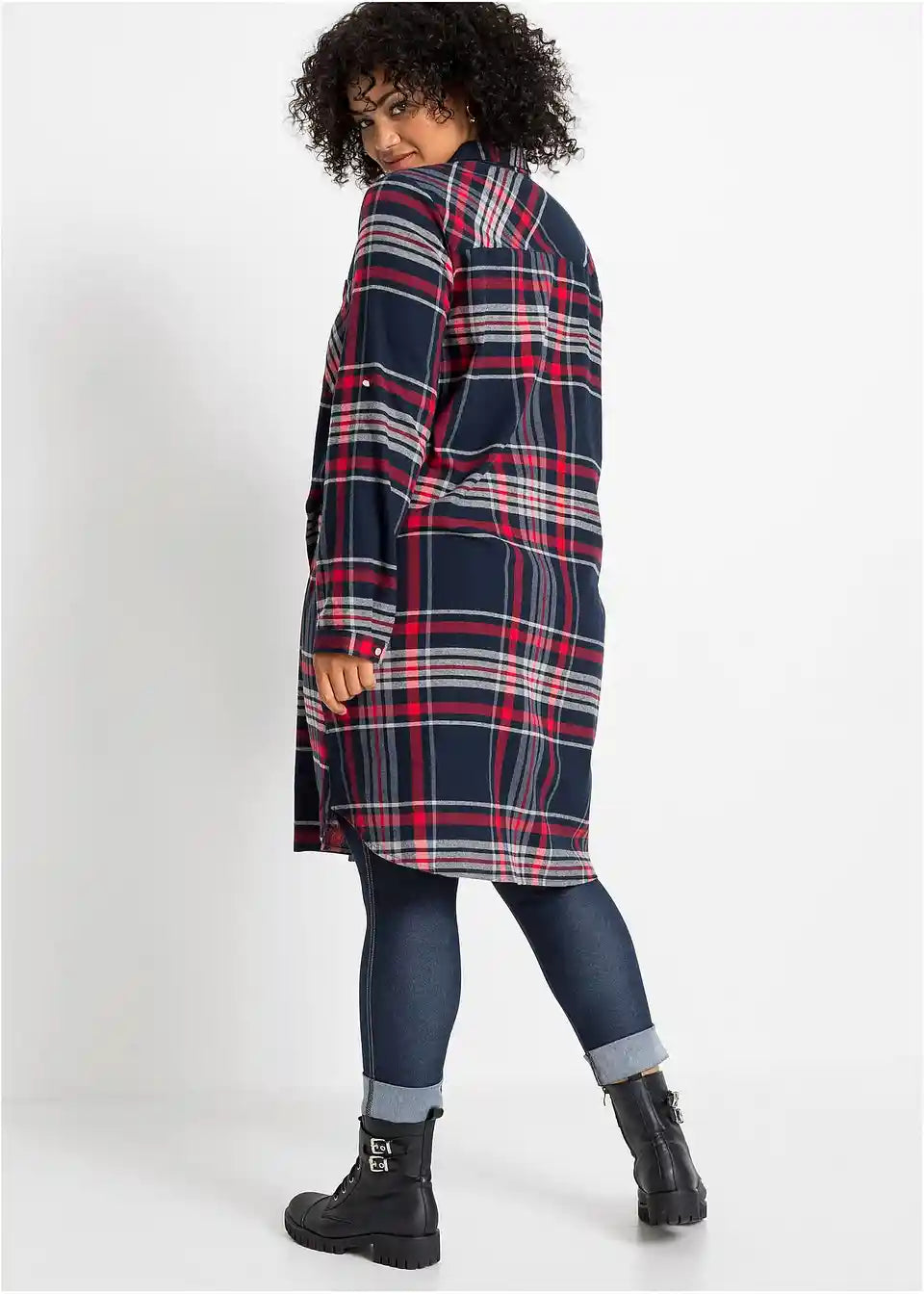 Udobna obleka z zapenjanjem na gumbe in nastavljivimi rokavi