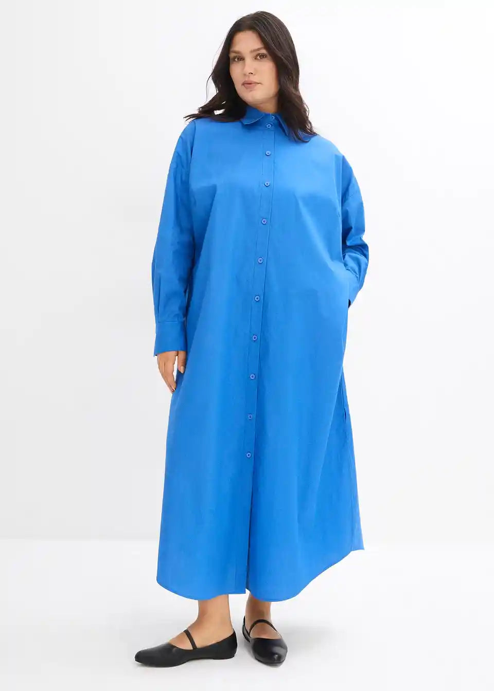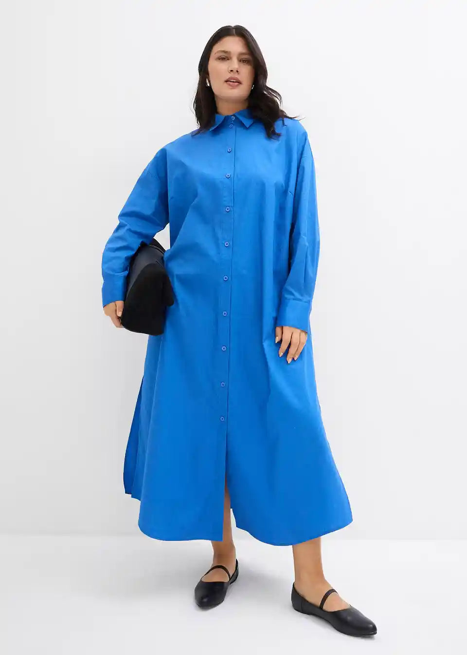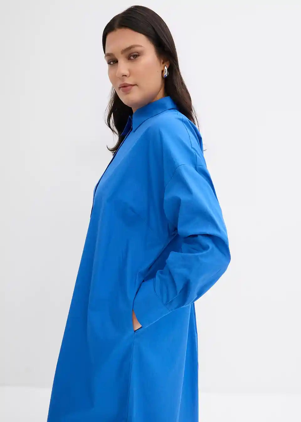Oversized srajčna obleka z dolgimi rokavi