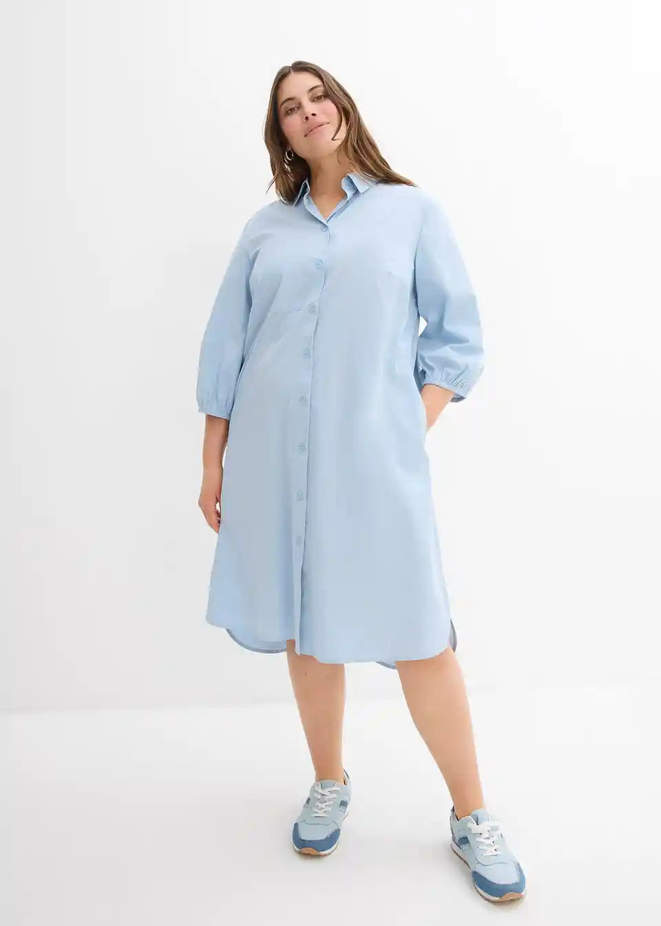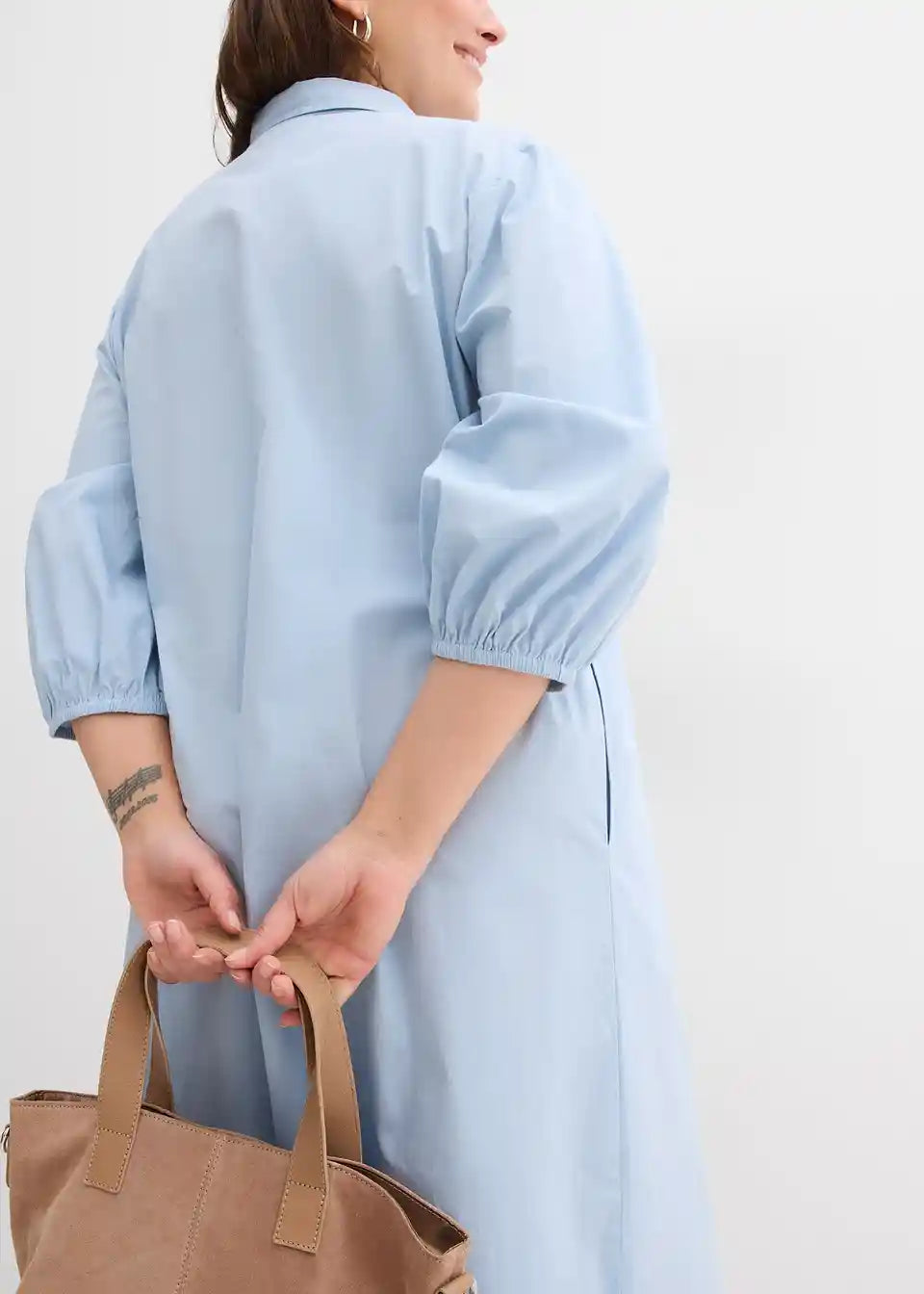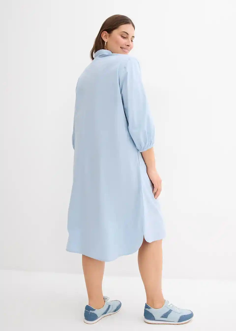 Srajčna obleka v lahki A-liniji. S stranskimi žepi in elastičnim zaključkom na rokavih.