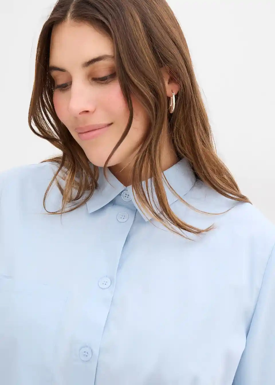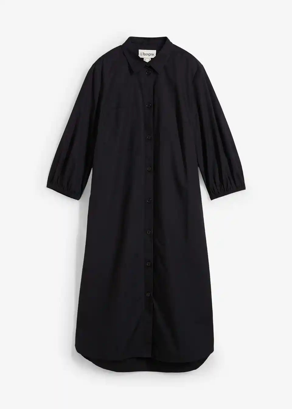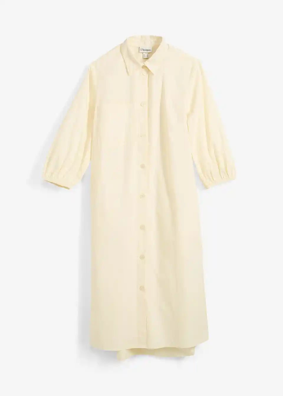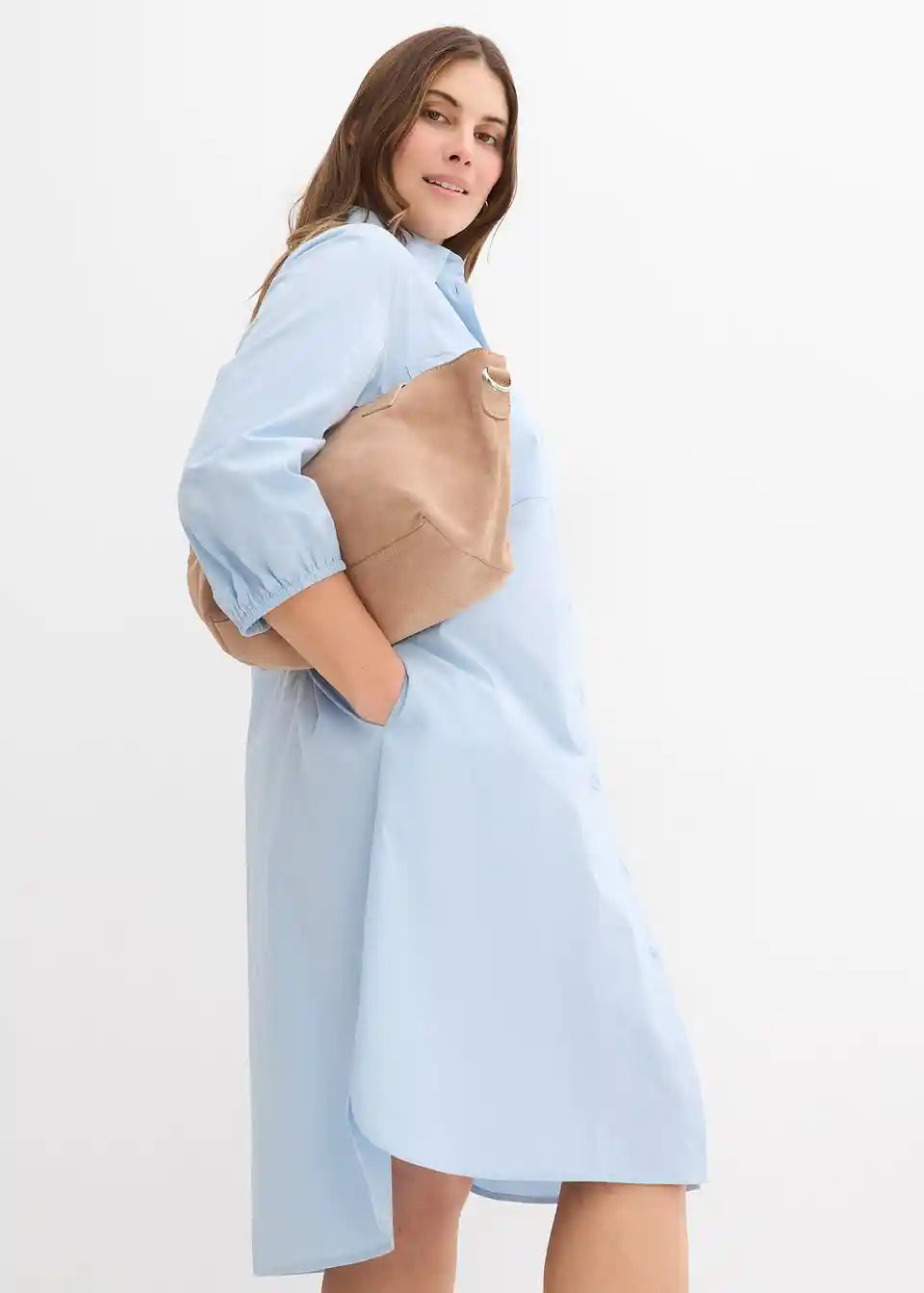 Srajčna obleka v lahki A-liniji. S stranskimi žepi in elastičnim zaključkom na rokavih.