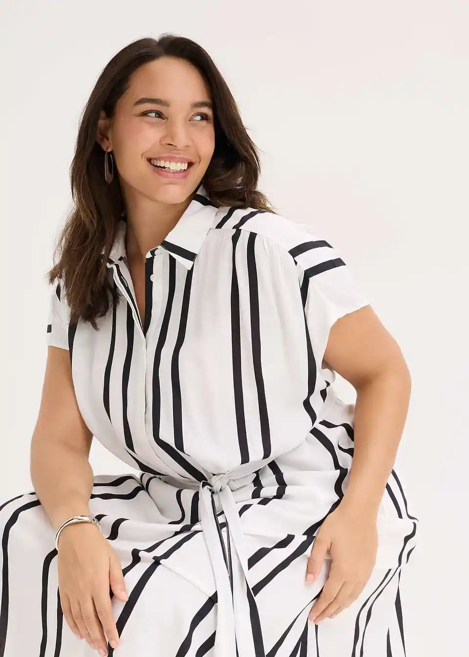 moderna srajčna obleka s sprednjo vrstico gumbov in zavezujočim pasom v pasu