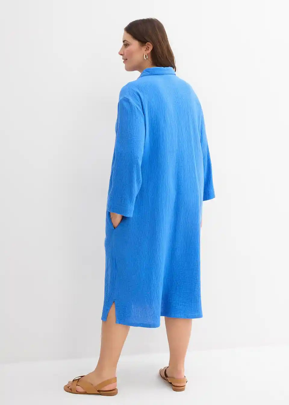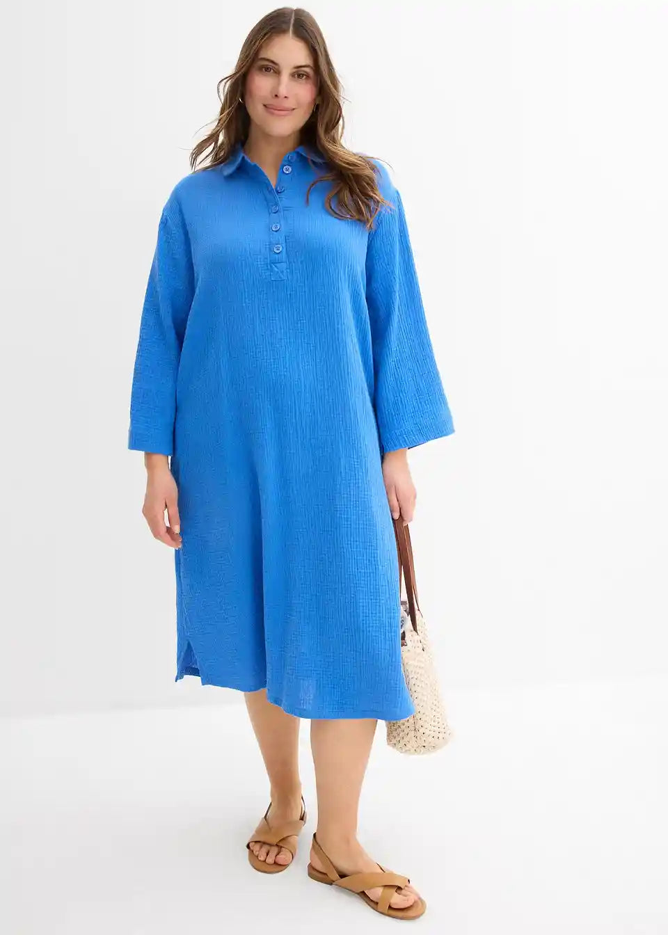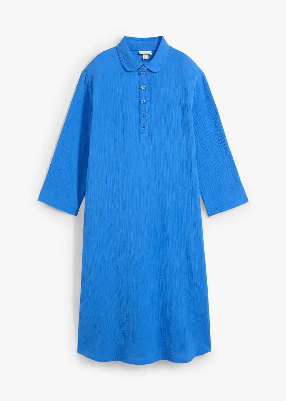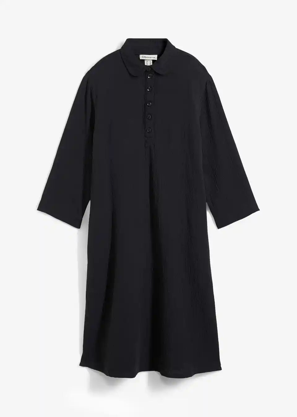 Srajčna obleka iz bombaža v A-kroju. Z zapenjanjem na gumbe in 3/4 rokavi.