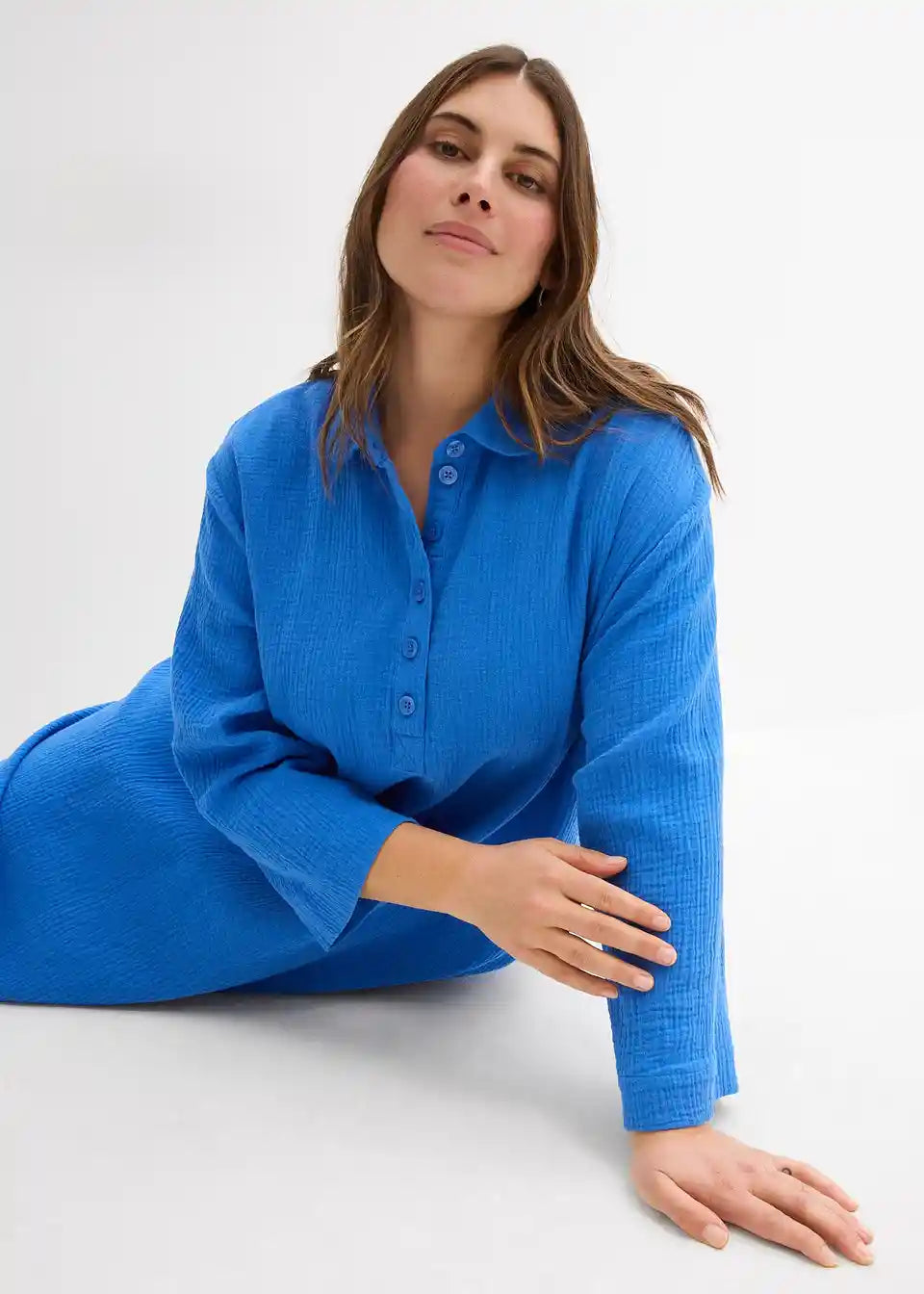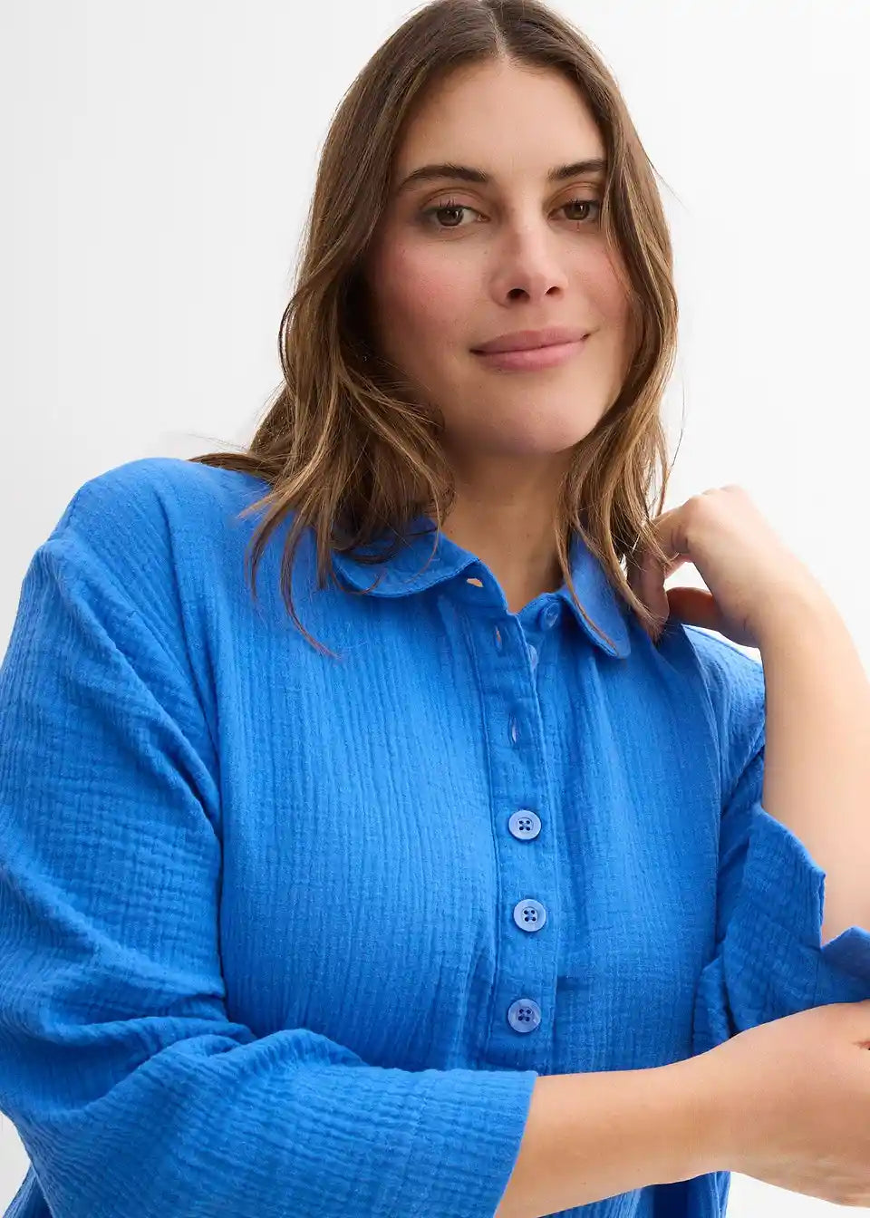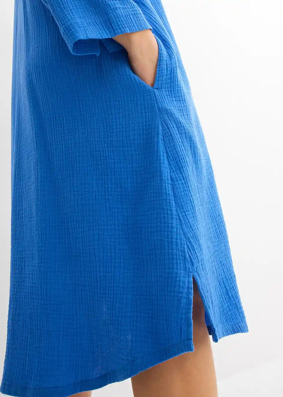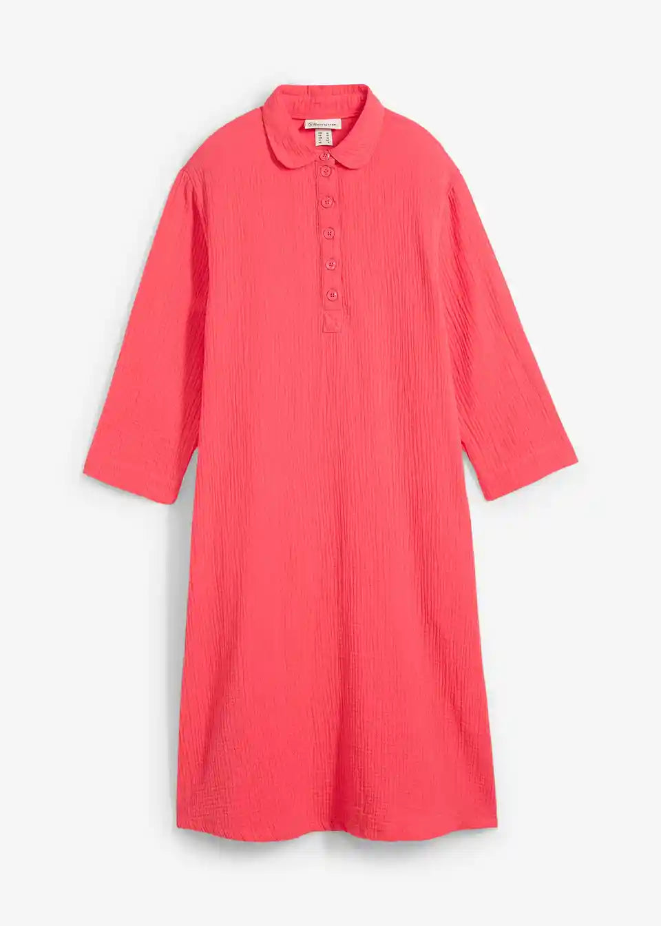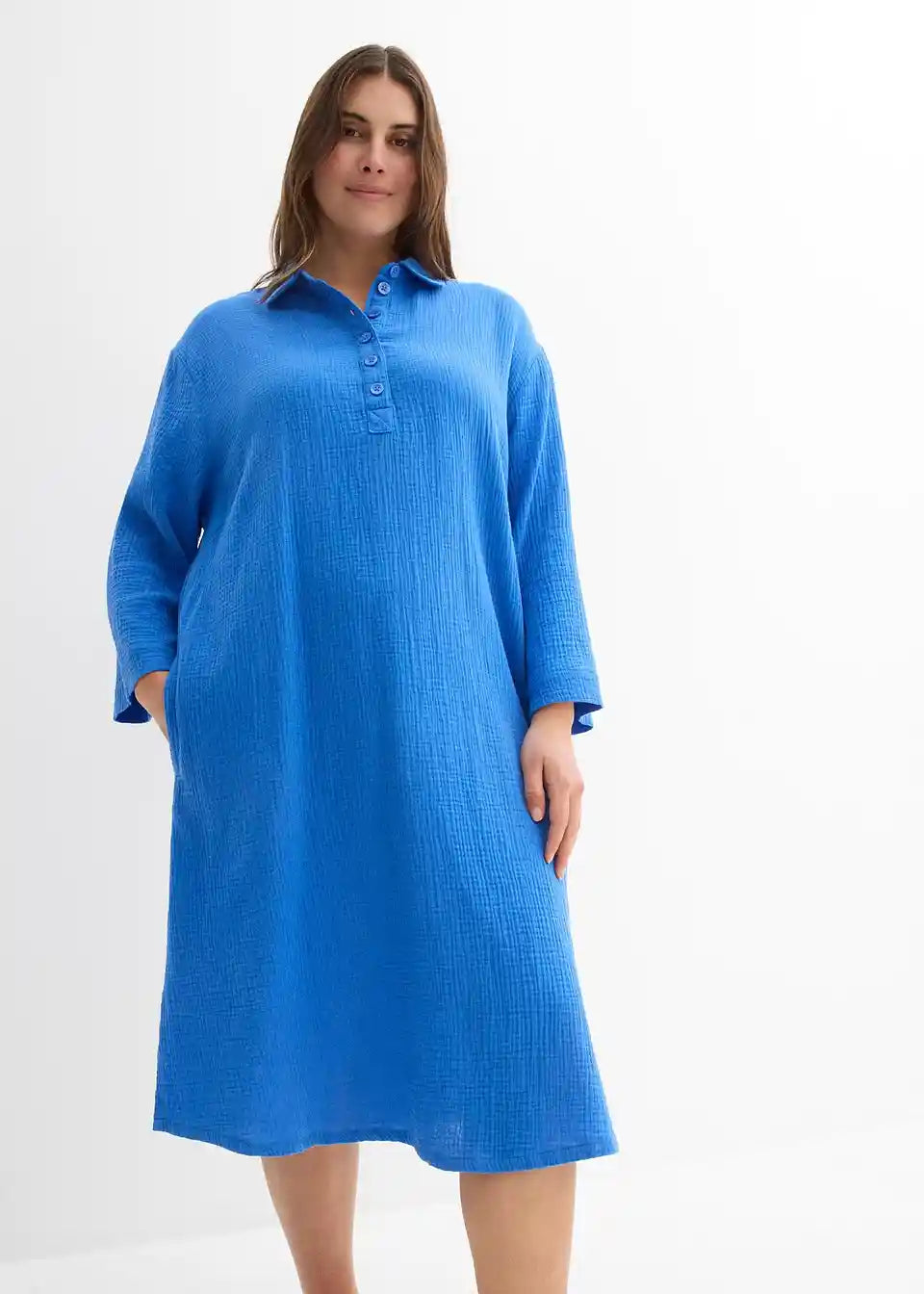 Srajčna obleka iz bombaža v A-kroju. Z zapenjanjem na gumbe in 3/4 rokavi.