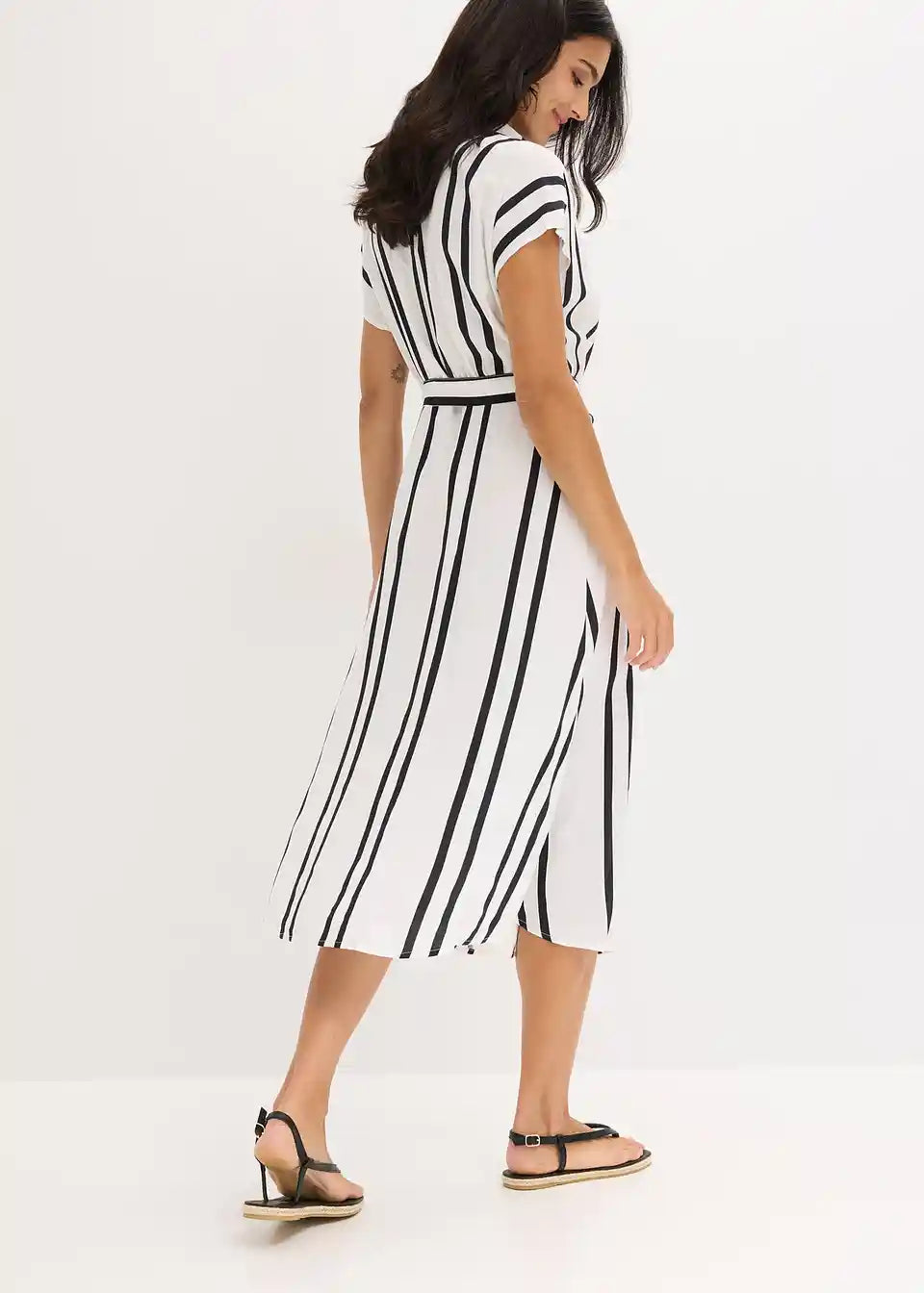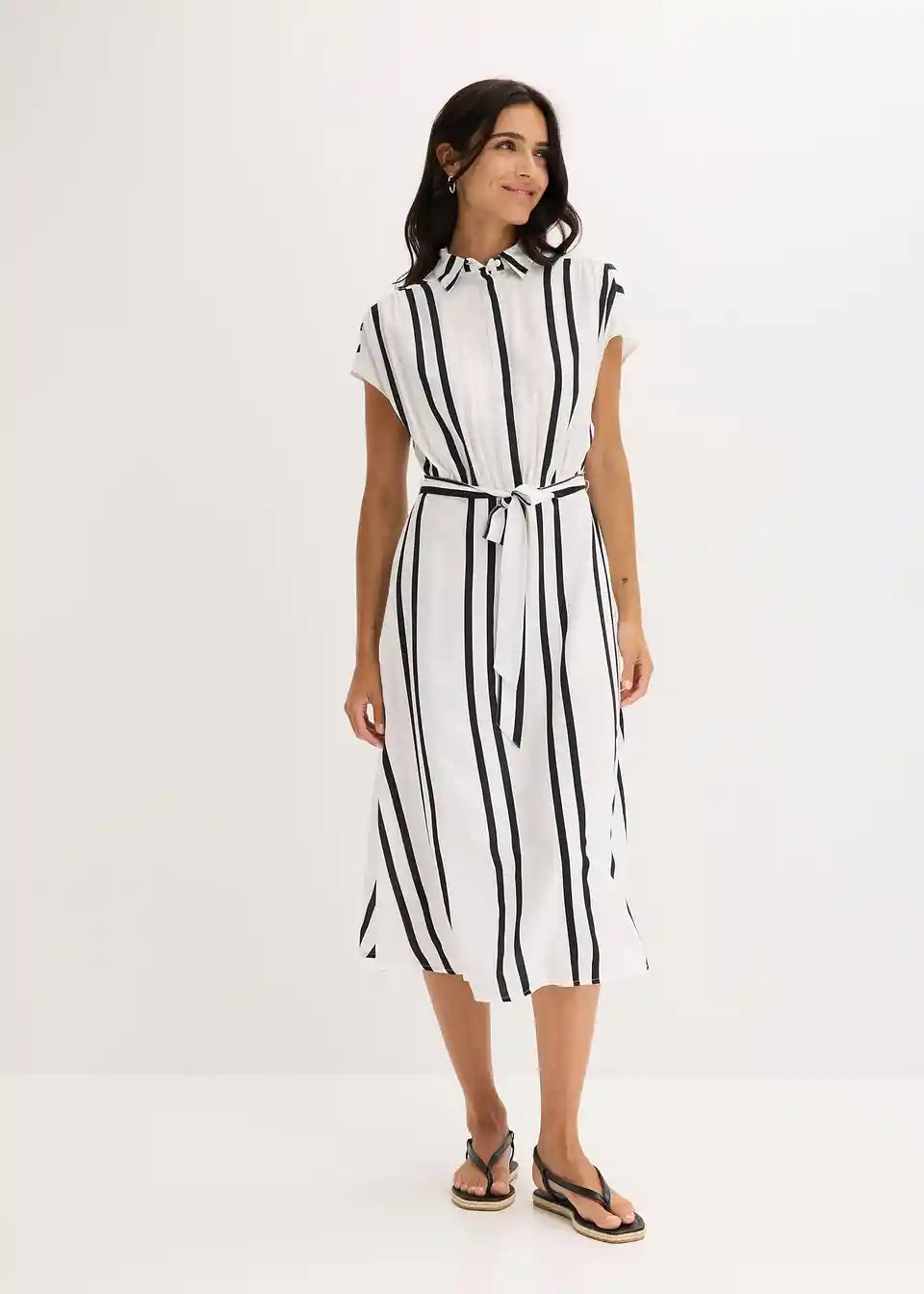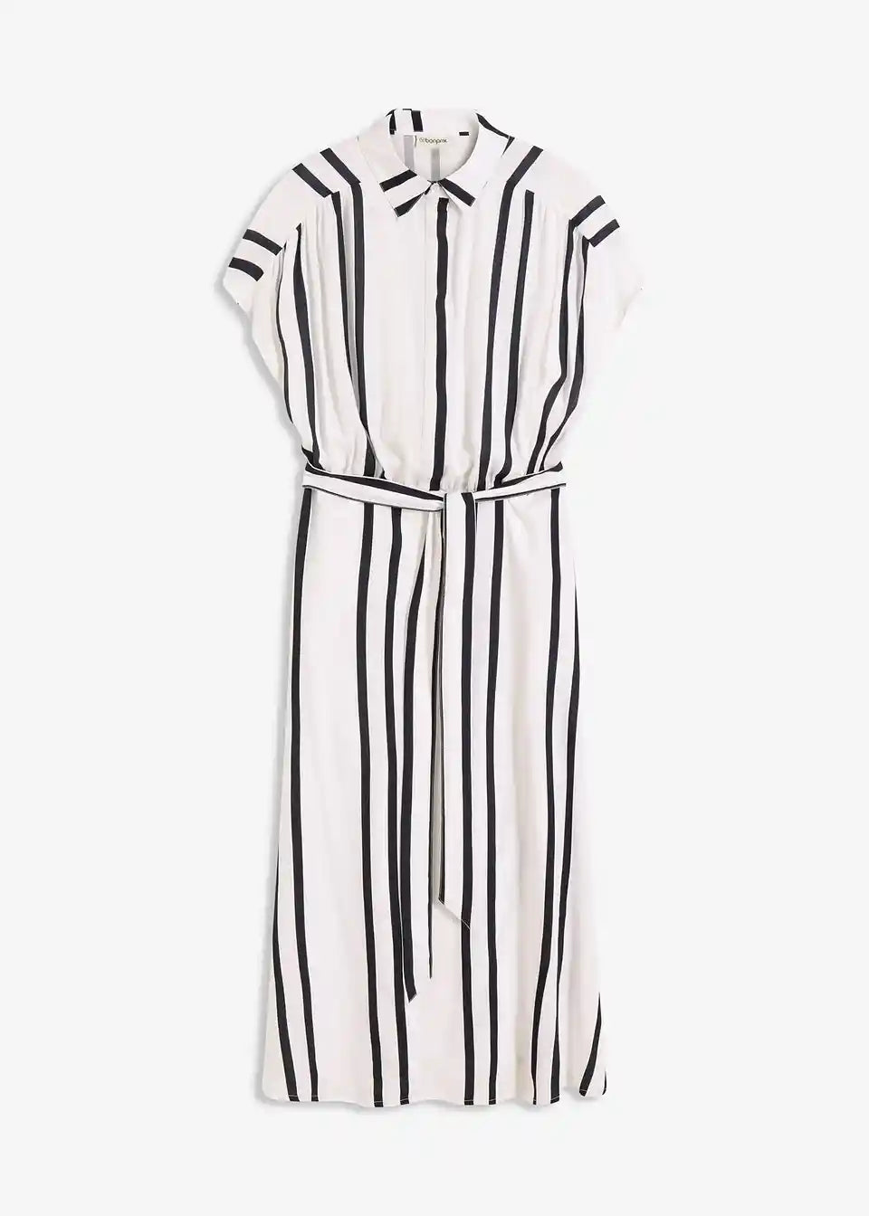 moderna srajčna obleka s sprednjo zapenjanjem na gumbe in pasom za zavezovanje v pasu