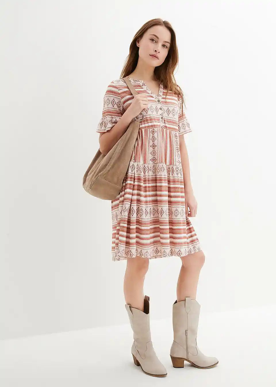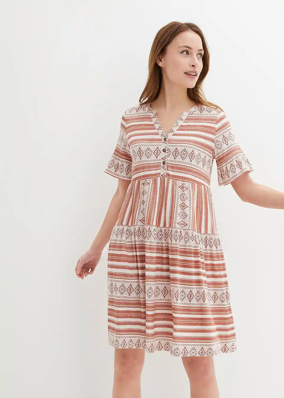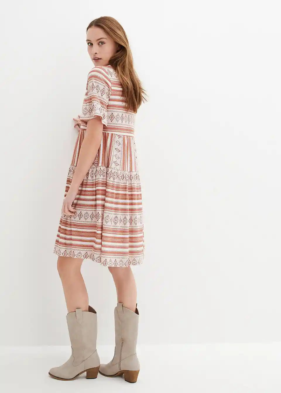 Modna srajčna obleka, kratki rokavi, potiskana