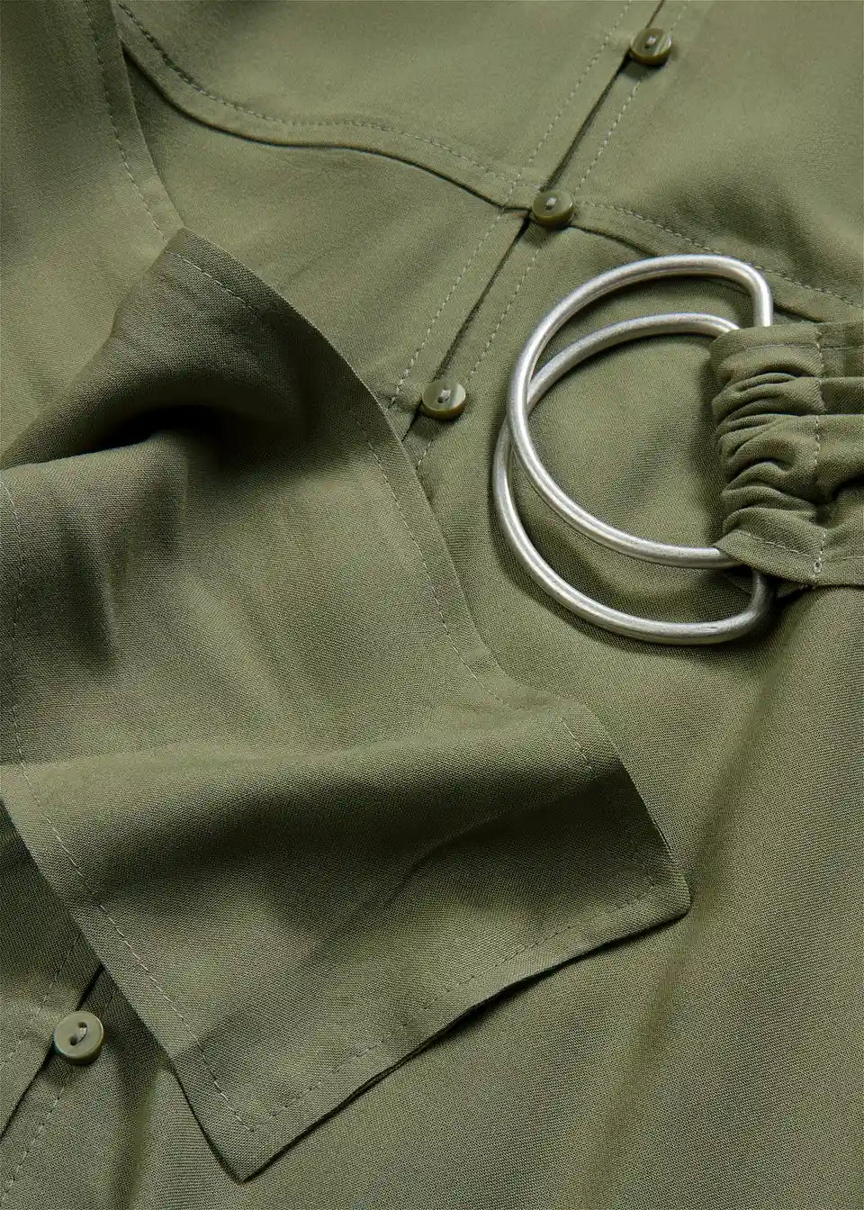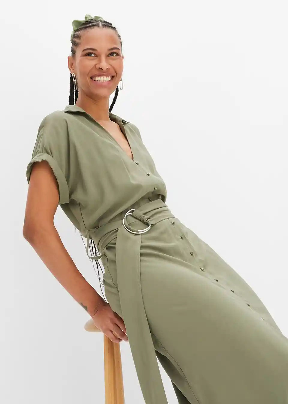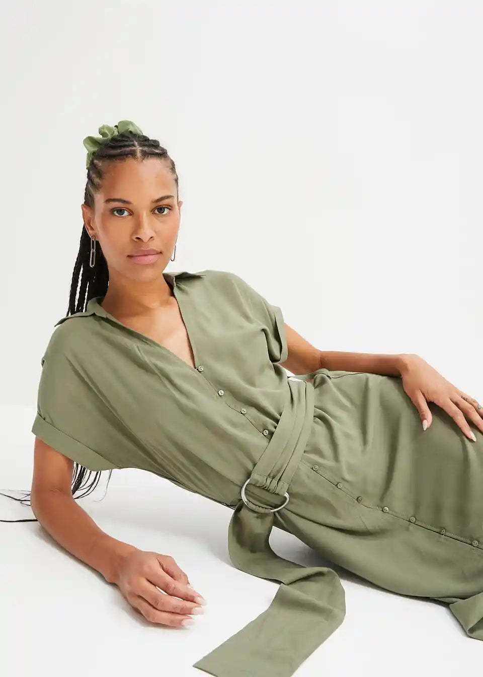Ležerna srajčna obleka s pasom in z gumbi. Viskoza iz certificirane gozdne proizvodnje.