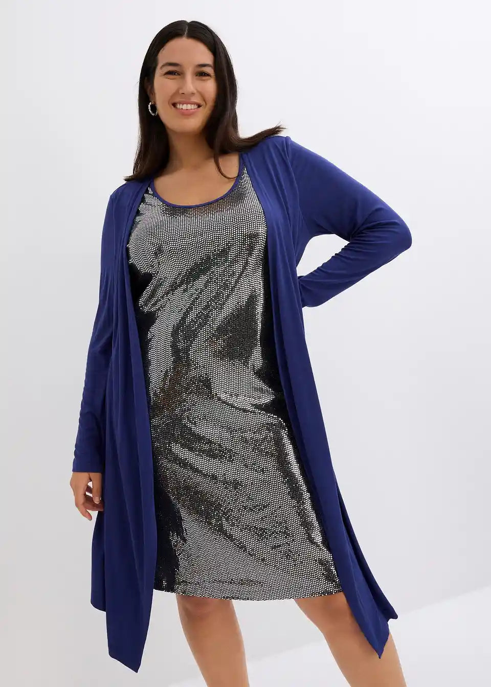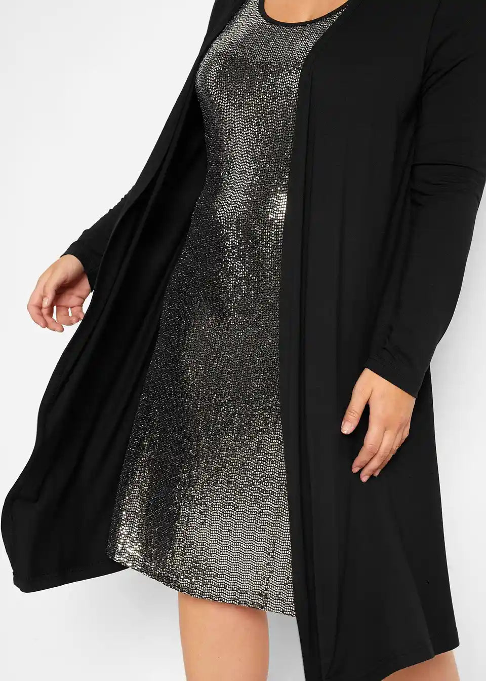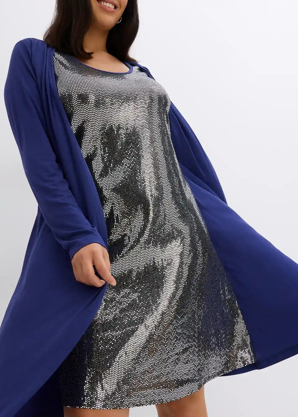 Lepa srajčna obleka v dvojnem videzu, znotraj okrašena z sijočimi kamni