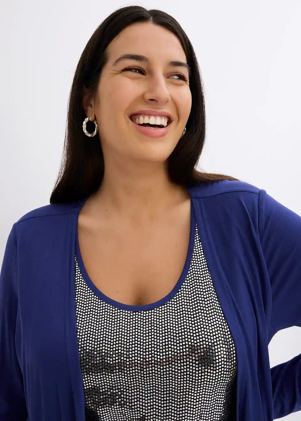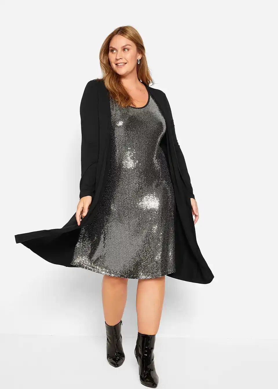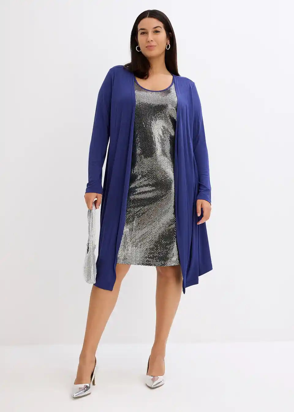 Lepa srajčna obleka v dvojnem videzu, znotraj okrašena z sijočimi kamni