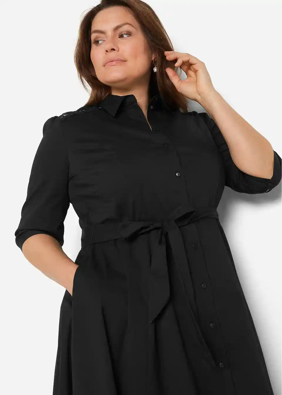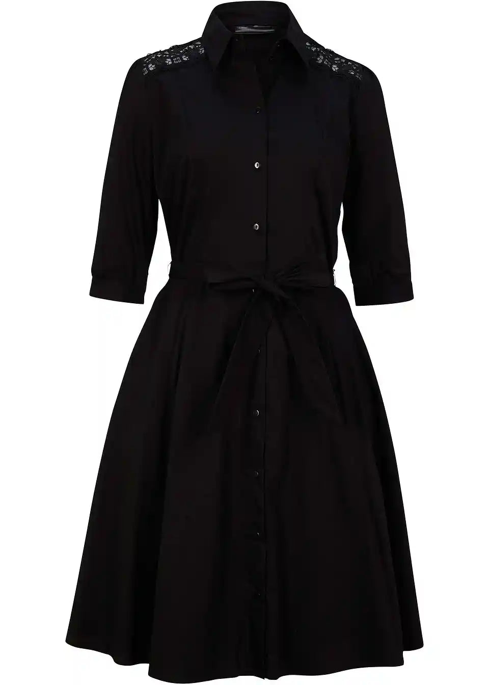 Srajčna obleka s čipko in trakom za zavezovanje