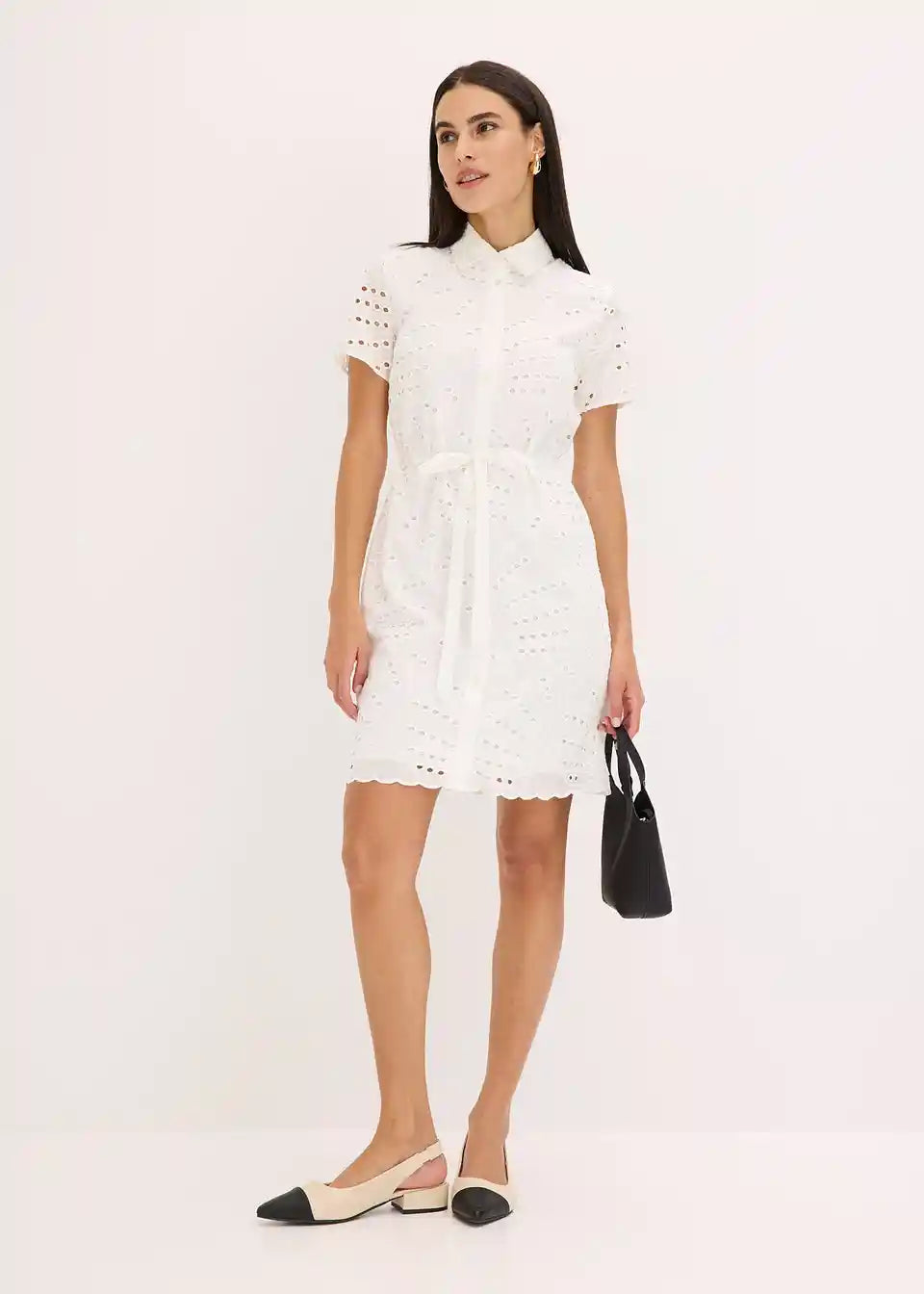 kratka srajčna obleka z luknjičasto vezenino