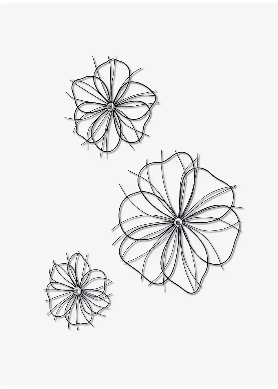 Eleganten stenski okras služi kot čudovita dekoracija stene. 3-delni komplet je sestavljen iz filigranskih cvetnih listov, ki so okrašeni z akrilnim kamnom. So različnih velikosti in skupaj ustvarijo čudovito celoto. Odlično pridejo do izraza na primer nad stransko mizico v dnevni sobi. Prav tako jih je mogoče lepo postaviti nad posteljo v spalnici. Ne glede na to, ali so obešeni posamično ali kot celoten 3-delni komplet, ta eleganten stenski objekt služi kot lep vizualni poudarek.