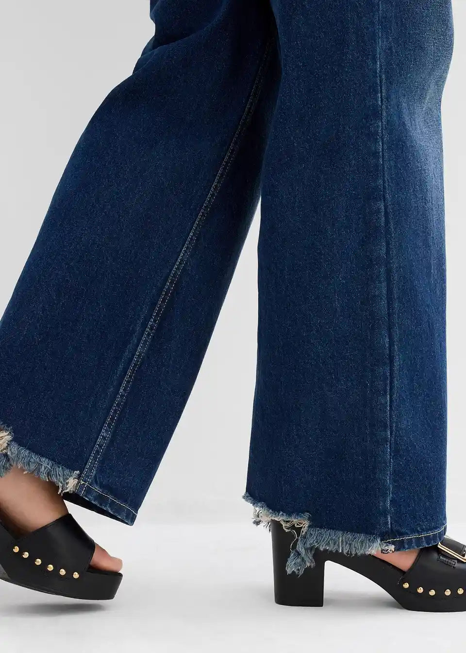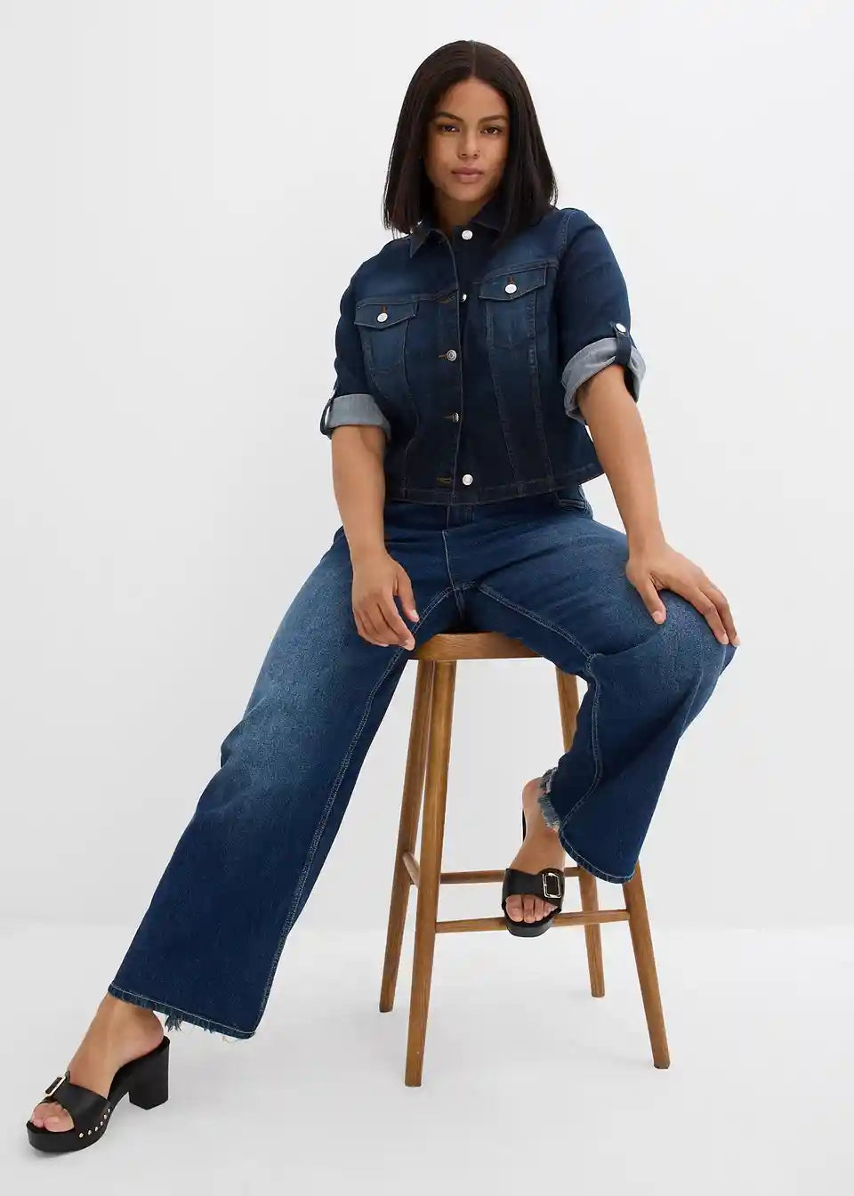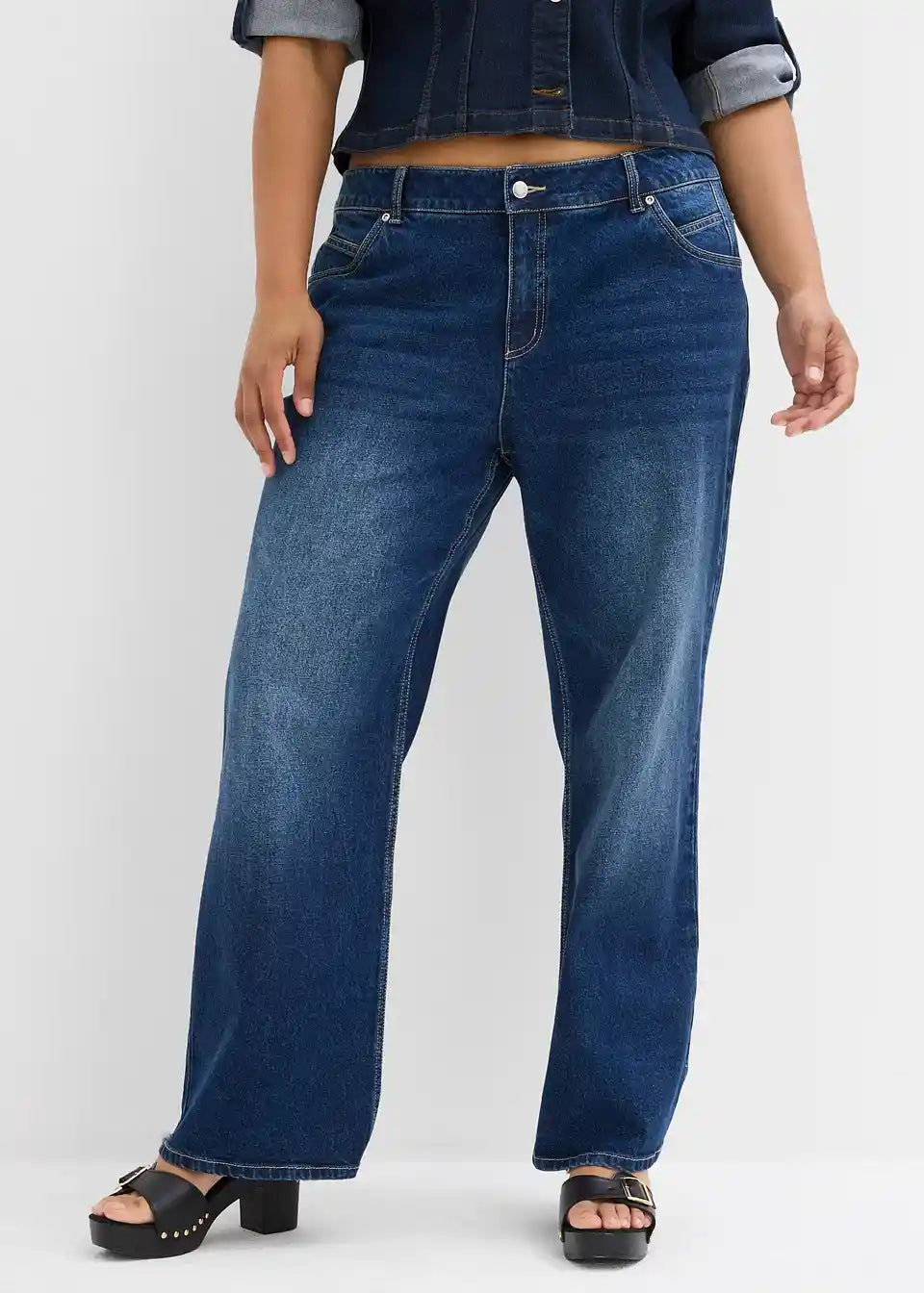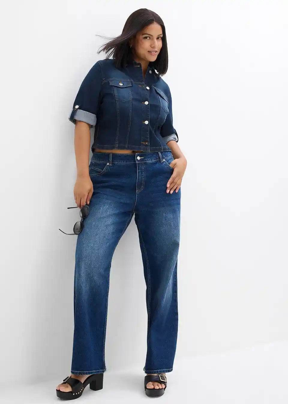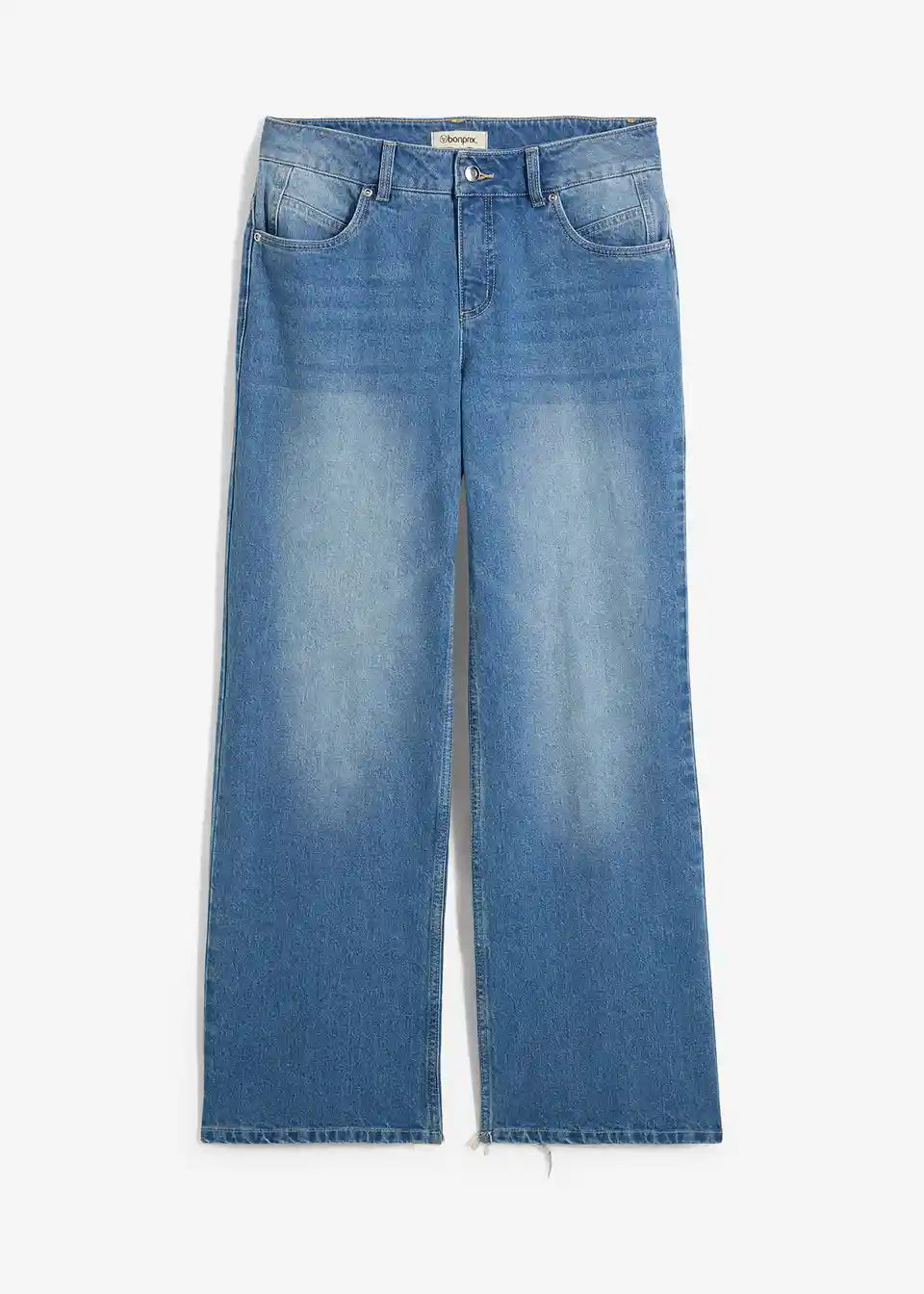 Ravne 5-žepne jeanske iz trdnega bombažnega denima, ki je na začetku nekoliko tog, z redno uporabo pa postane mehkejši in bolj udoben. Srednja višina pasu z zadrgo in gumbom. Dolga dolžina, ki na stopalu ustvari rahlo nabran učinek. Notranja dolžina hlačnice pri vel. 42 približno 78,5 cm, pralno v pralnem stroju.
